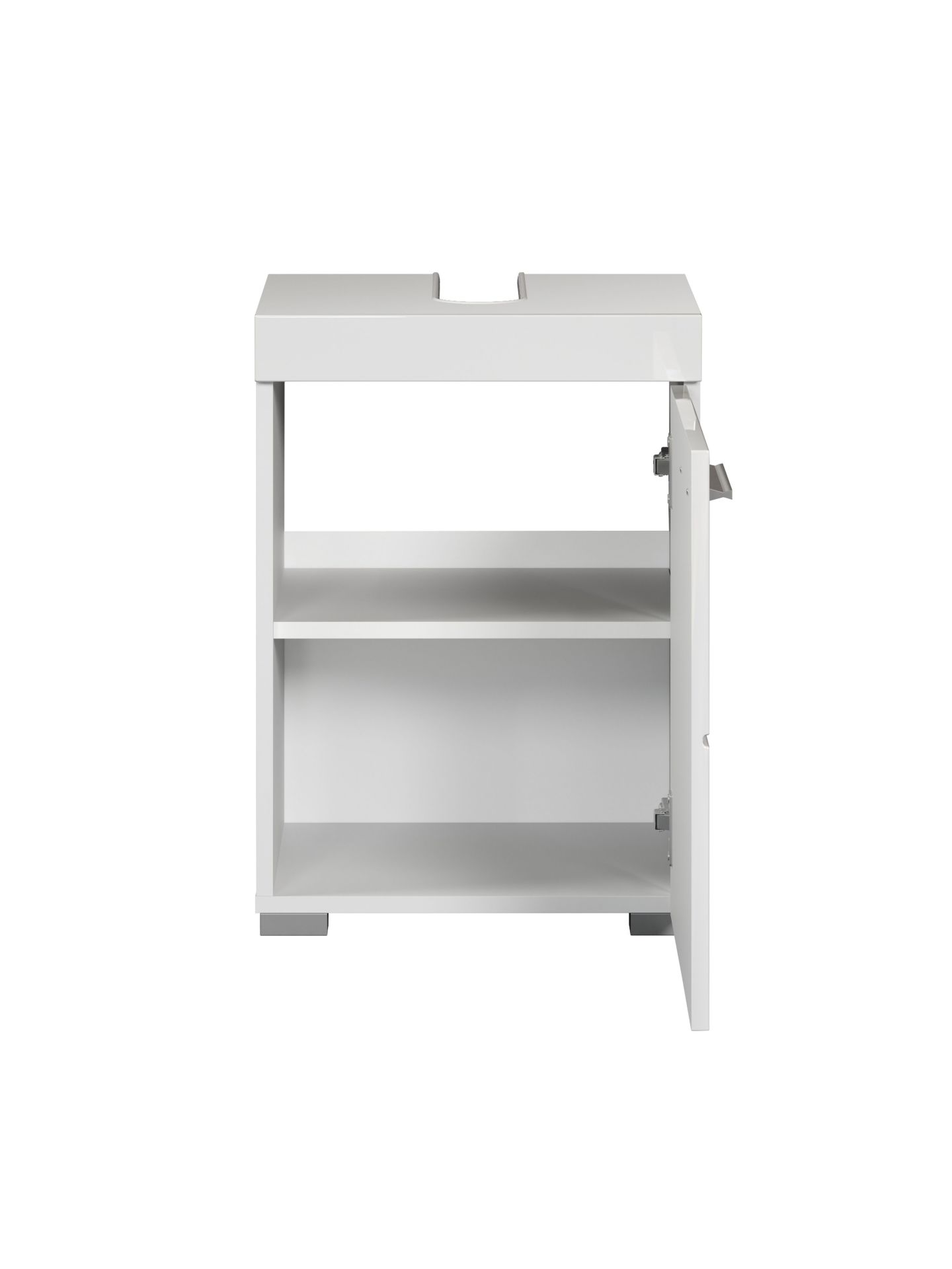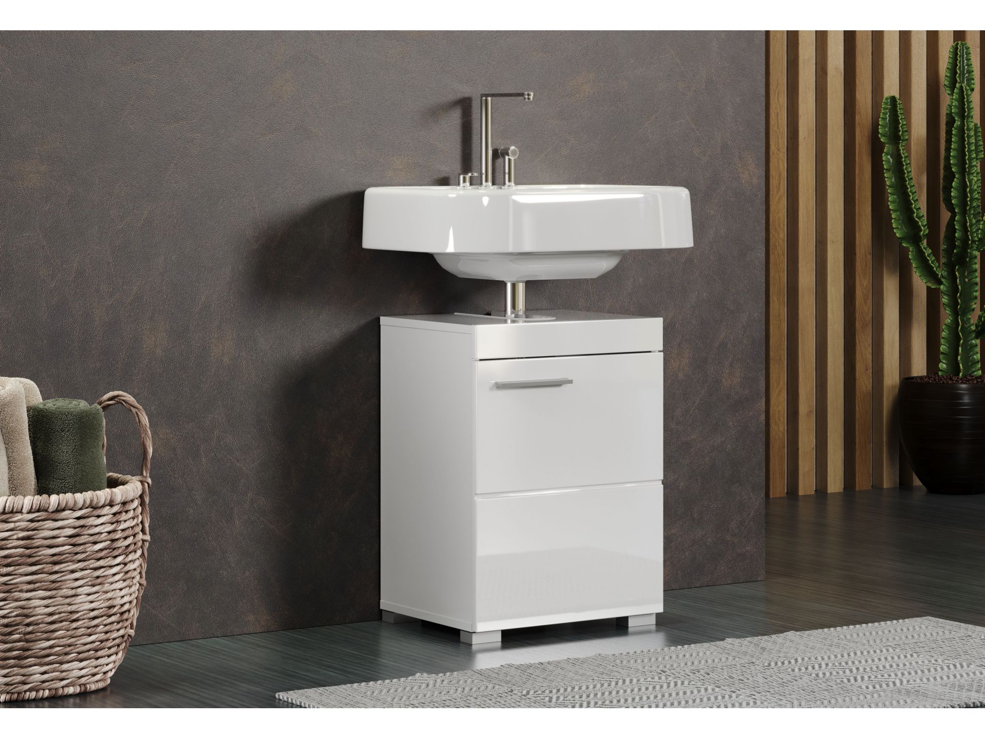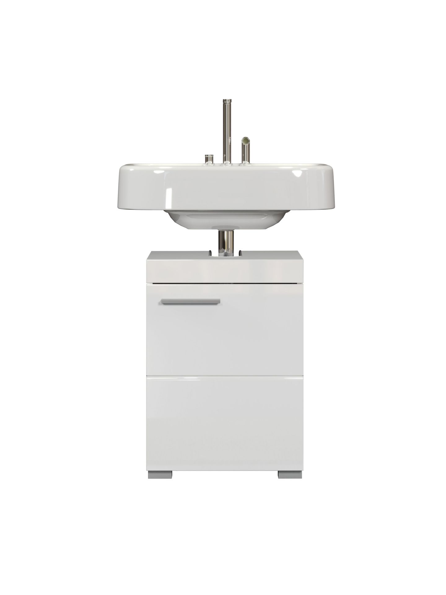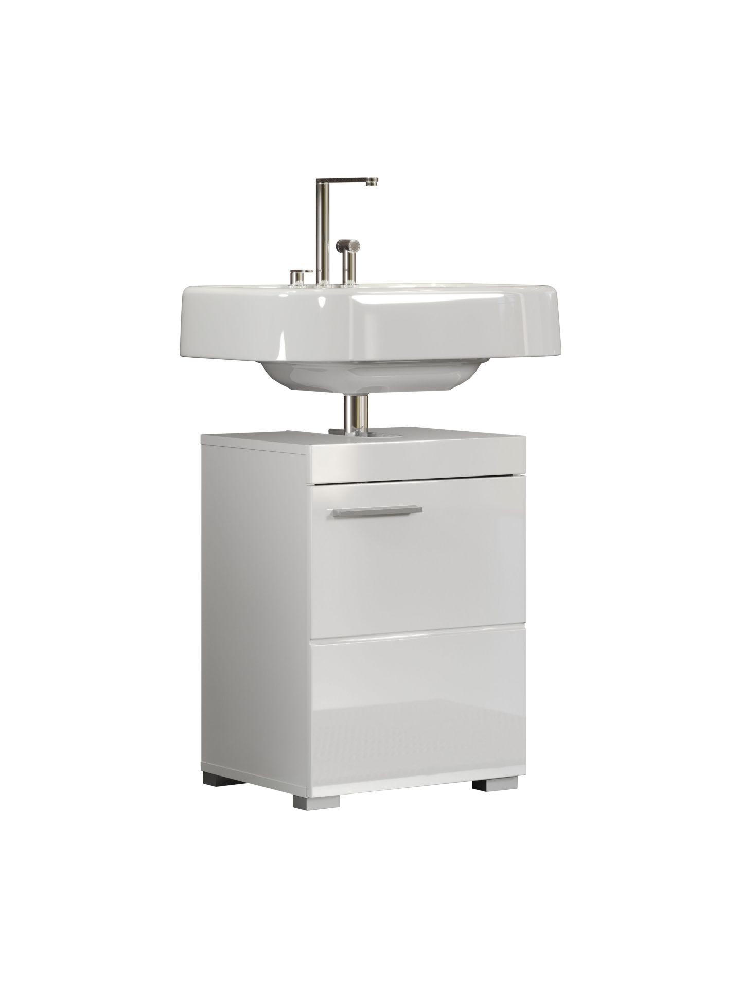 Amanda BD:Ko.Weiß Melamin,Fr.Weiß Hochglanz Tiefzieh,Waschbeckenunterschrank 1TR