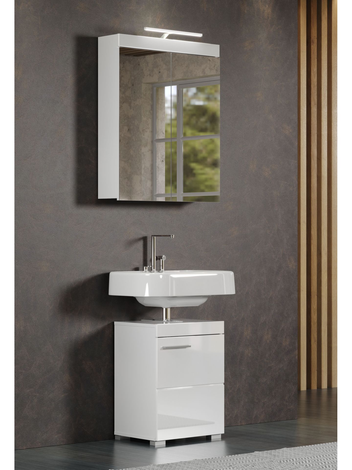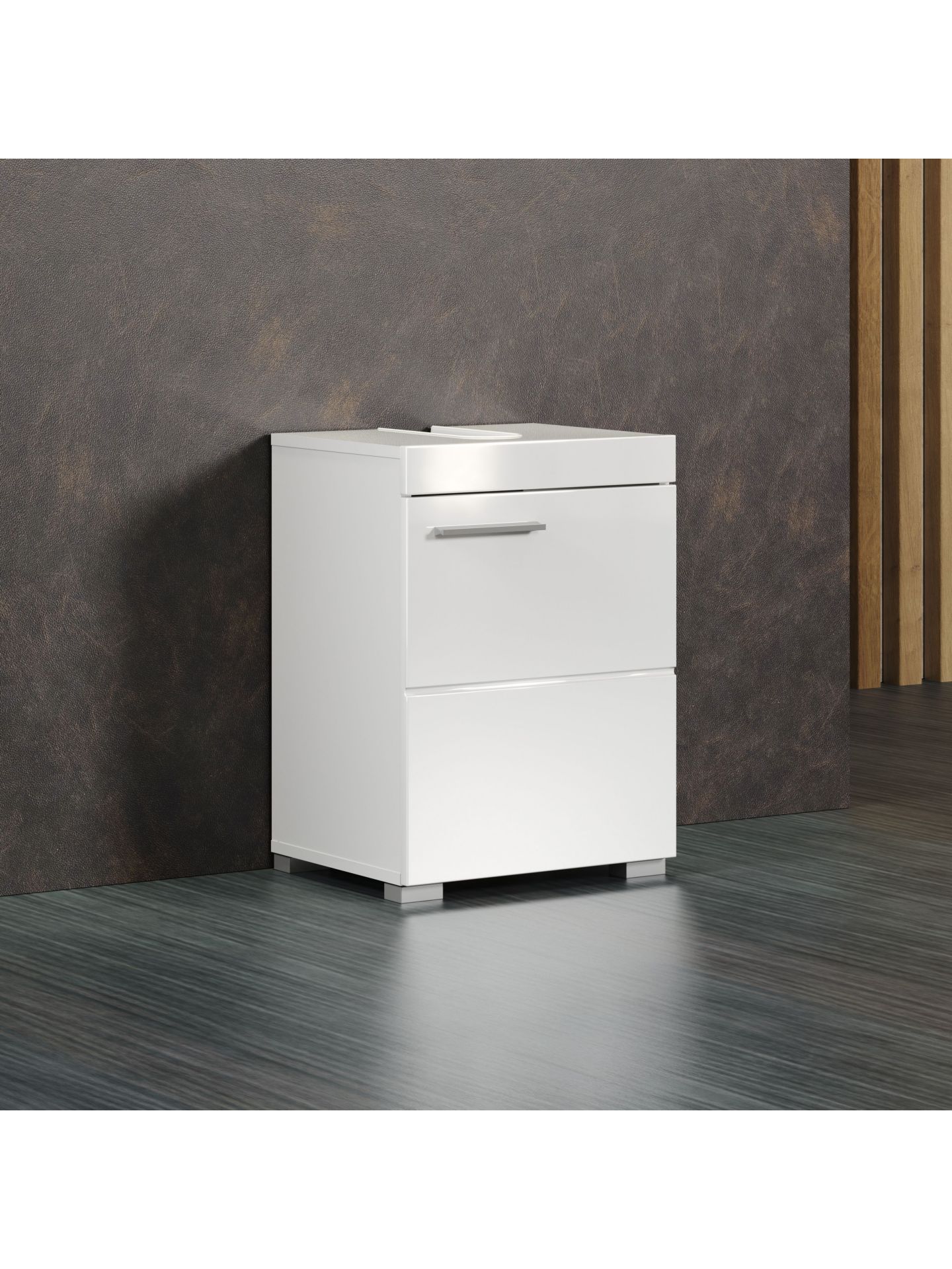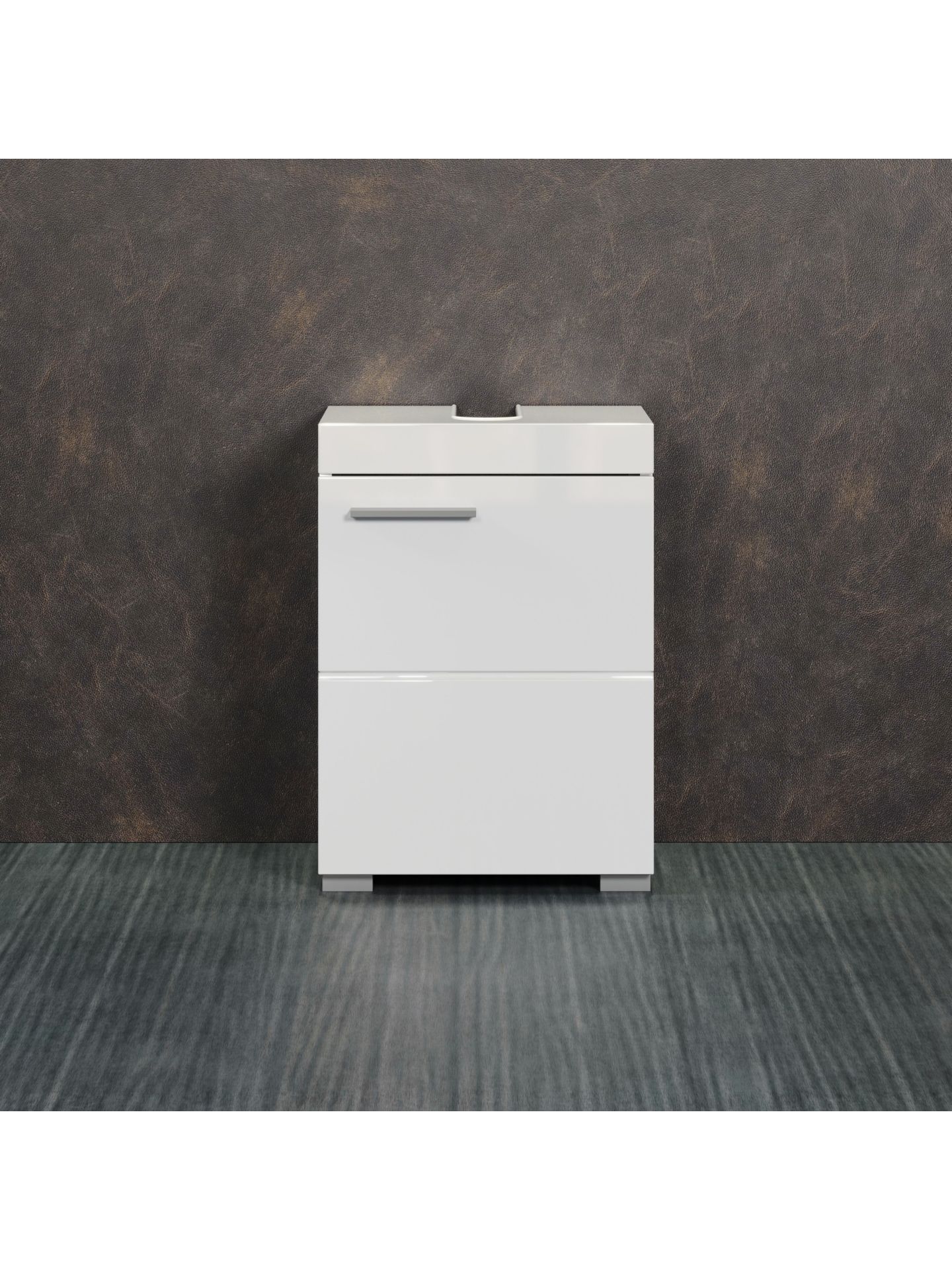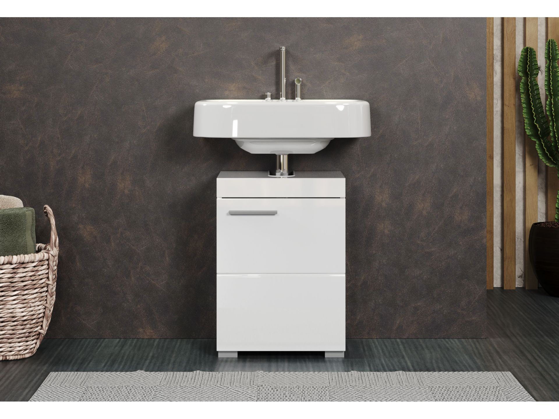 Amanda BD:Ko.Weiß Melamin,Fr.Weiß Hochglanz Tiefzieh,Waschbeckenunterschrank 1TR