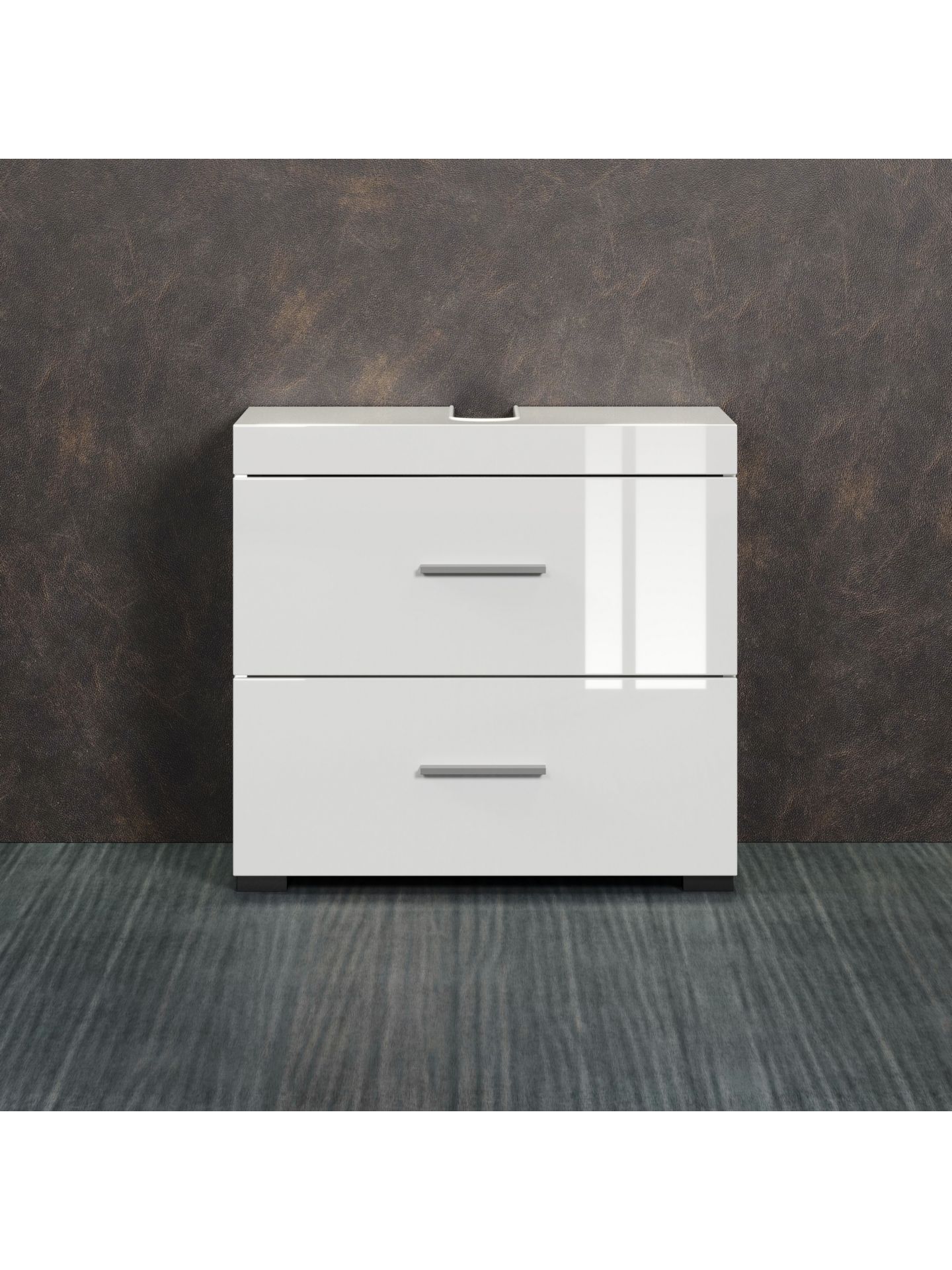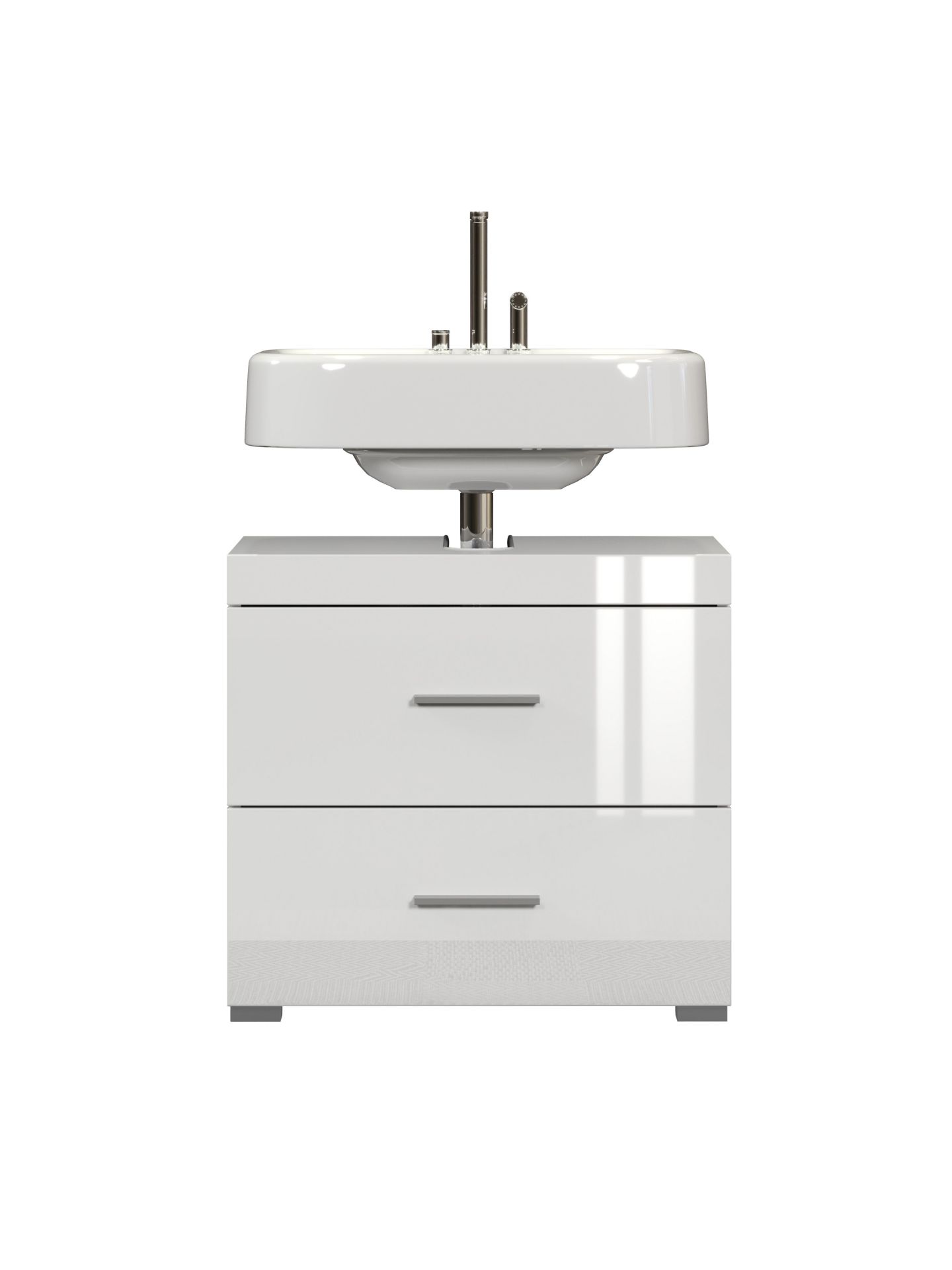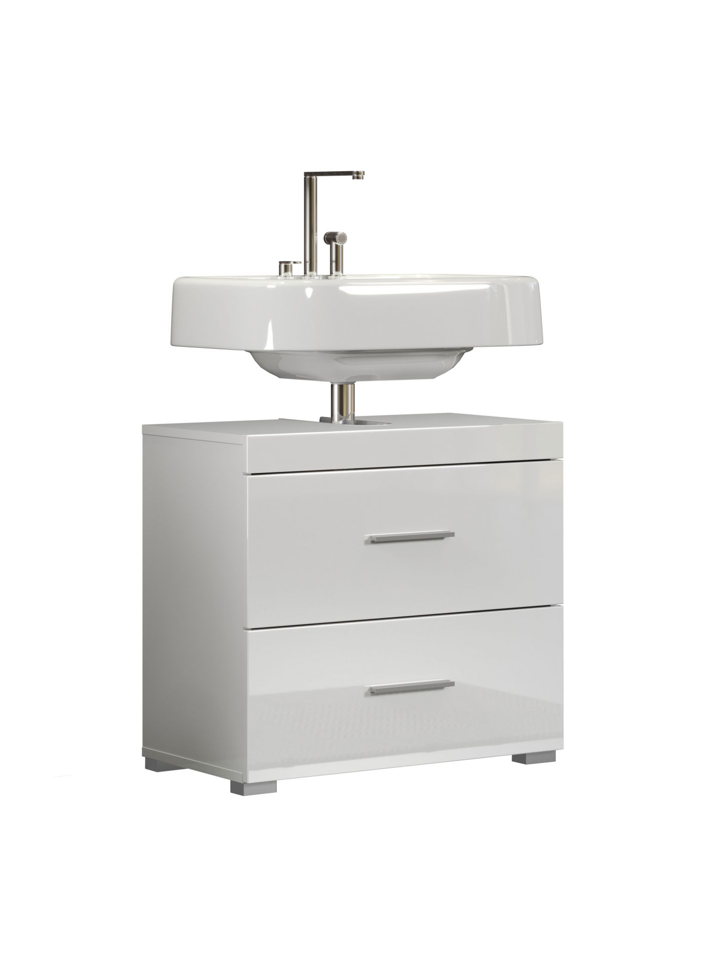 1 x: (139330601) Amanda BD:Ko.Weiß Melamin,Fr.Weiß Hochglanz Tiefzieh,Waschbeckenunterschrank 2SK