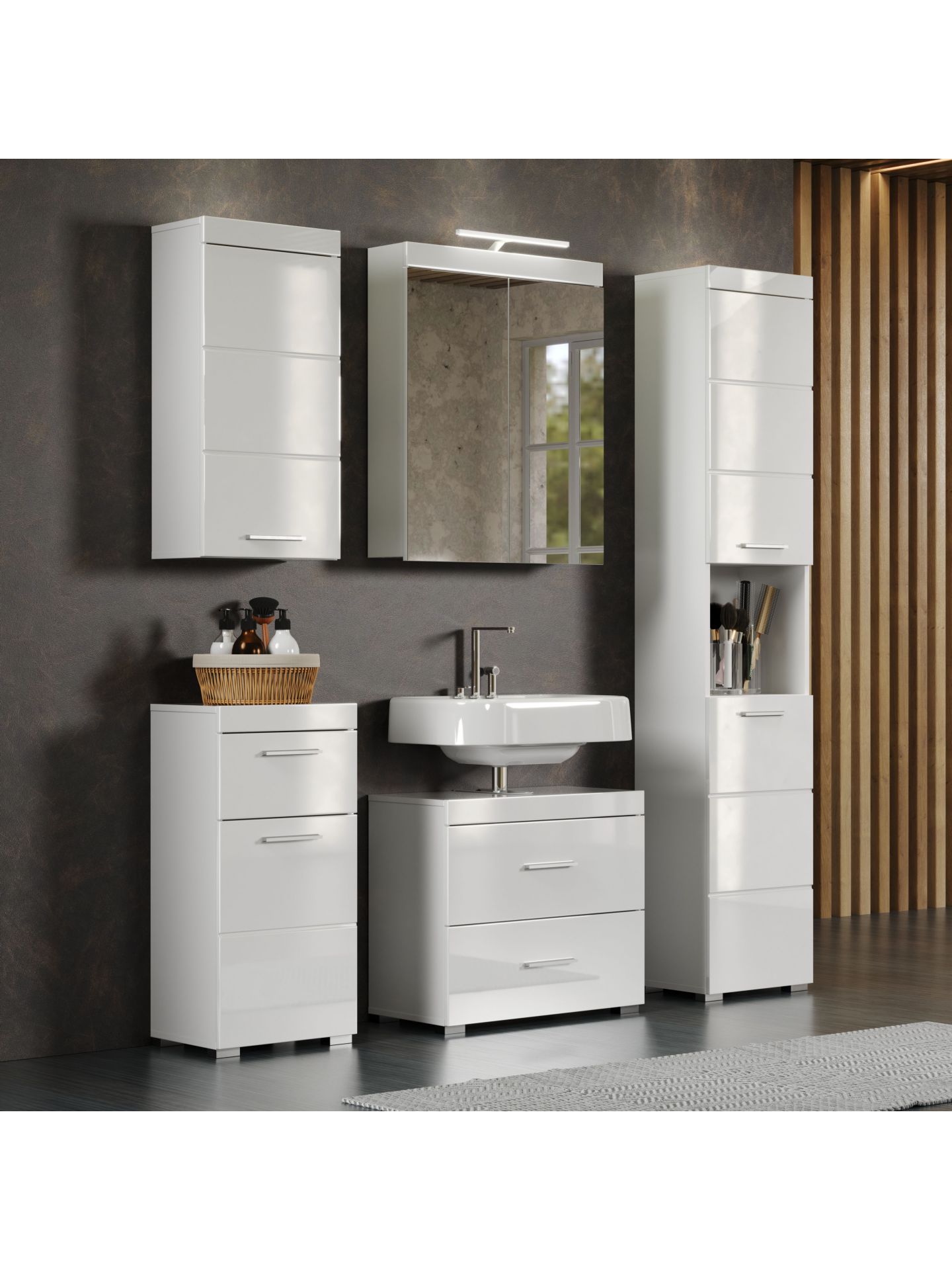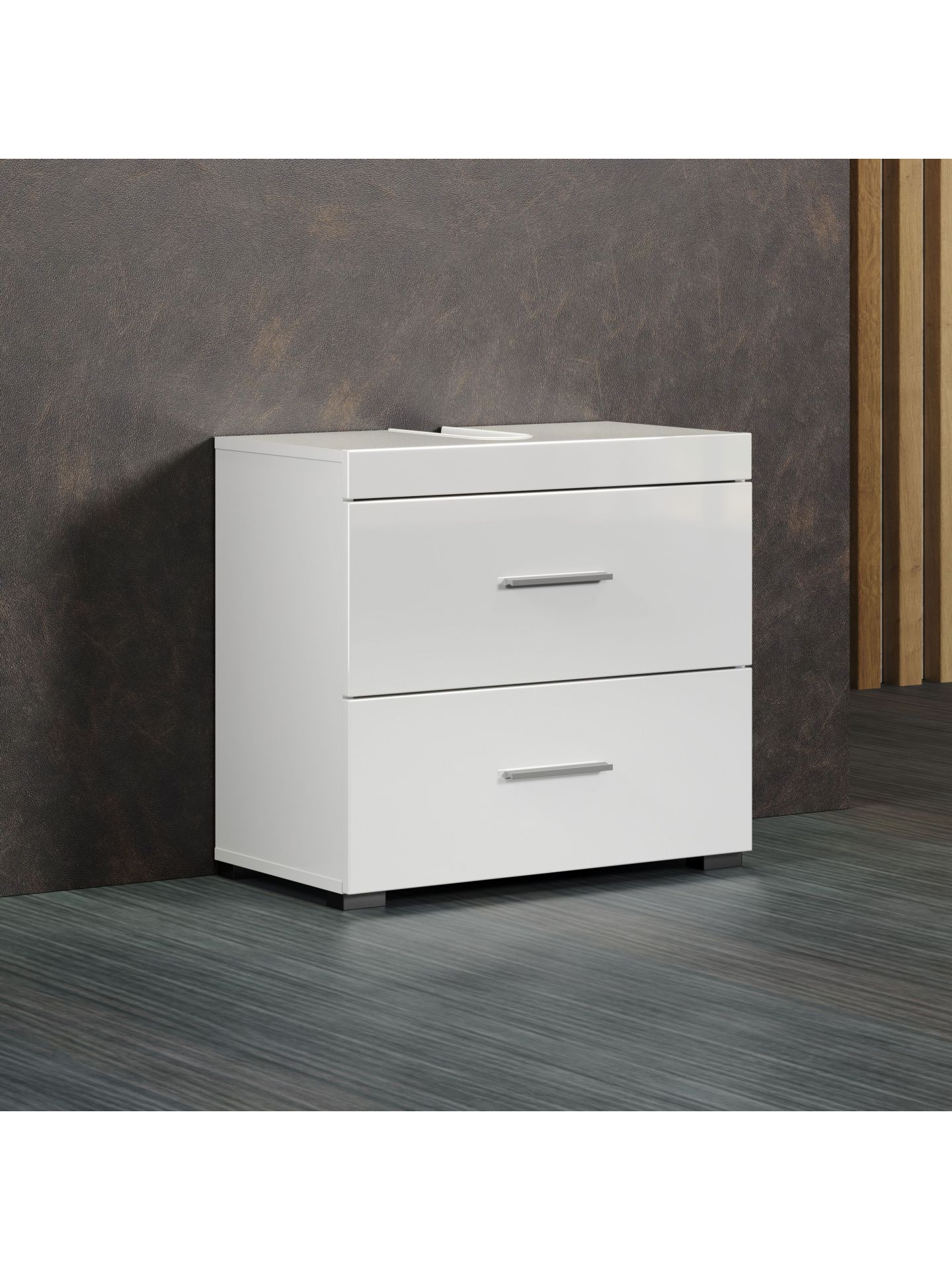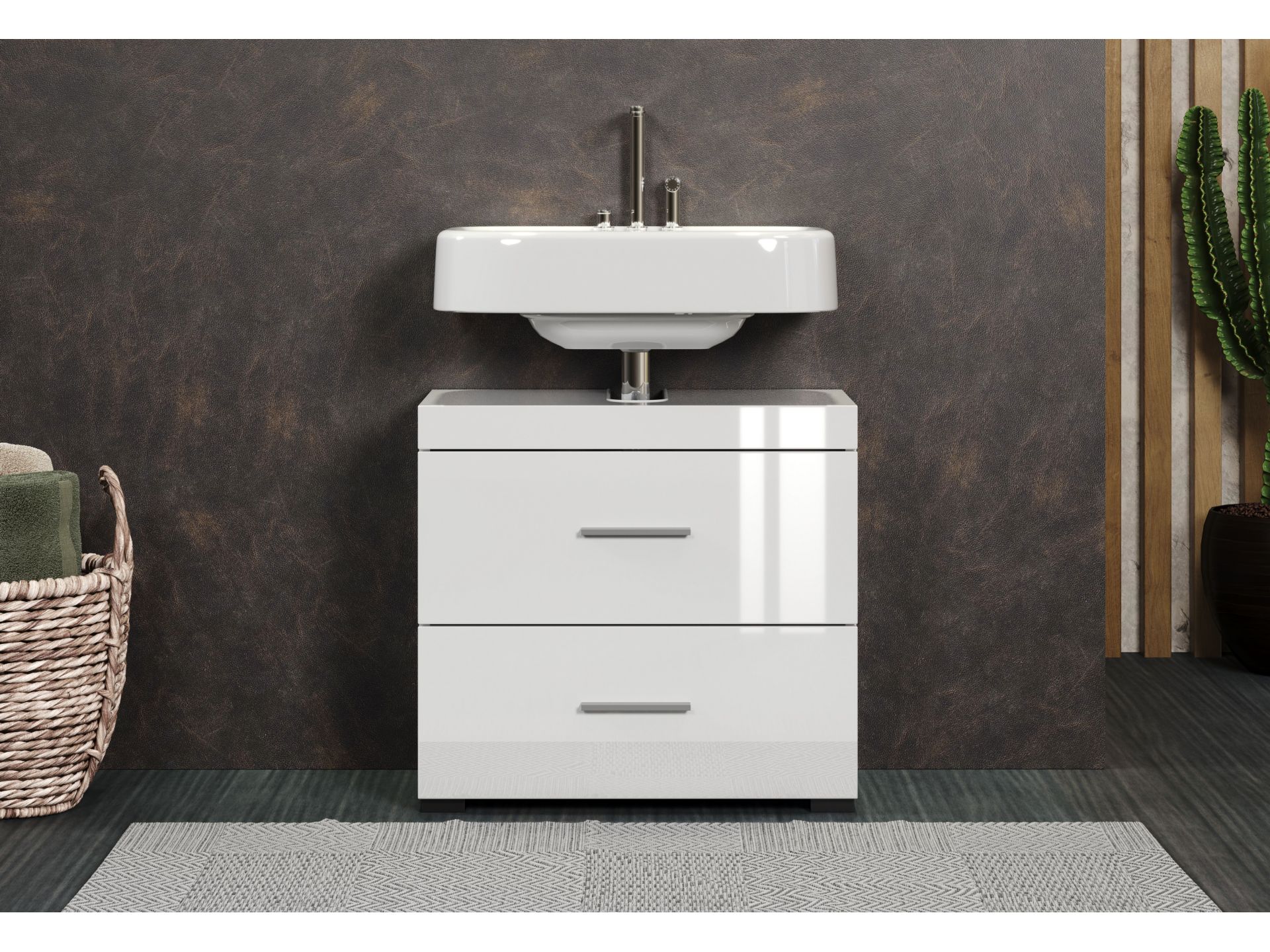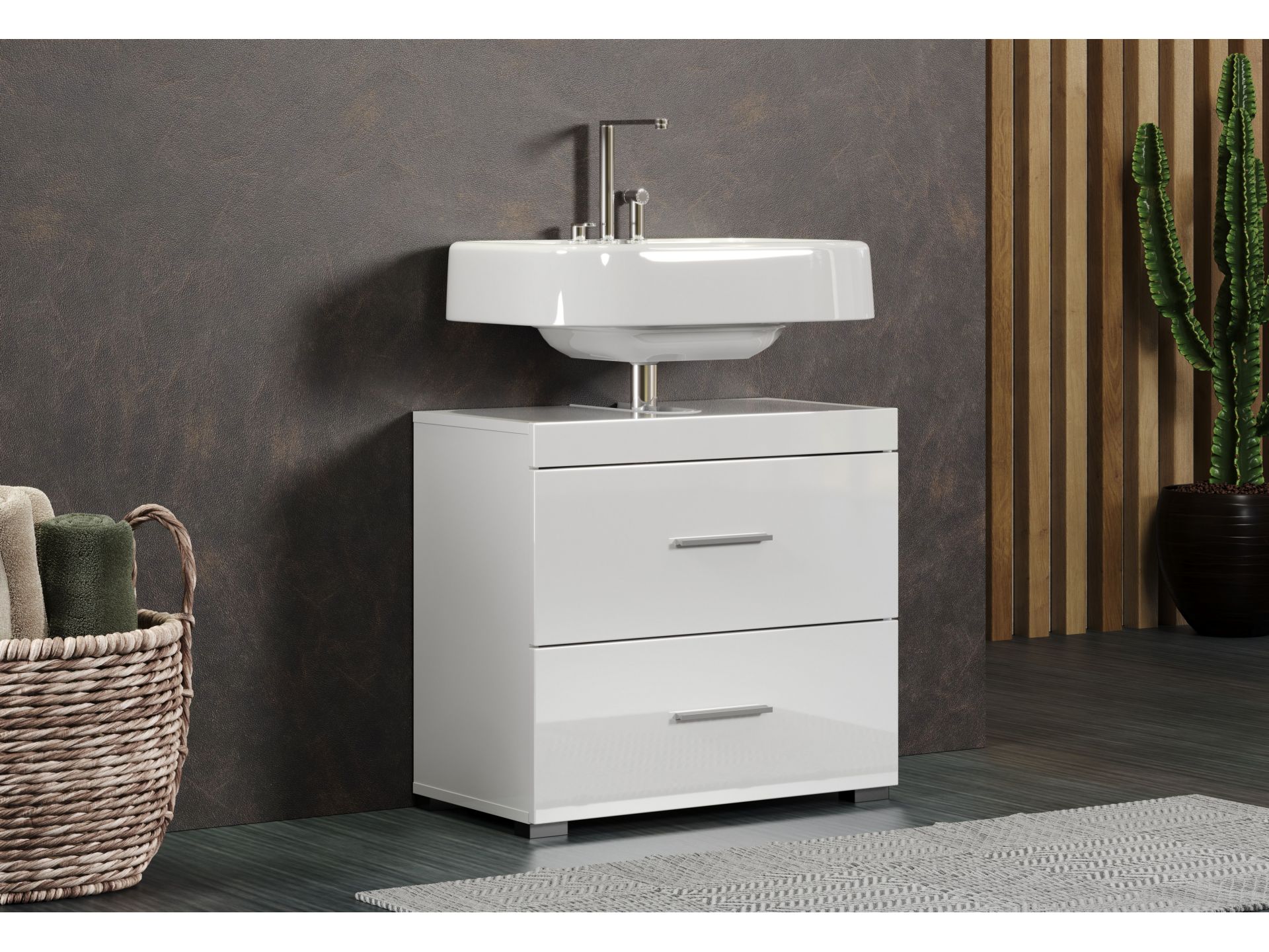 1 x: (139330601) Amanda BD:Ko.Weiß Melamin,Fr.Weiß Hochglanz Tiefzieh,Waschbeckenunterschrank 2SK