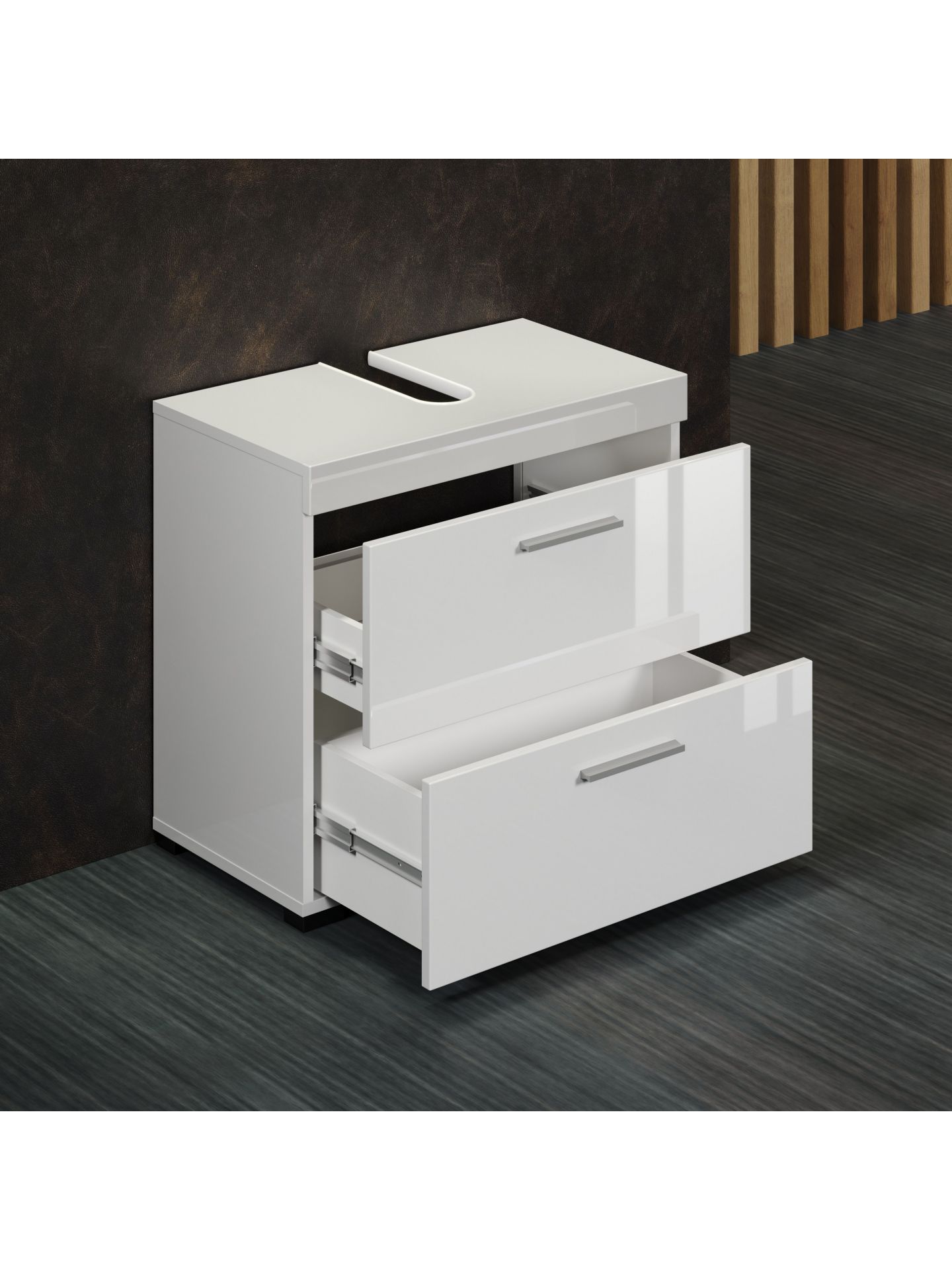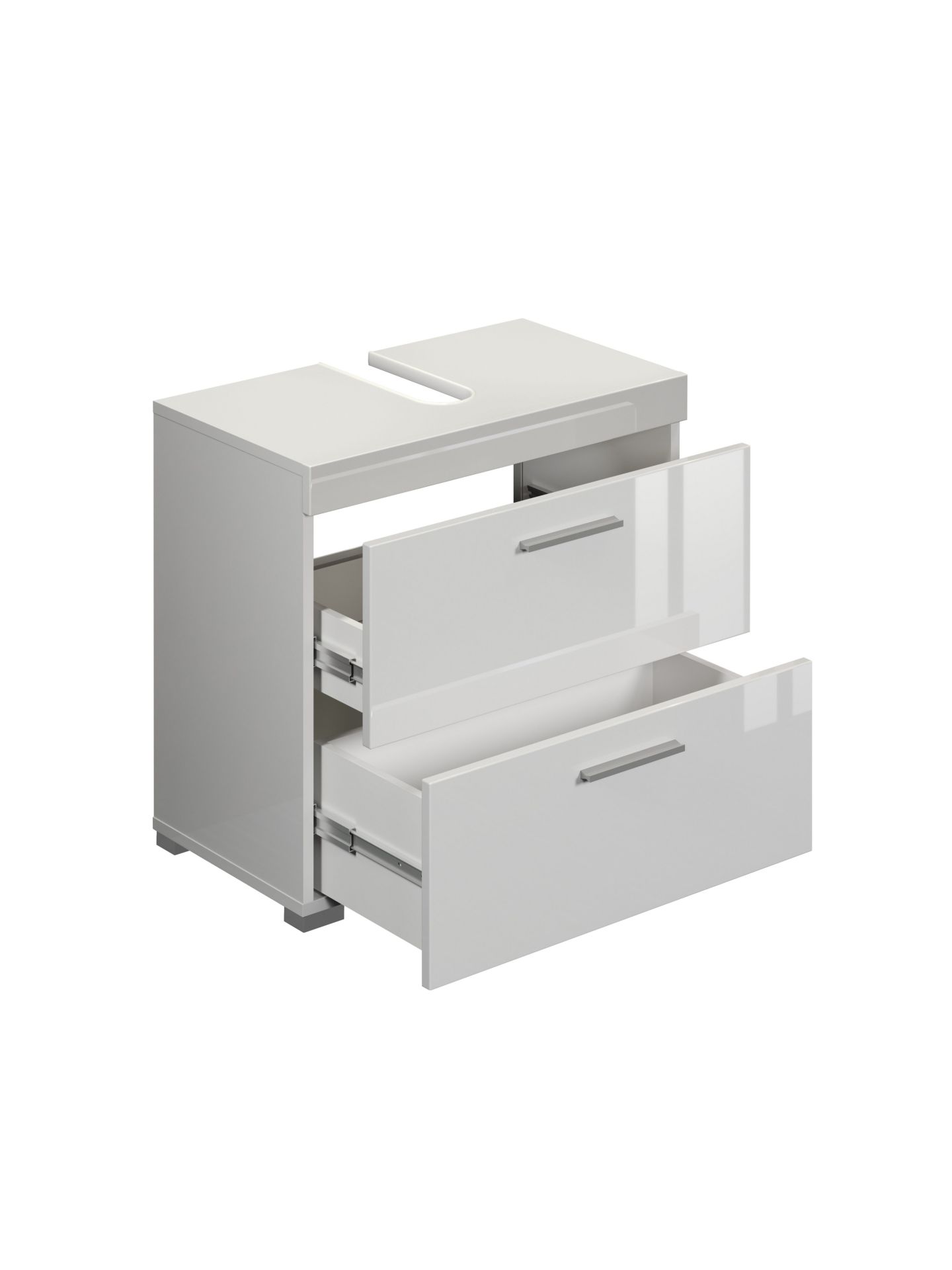 Amanda BD:Ko.Weiß Melamin,Fr.Weiß Hochglanz Tiefzieh,Waschbeckenunterschrank 2SK