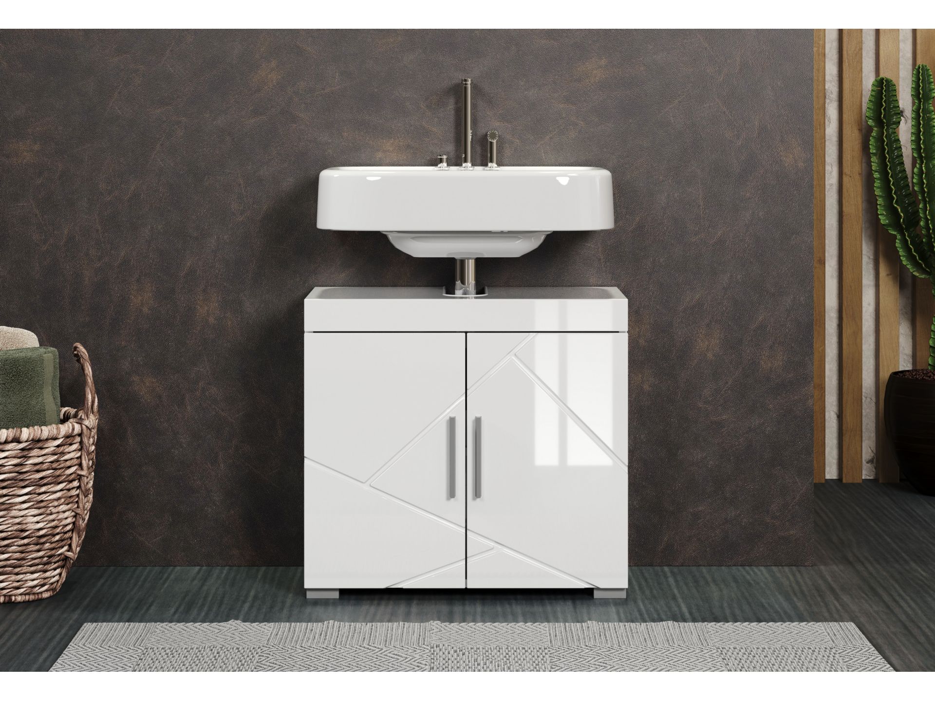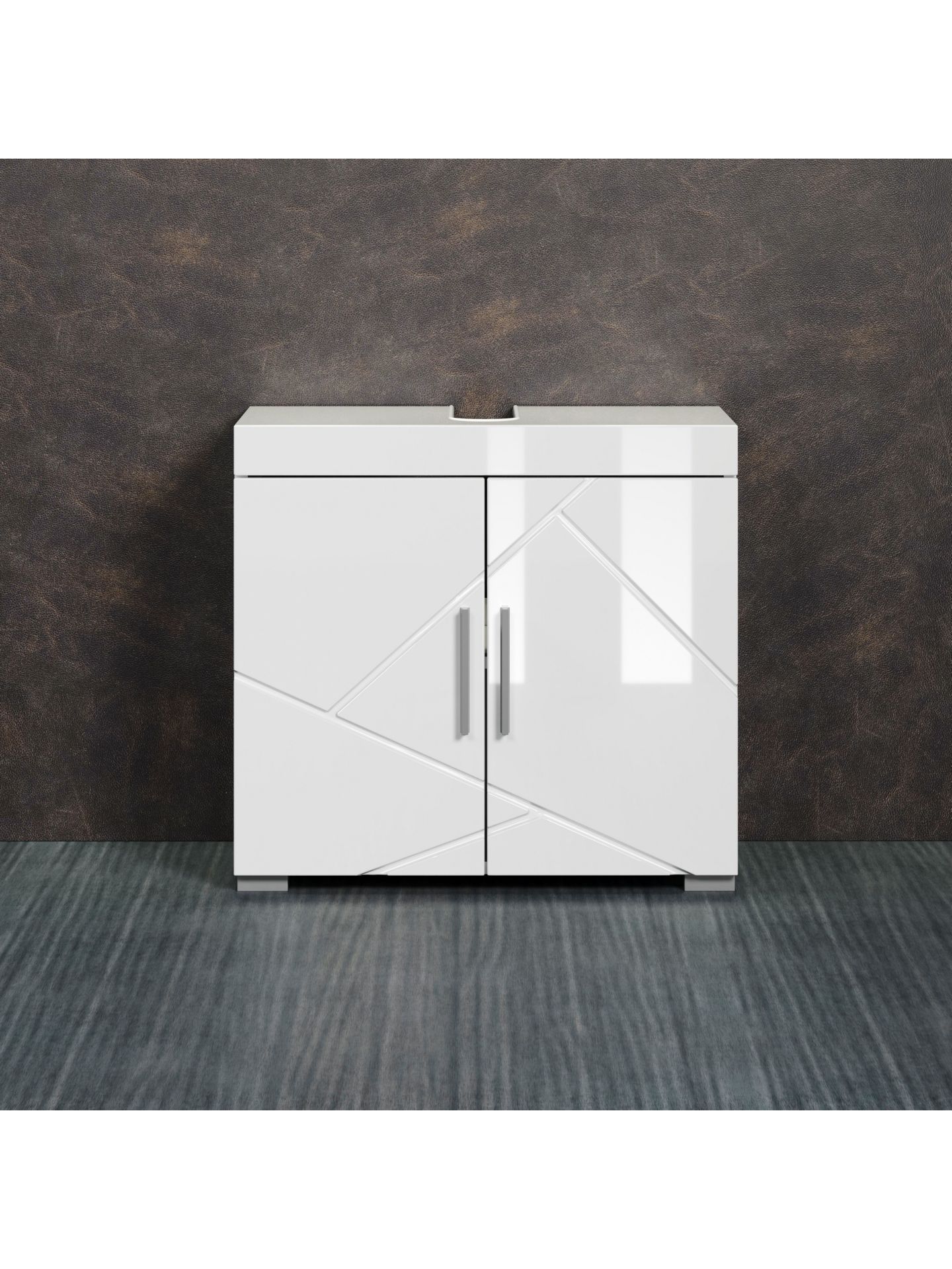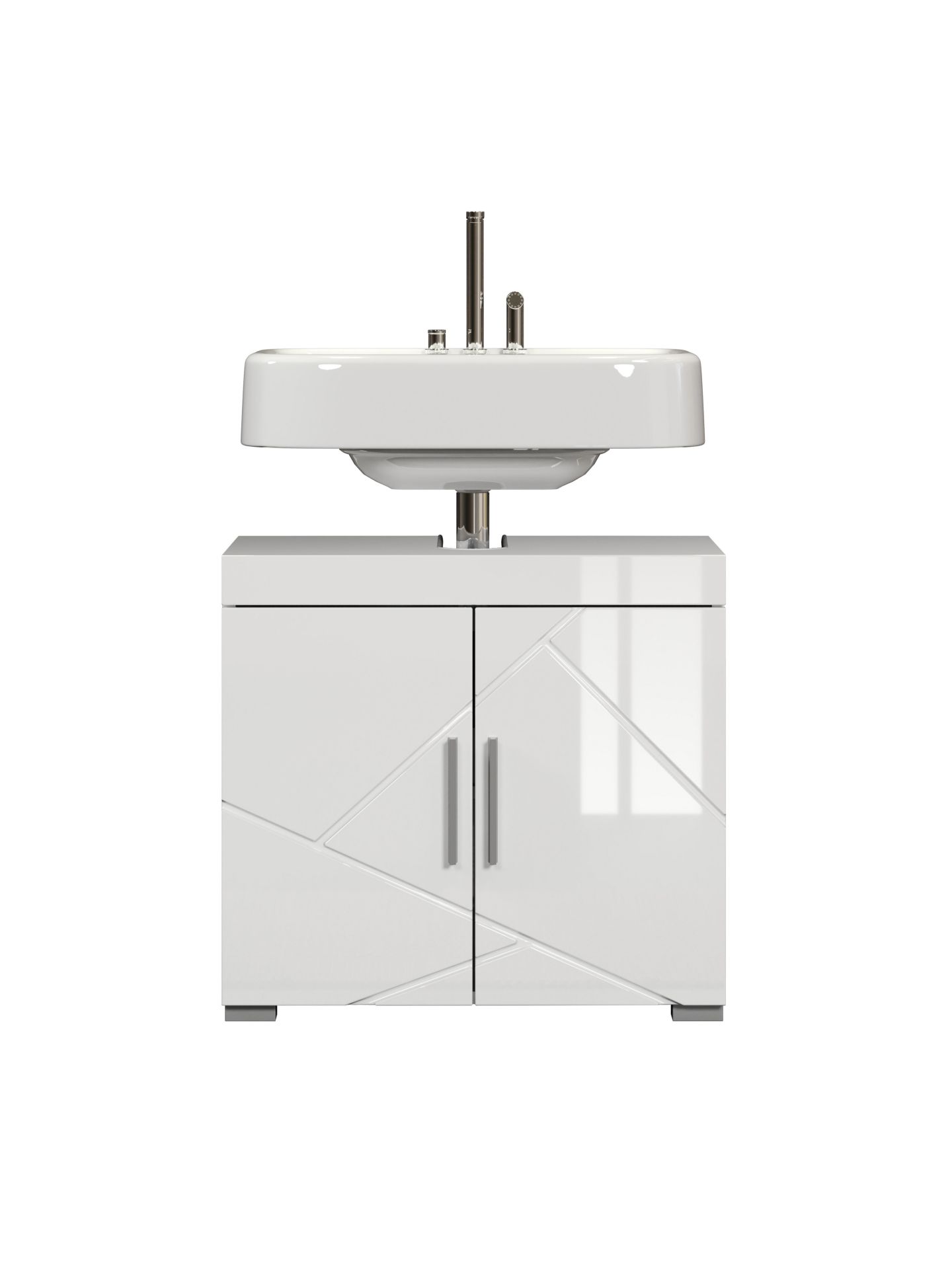 Amanda BD:Ko.Weiß Melamin,Fr.Weiß Hochglanz Tiefzieh,Waschbeckenunterschrank 2TR
