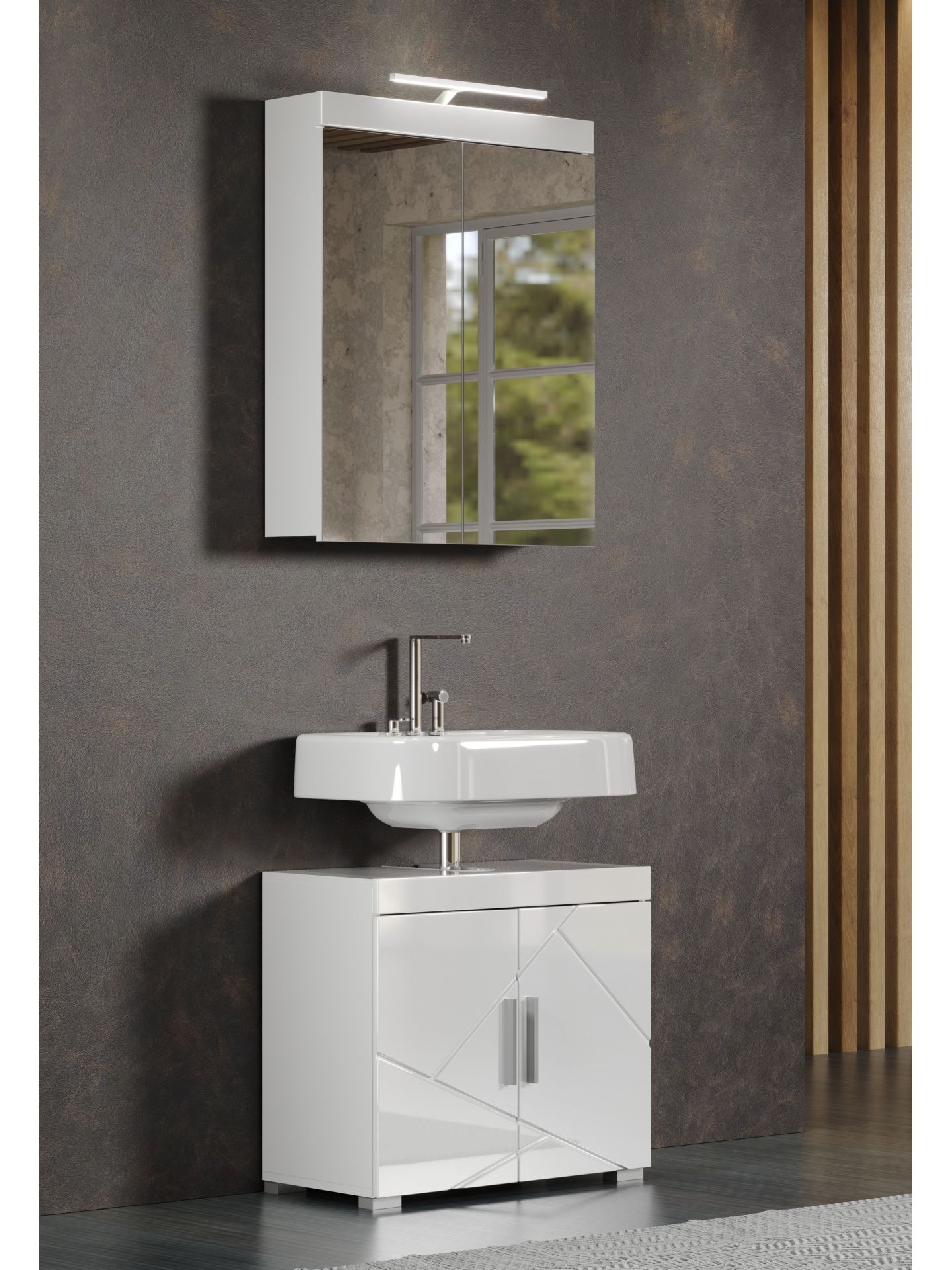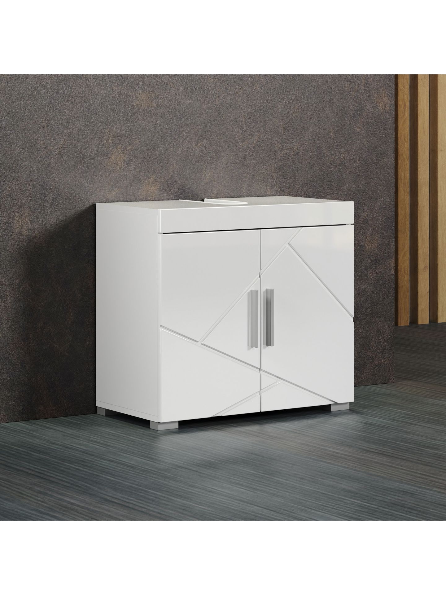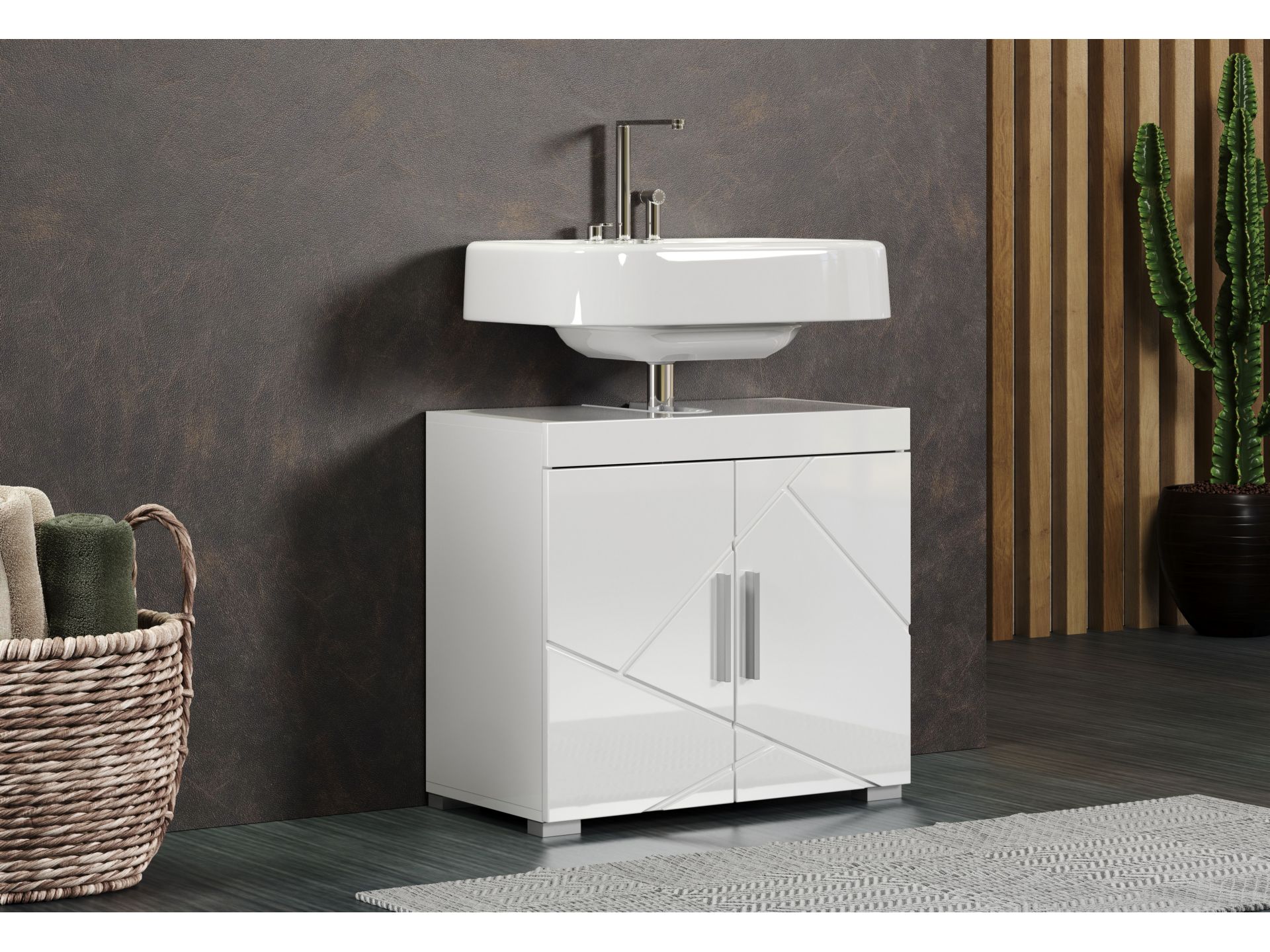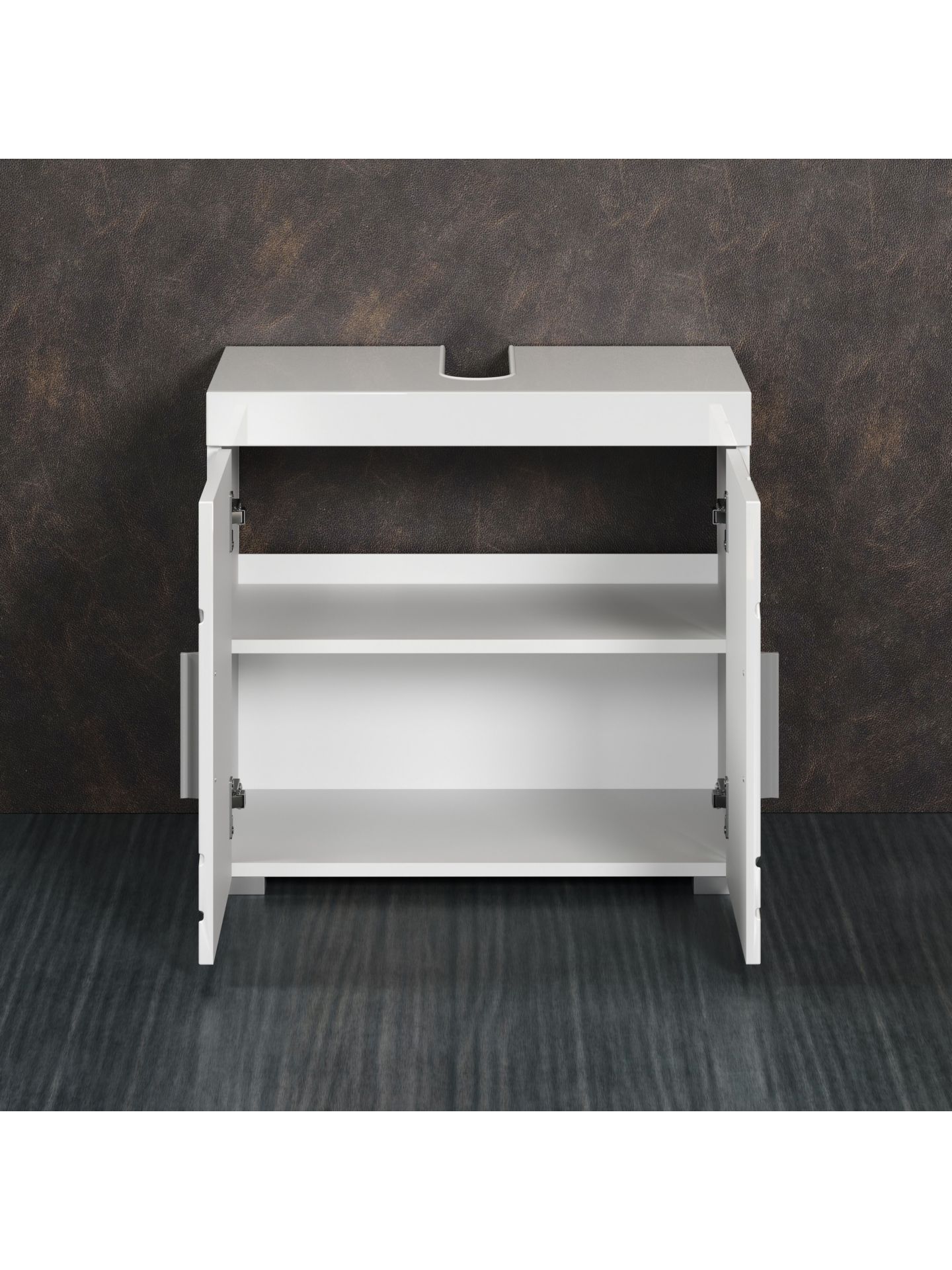 Amanda BD:Ko.Weiß Melamin,Fr.Weiß Hochglanz Tiefzieh,Waschbeckenunterschrank 2TR