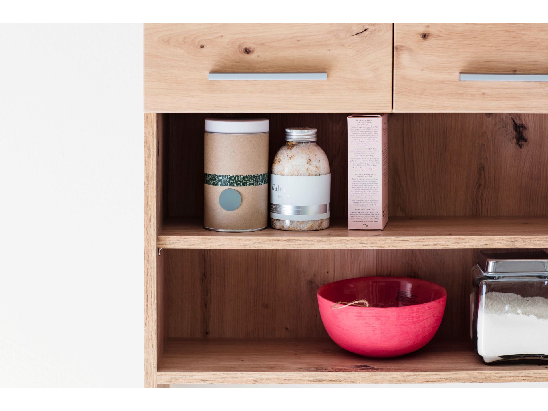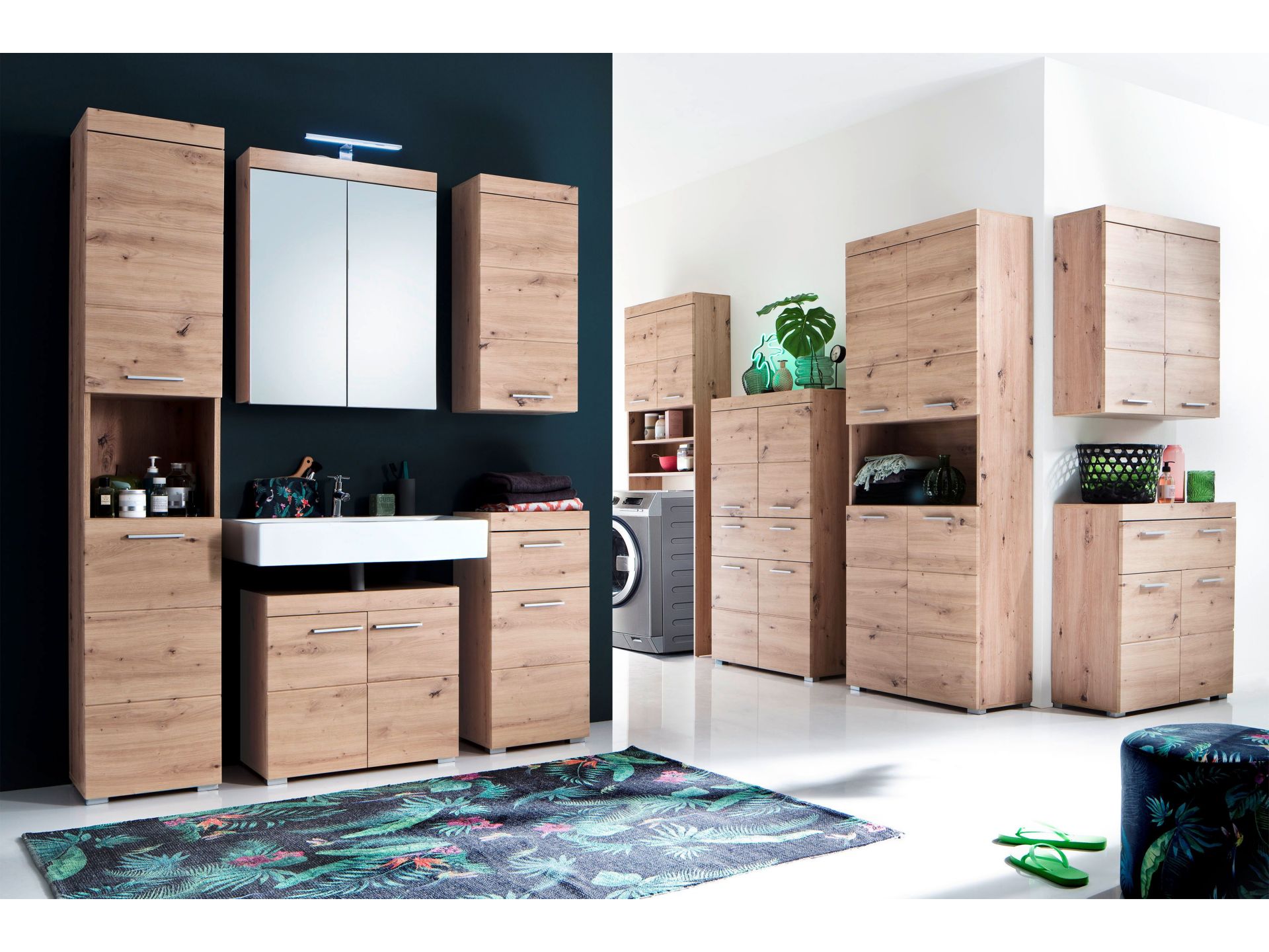 1 x: (139310592) Amanda/Mando Bad:Ko.Asteiche Melamin,Fr.Asteiche TZ,Hochschrank breit