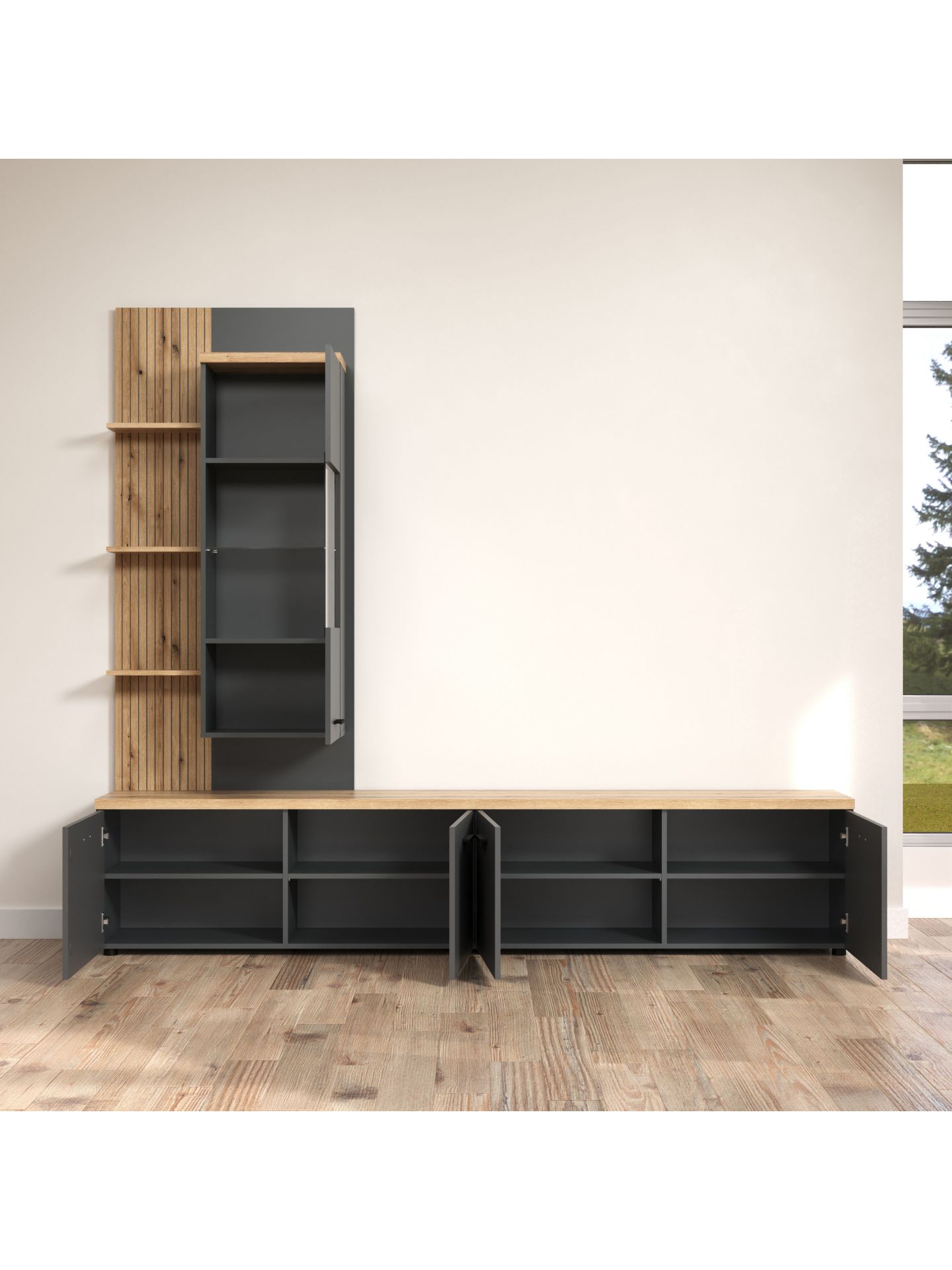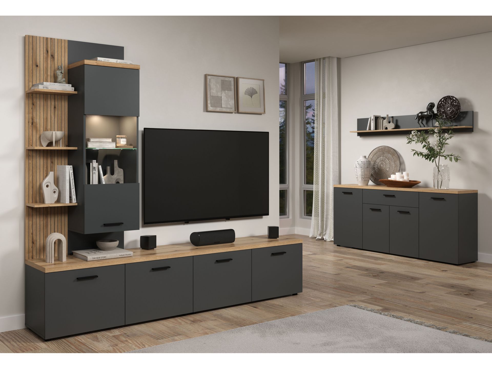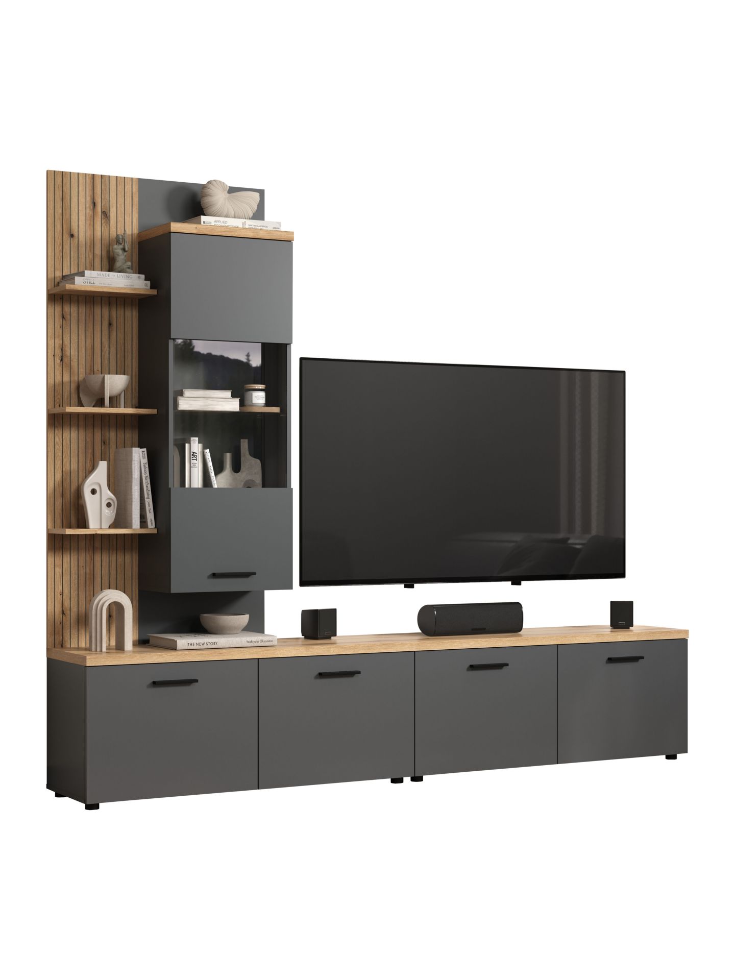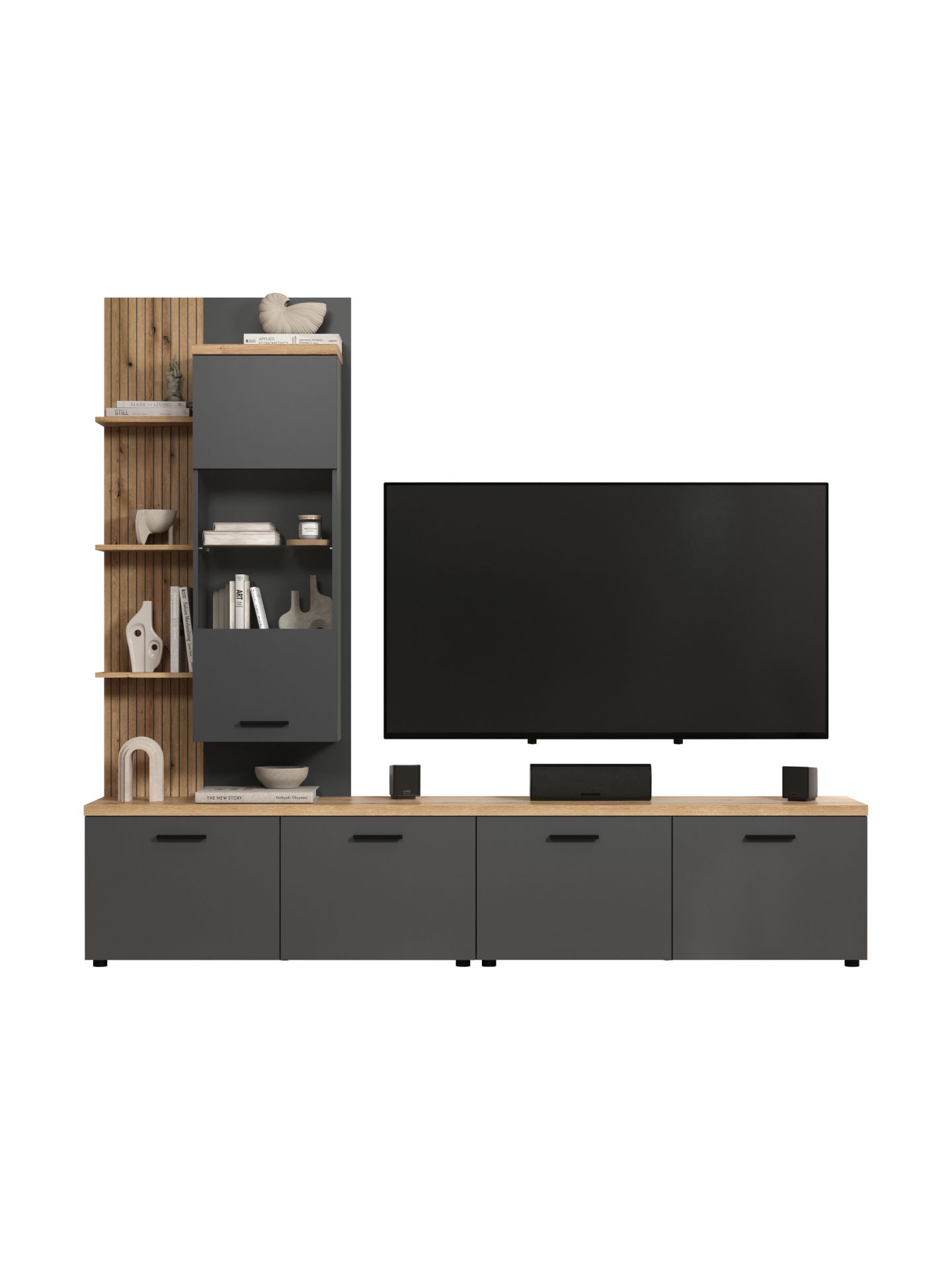 Baggio WO:Ko.+Fr.Anthrazit Melamin,Abs.Ko.Evoke Oak Nachbildung,Wohnwand