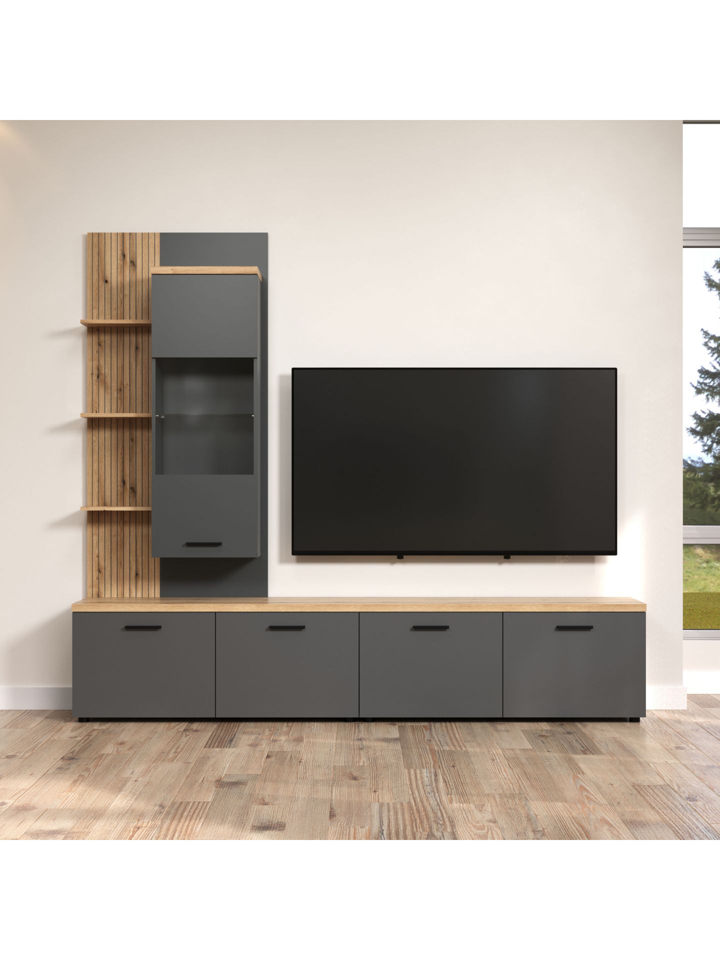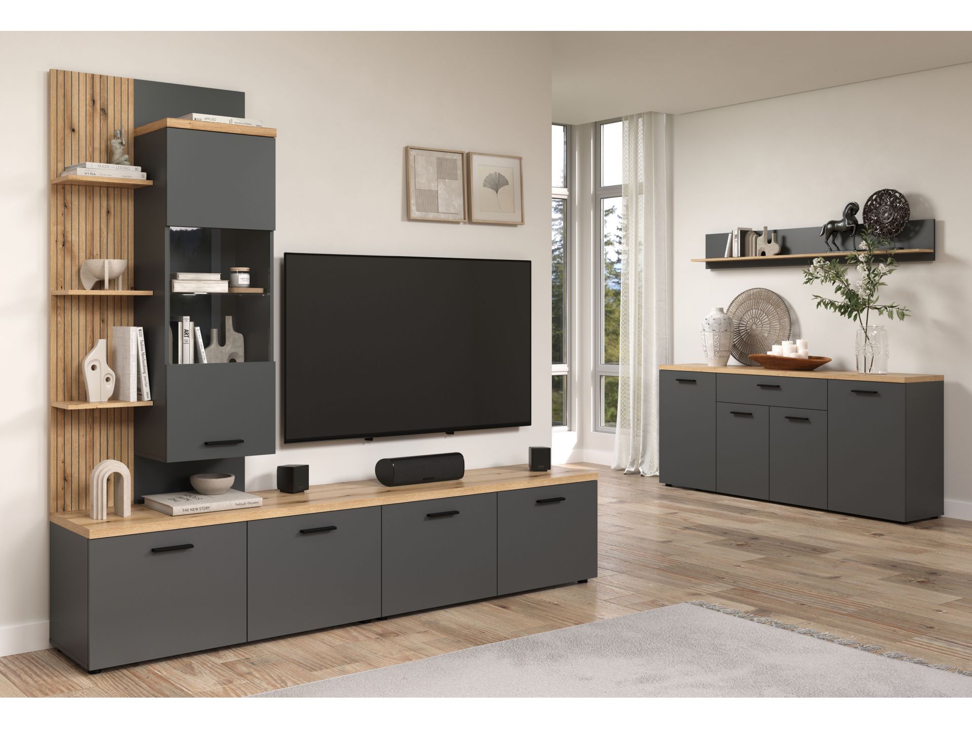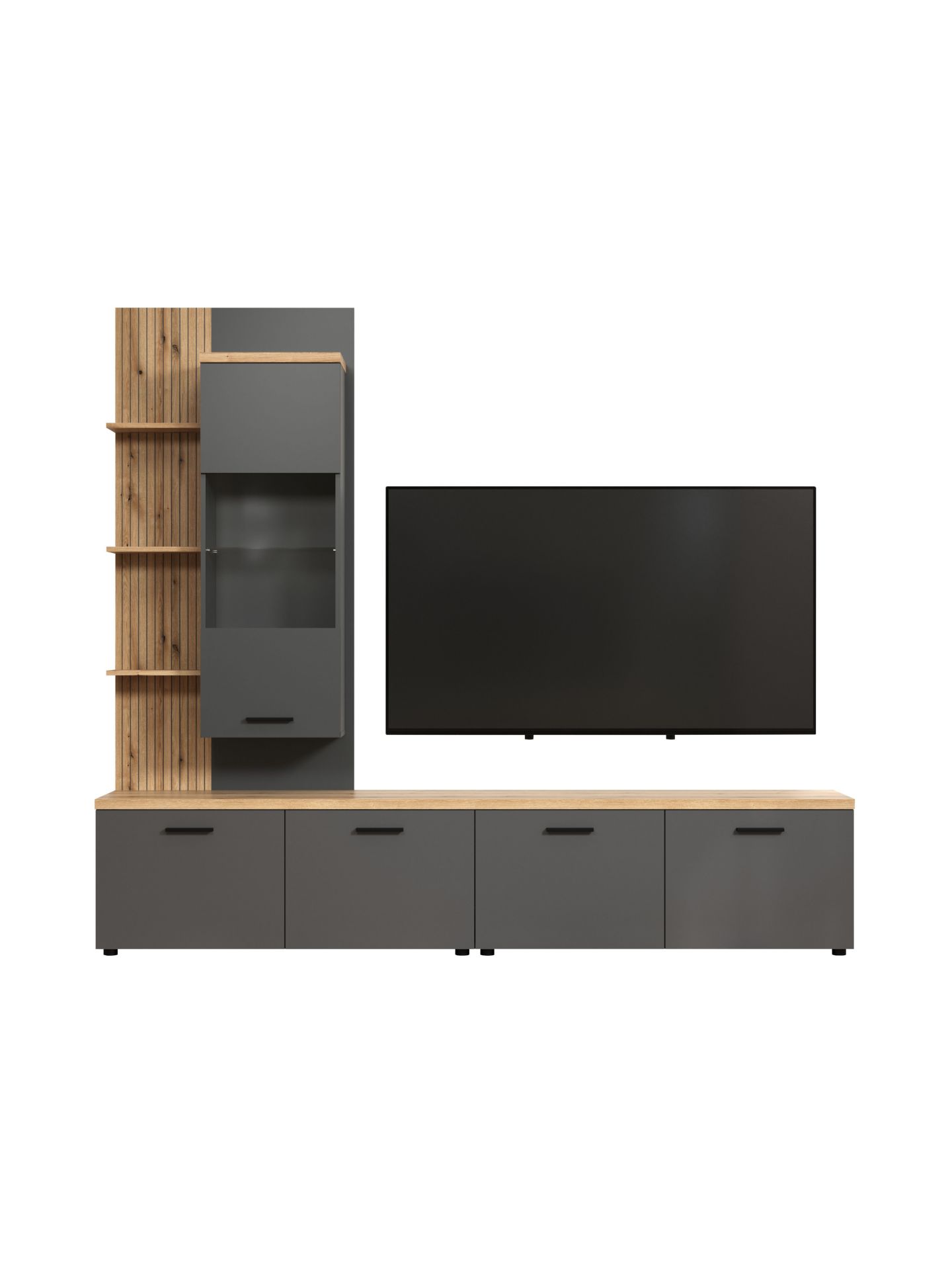 Baggio WO:Ko.+Fr.Anthrazit Melamin,Abs.Ko.Evoke Oak Nachbildung,Wohnwand
