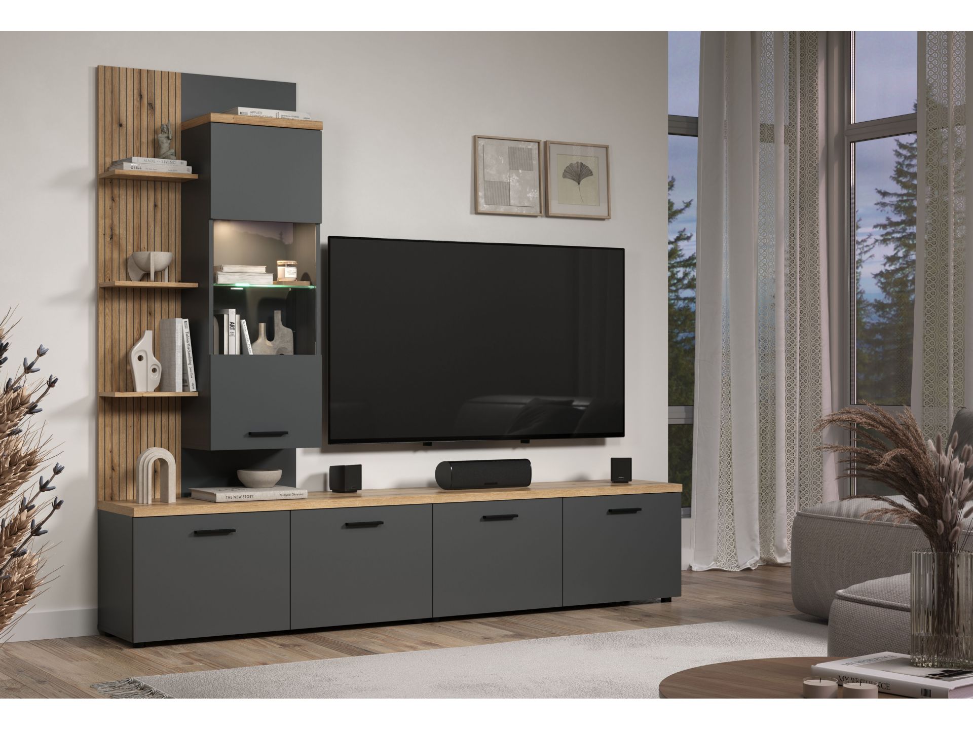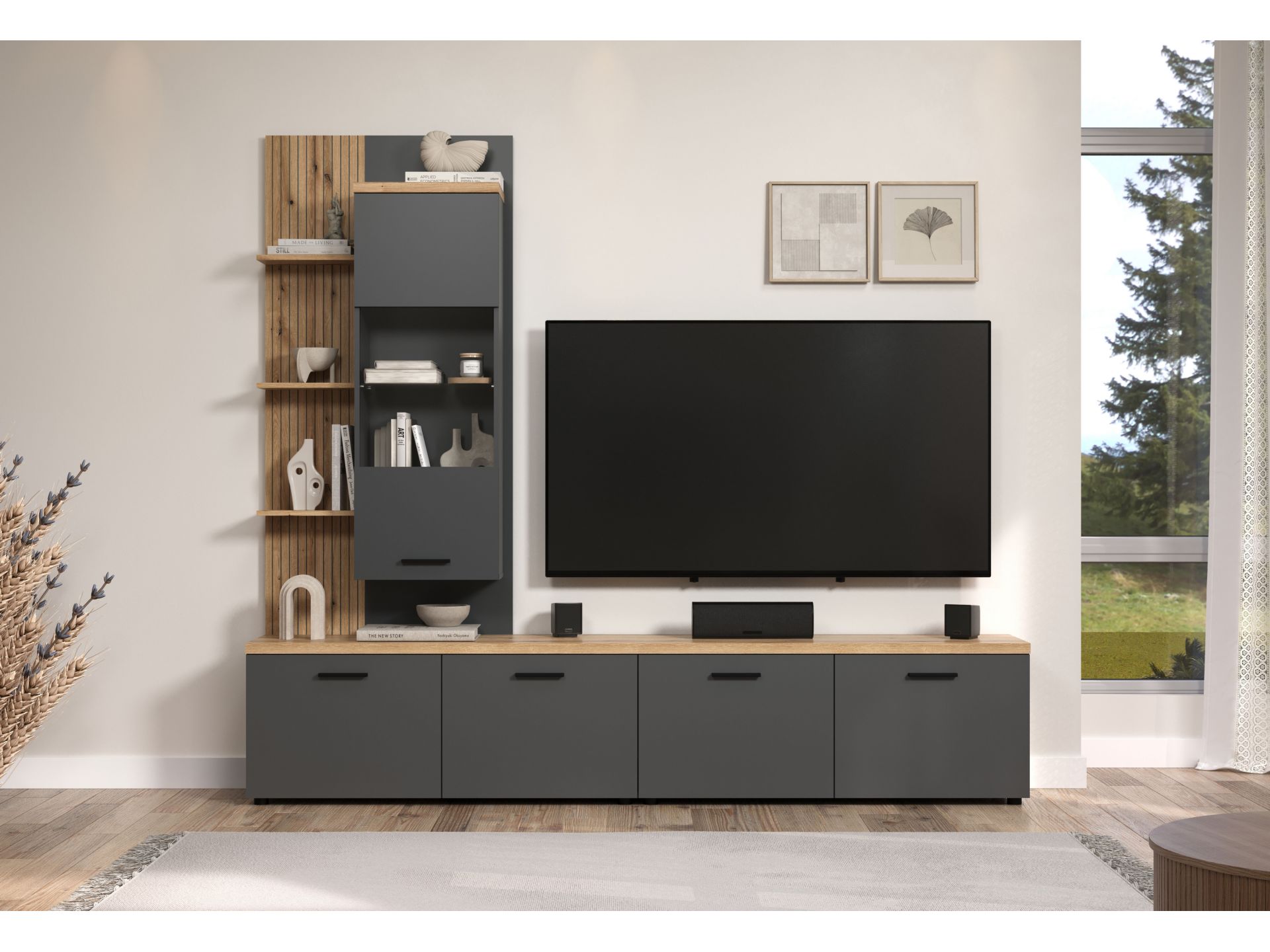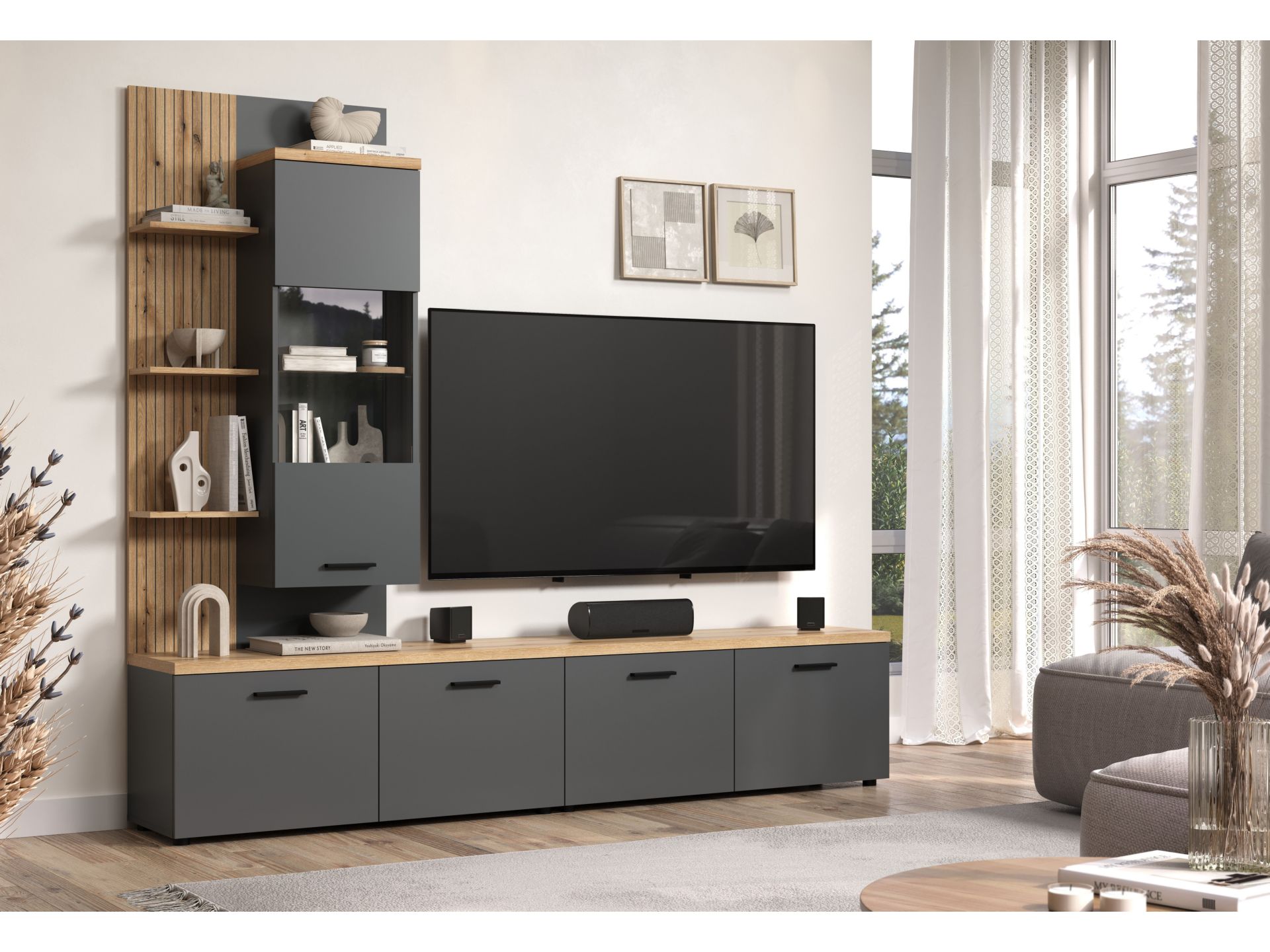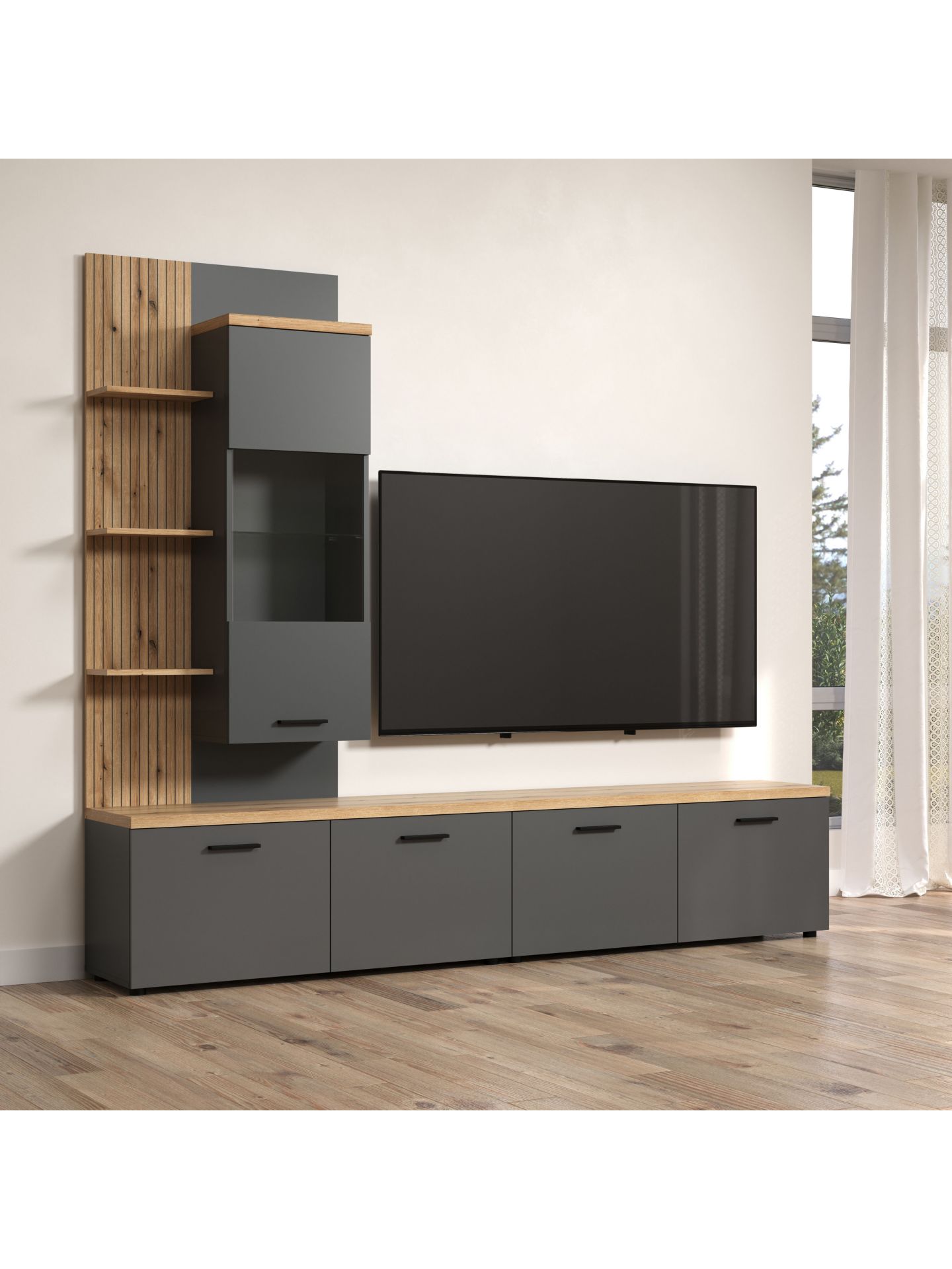 Baggio WO:Ko.+Fr.Anthrazit Melamin,Abs.Ko.Evoke Oak Nachbildung,Wohnwand