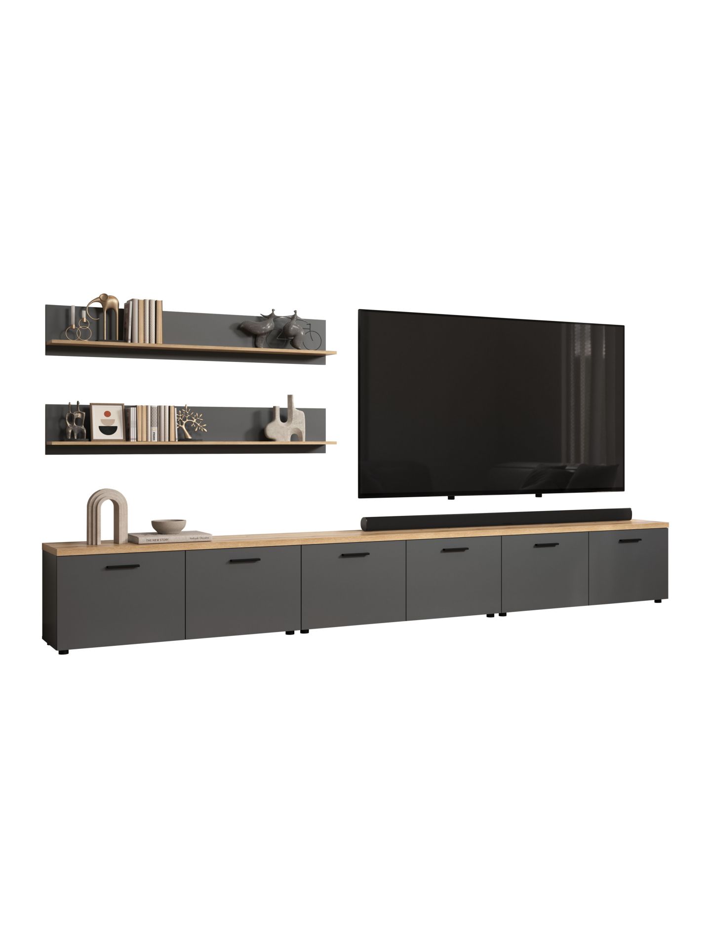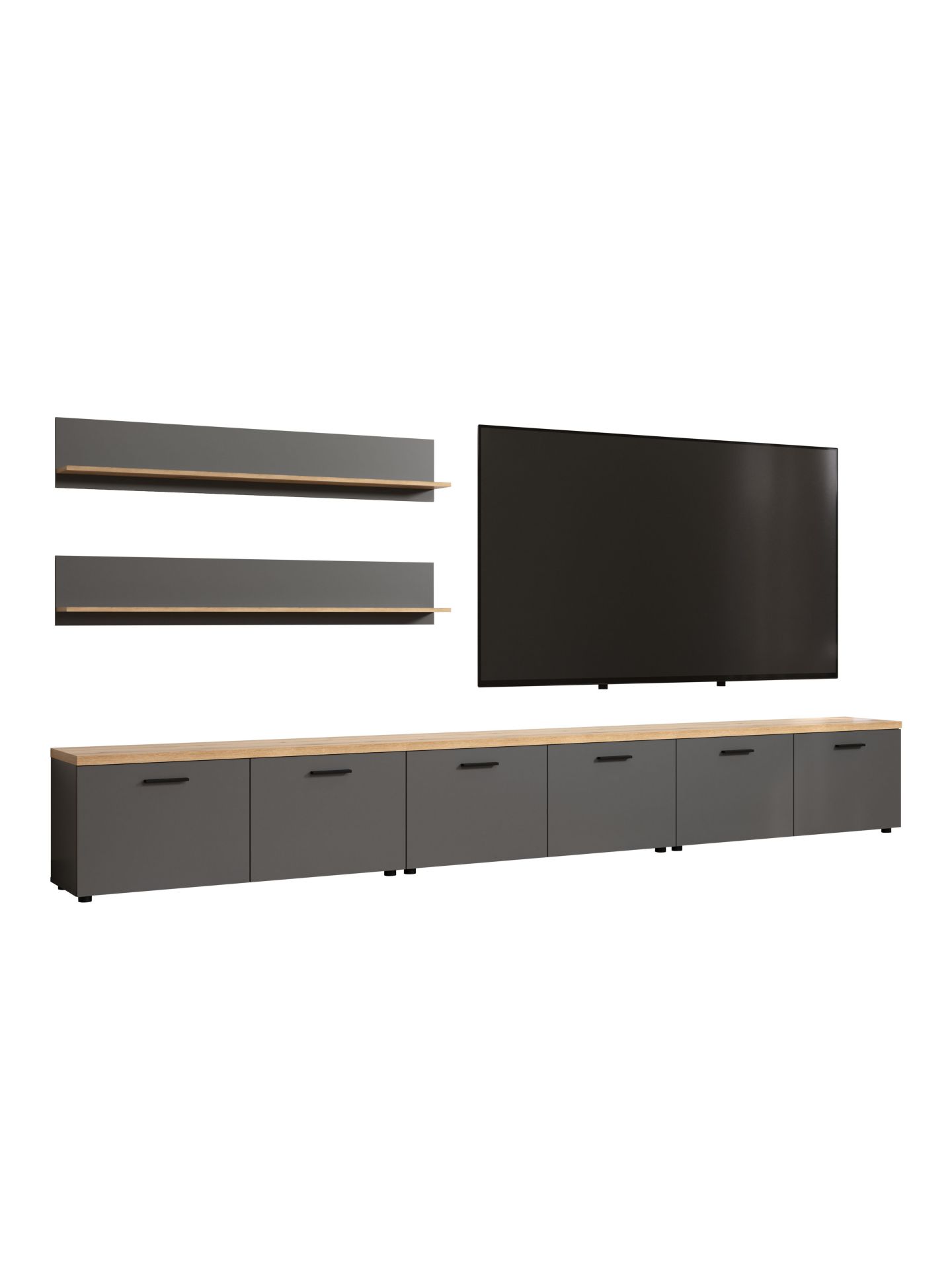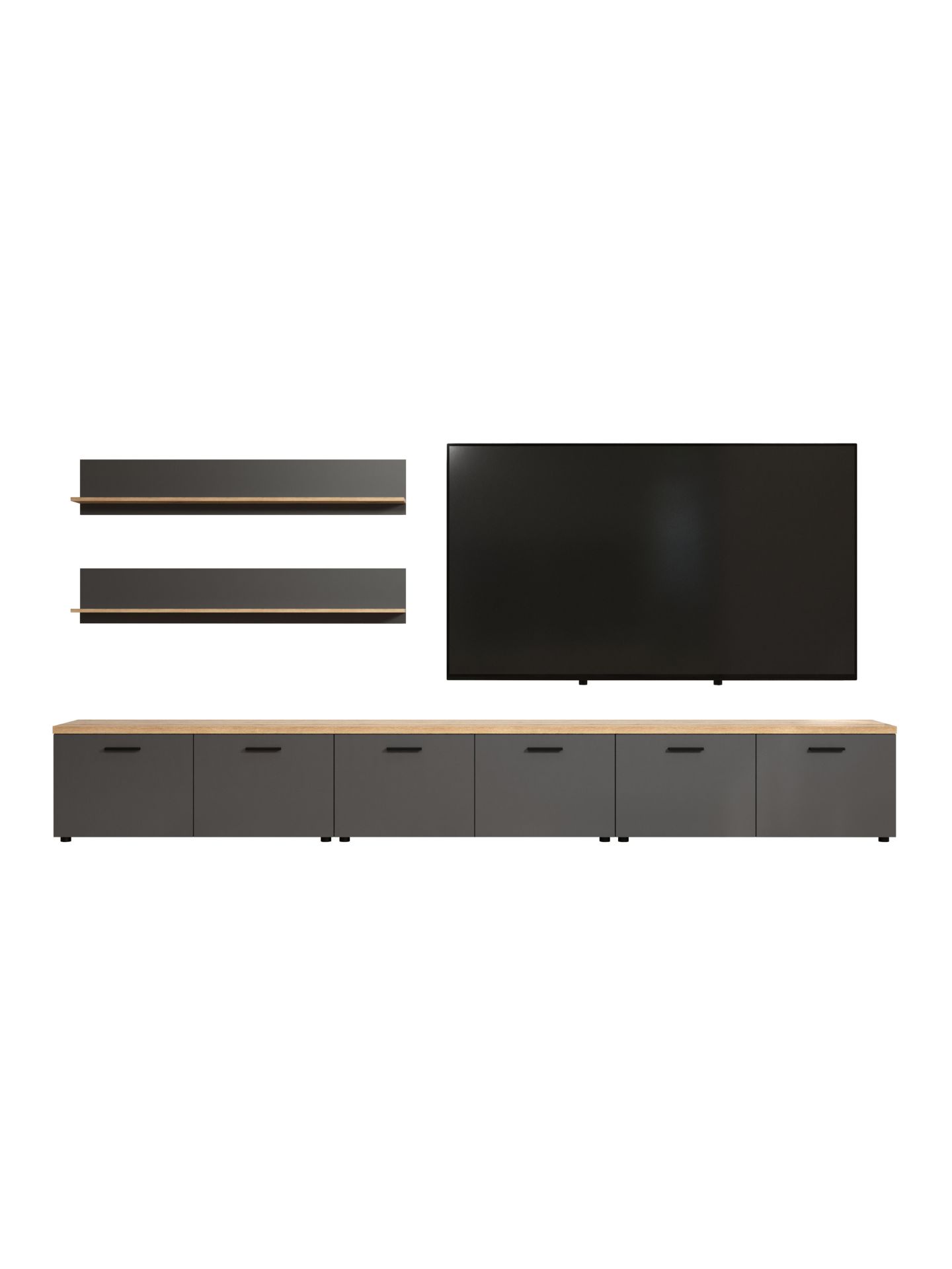 Baggio WO:Ko.+Fr.Anthrazit Melamin,Abs.Ko.Evoke Oak Nachbildung,Wohnwand