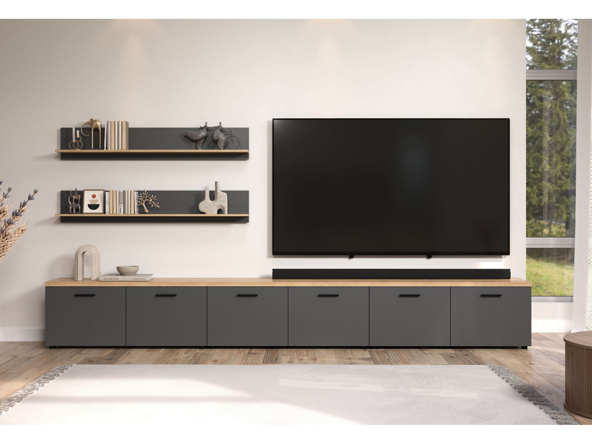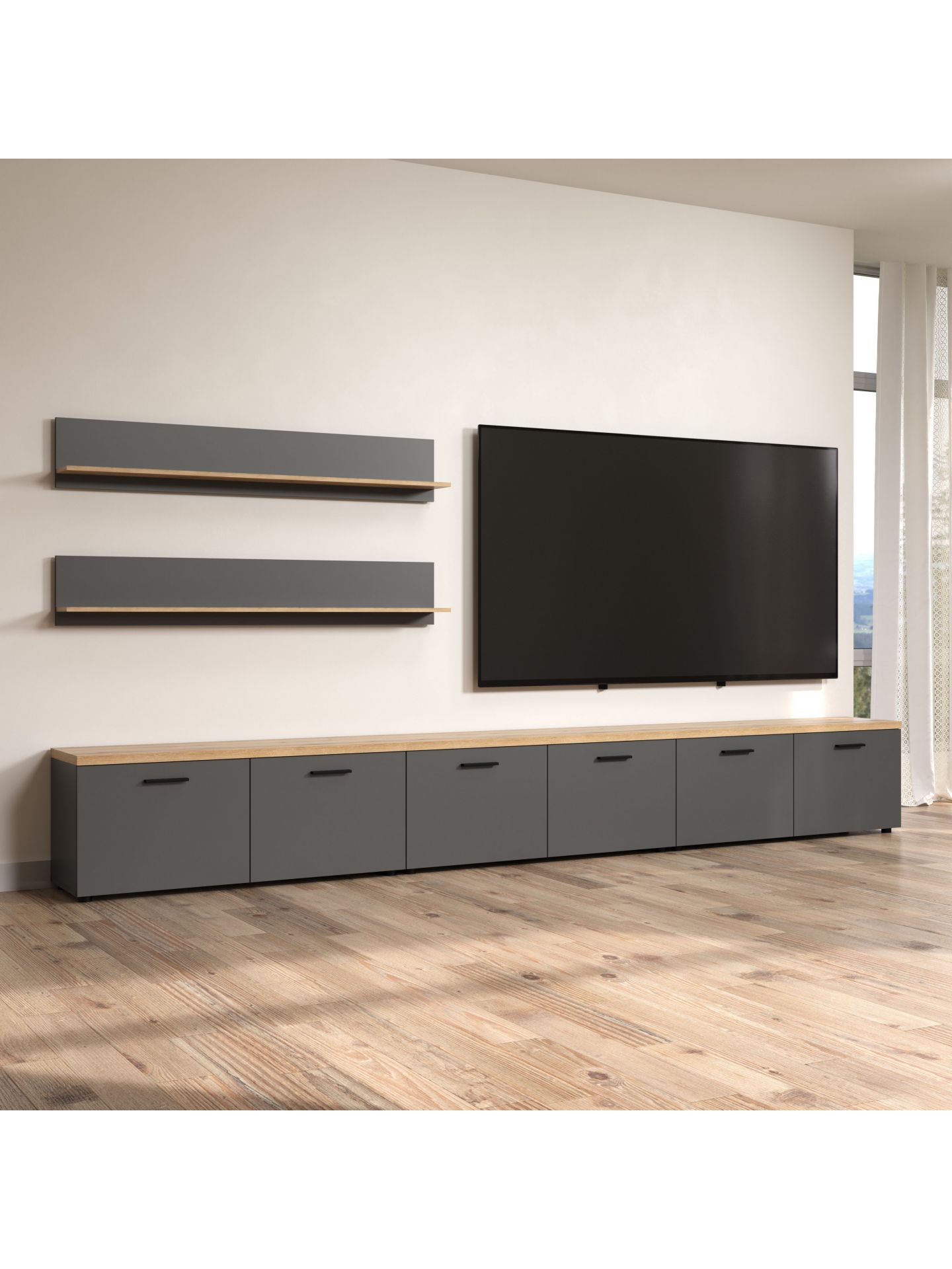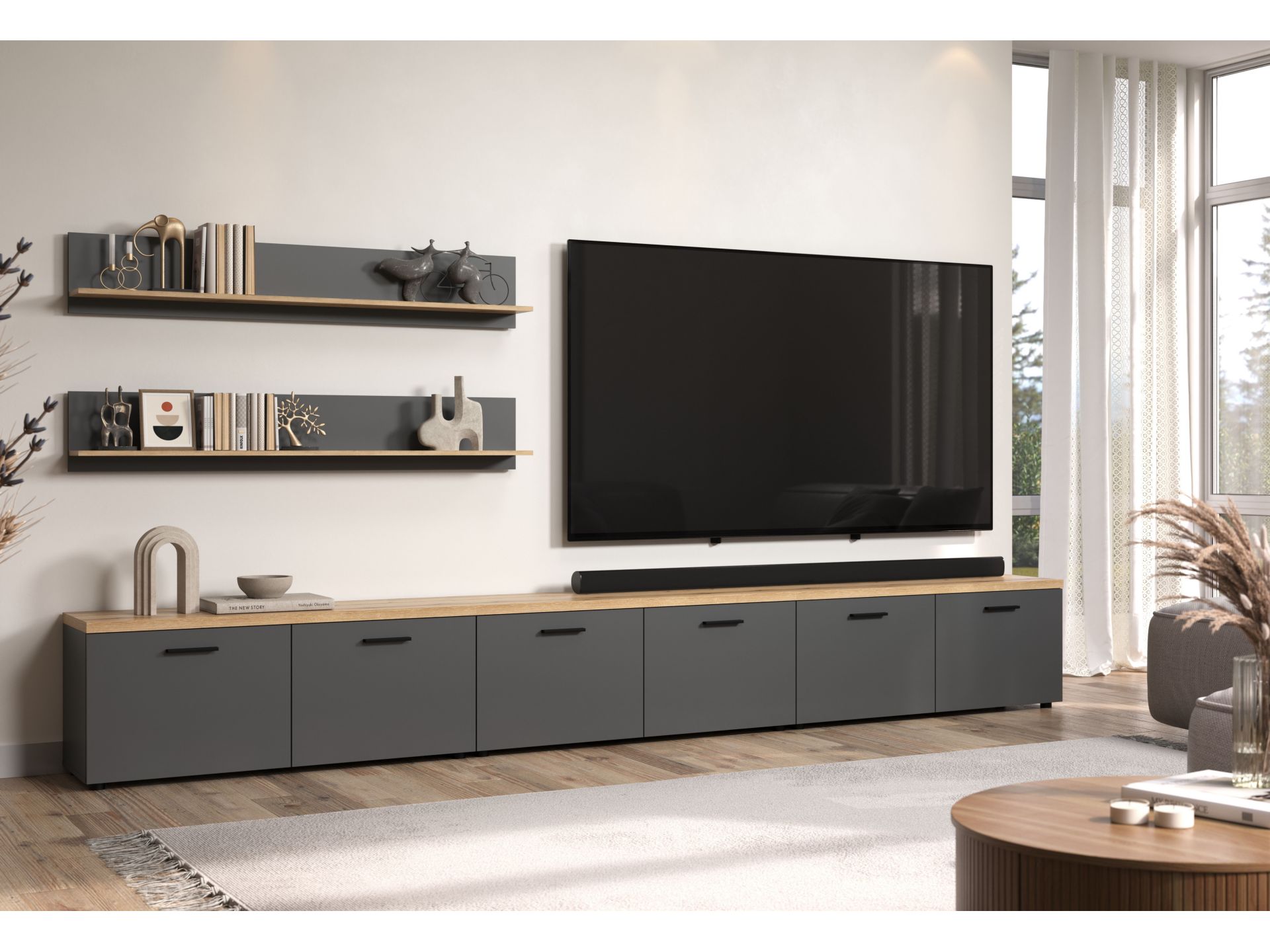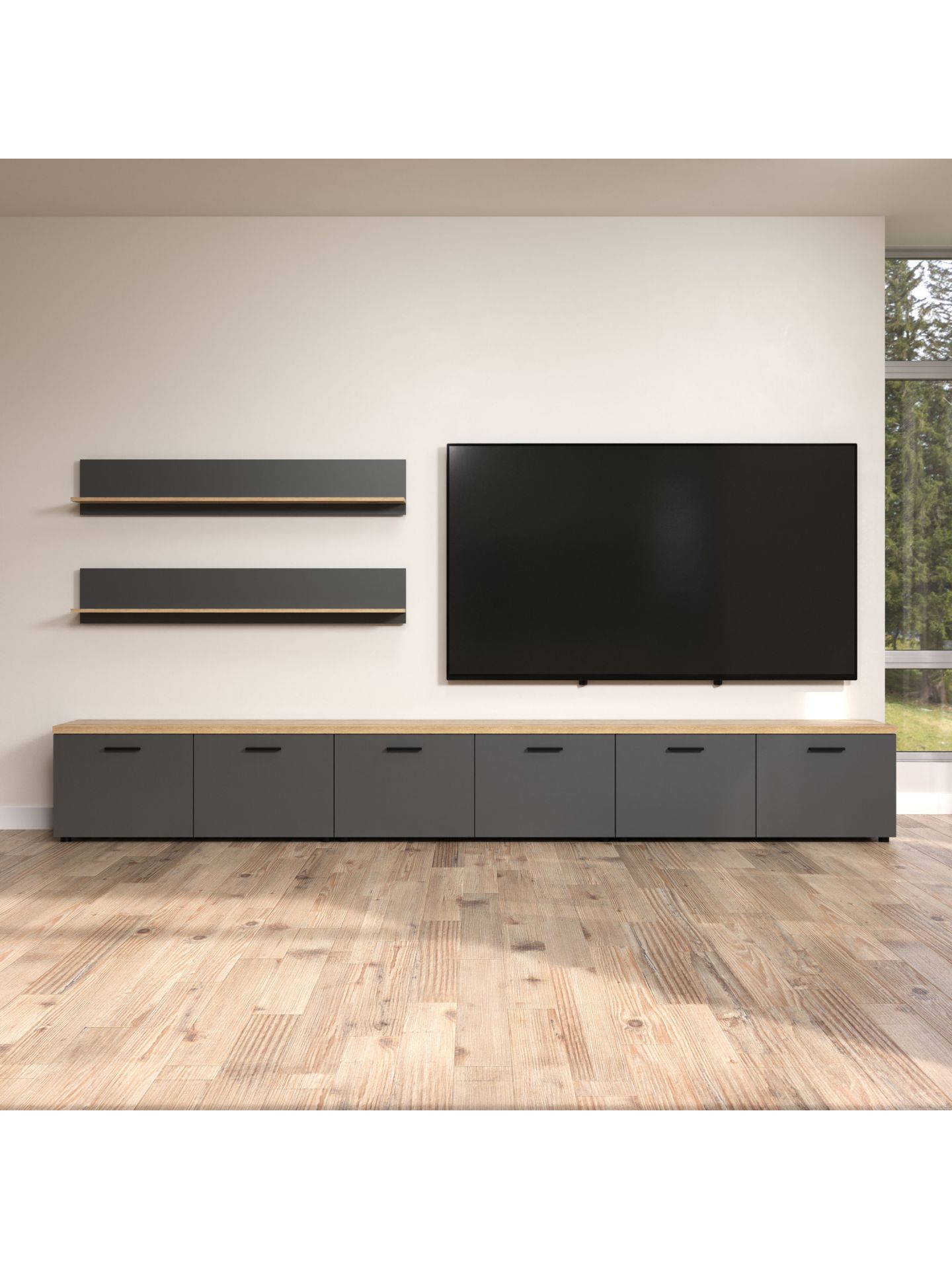 Baggio WO:Ko.+Fr.Anthrazit Melamin,Abs.Ko.Evoke Oak Nachbildung,Wohnwand