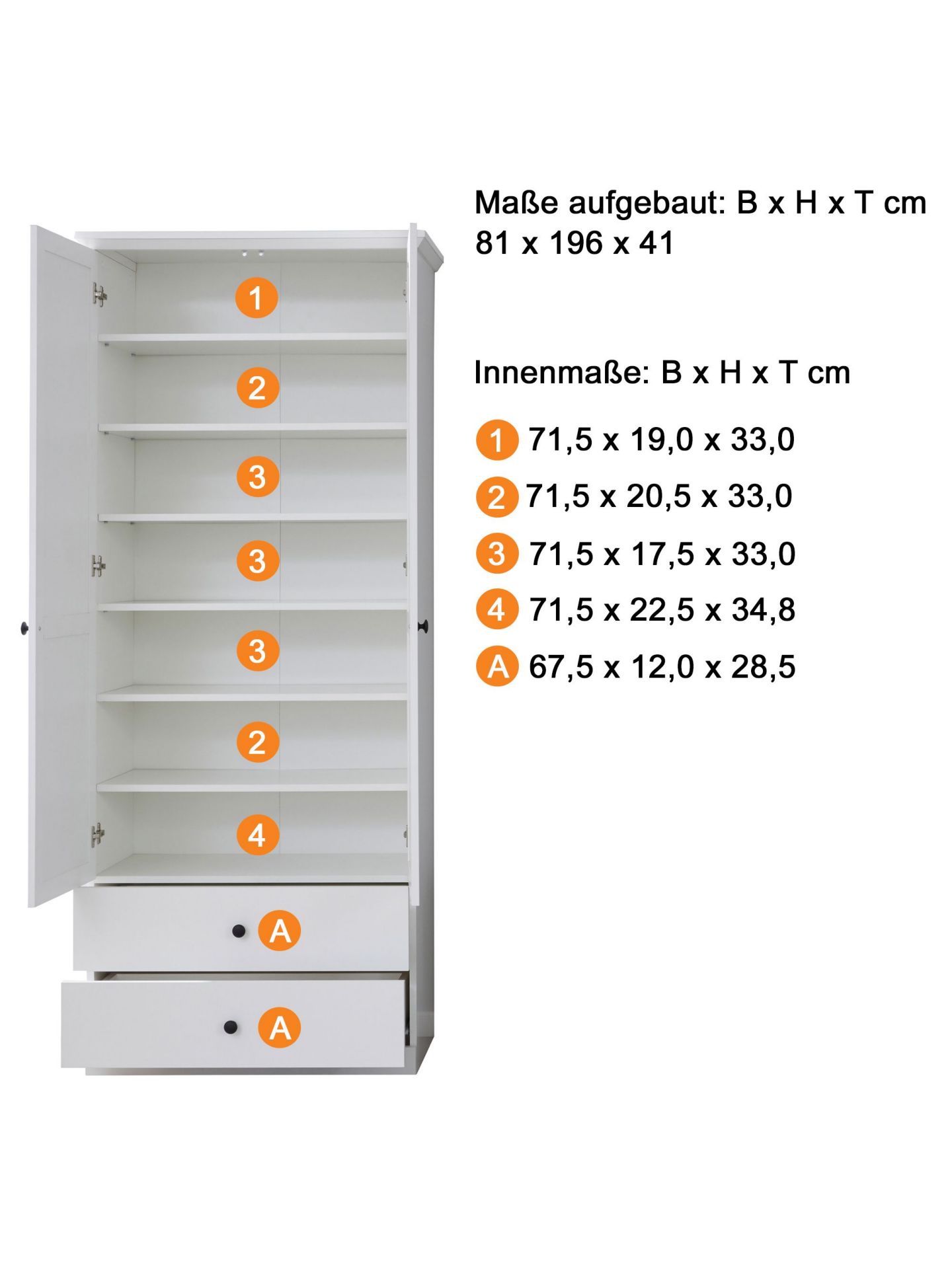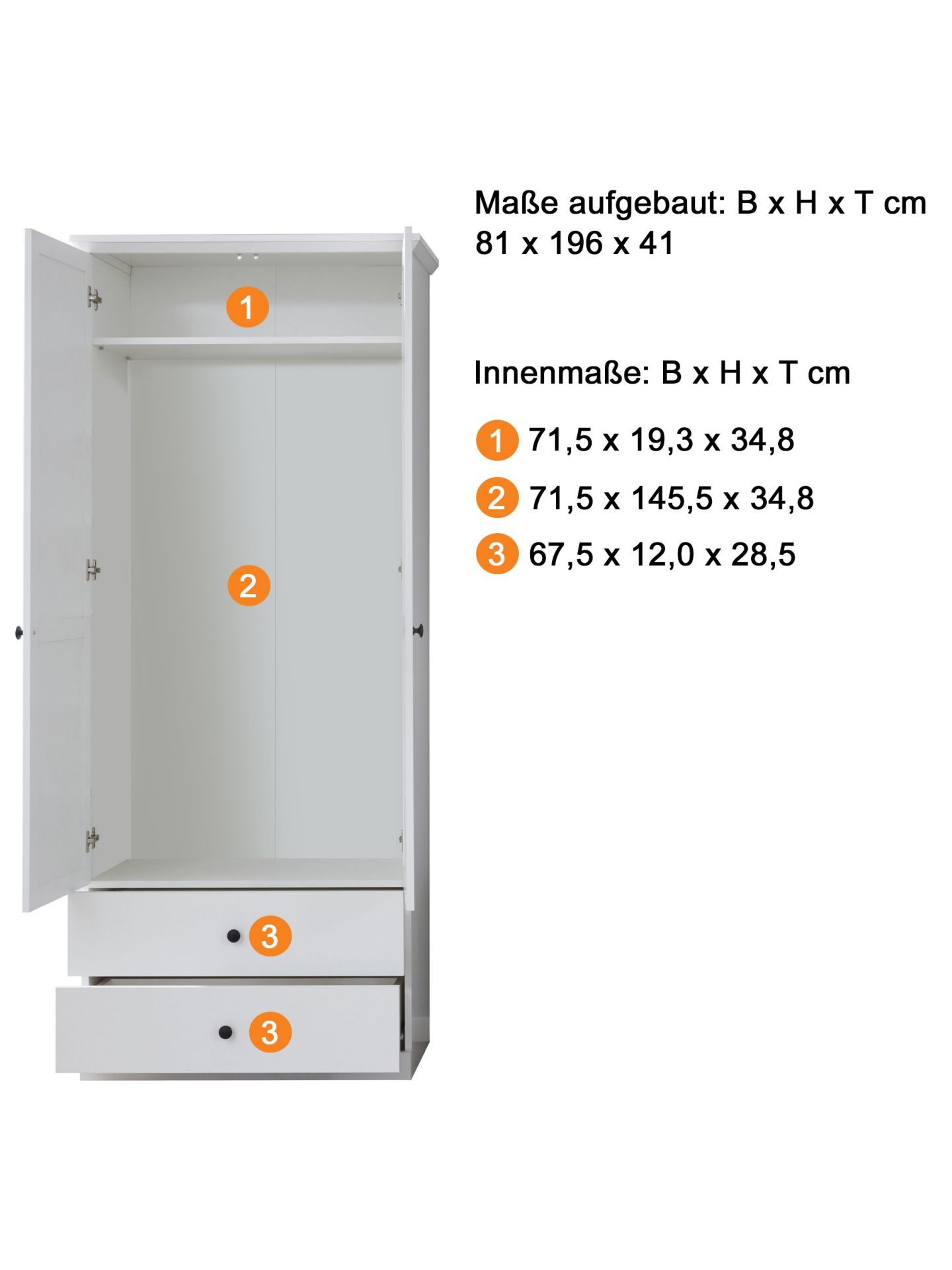 1 x: (186011701) Brandson Baxter Wo.:Ko+Fr. Weiß Dekor, Garderobenschrank