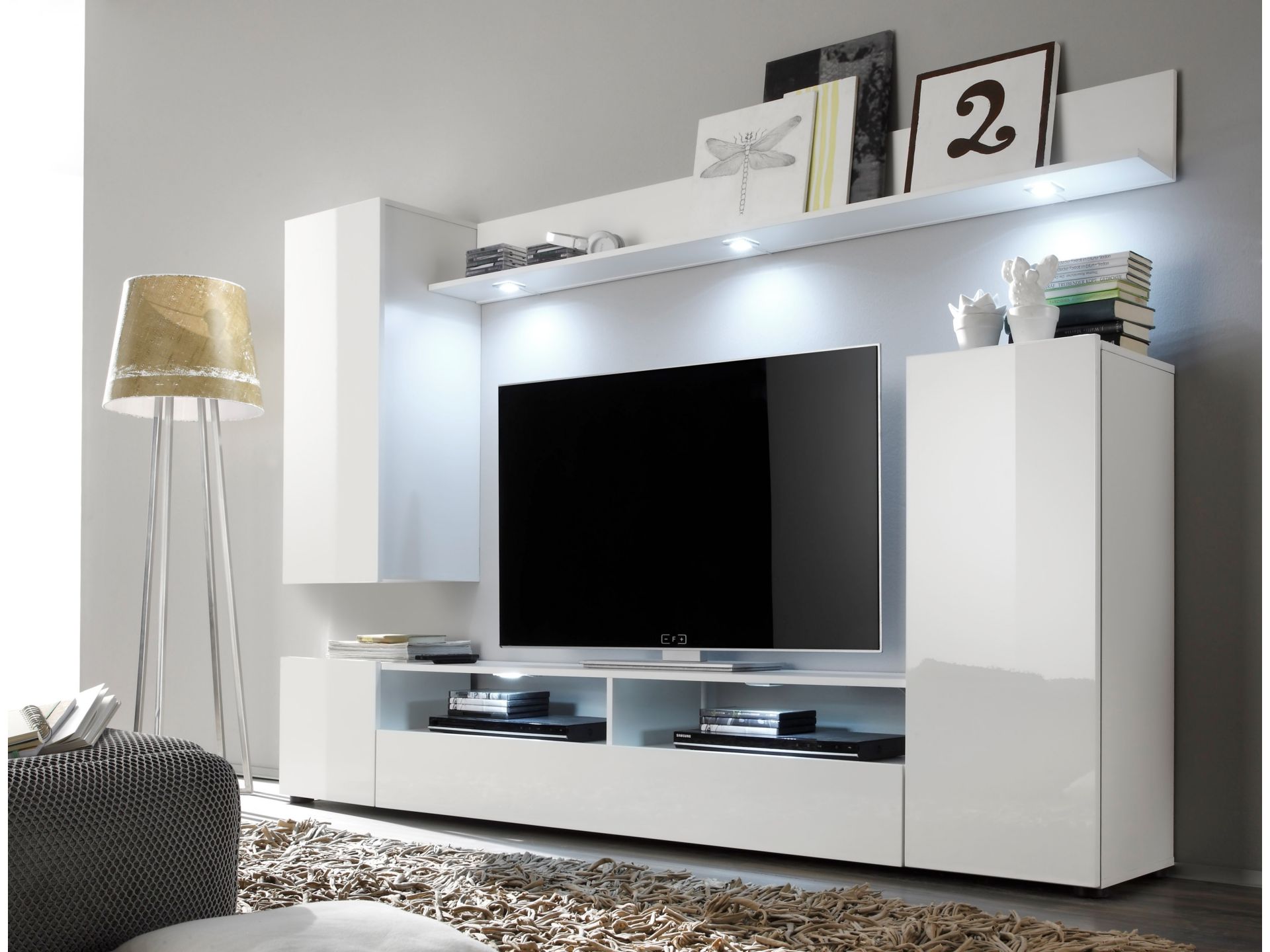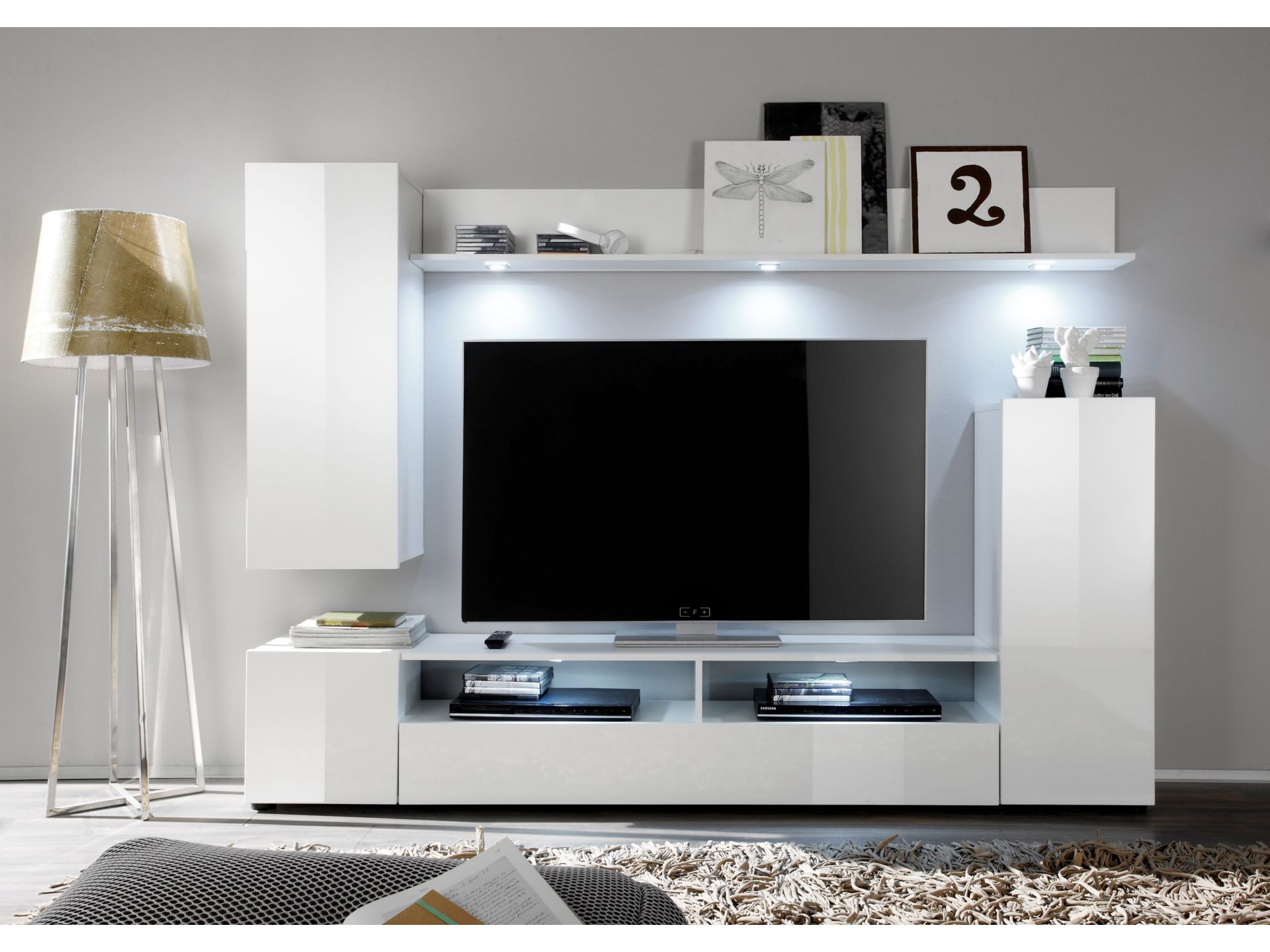 Die mittelgroße Anbauwand "Dos" überzeugt nicht nur mit ihrer trendigen Aufmachung, sondern ist auch eine besonders geeignete Option, platzsparend alle wichtigen Dinge aufzubewahren. Dank der weißen Front- und Korpusgestaltung wird das Design zum wahren Hingucker, und passt sich erstklassig dem Raum an. Eine einzigartige Langlebigkeit wird durch die Verwendung von Dekorfolie garantiert. Der Artikel lässt sich am besten mit zusätzlichen Möbeln des Sets kombinieren.