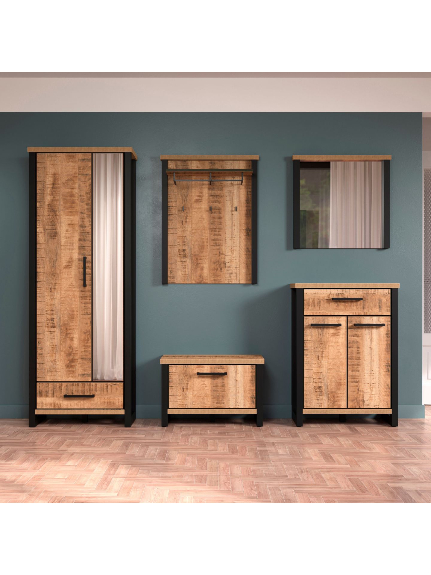 Willkommen zu Hause – mit Enna, der stilvollen Garderobenserie, die modernes Design mit rustikalem Charme vereint. Klare Linien, markante Kontraste und warme Holzoptik machen diese Serie zum Blickfang in jedem Eingangsbereich.
