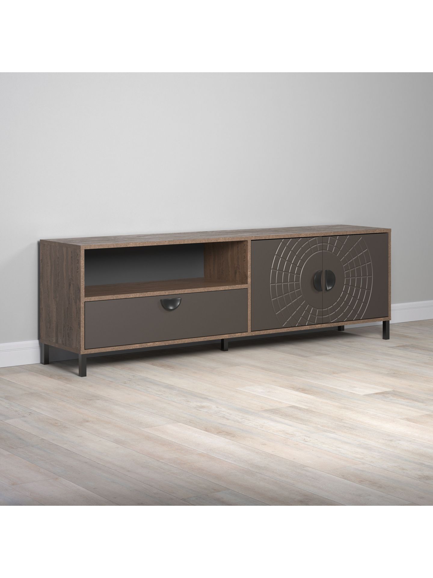 Die Wohnmöbelserie Fusion verbindet klare Formen mit einem markanten Design-Statement und wird so zum Blickfang in jedem modernen Wohnzimmer. Charakteristisches Highlight sind das hochwertig grafisch gefräste Kreismuster, das sich in allen Einzeltypen wiederfindet. In Kombination mit der warmen Holzoptik im Perlbronze Dekor und den ruhigen, dunklen Fronten in Rostoptik entsteht ein harmonischer Look: Von modern-minimalistisch bis urban gemütlich, die Serie Fusion ist ein optischer Hingucker in jedem Wohnzimmer.