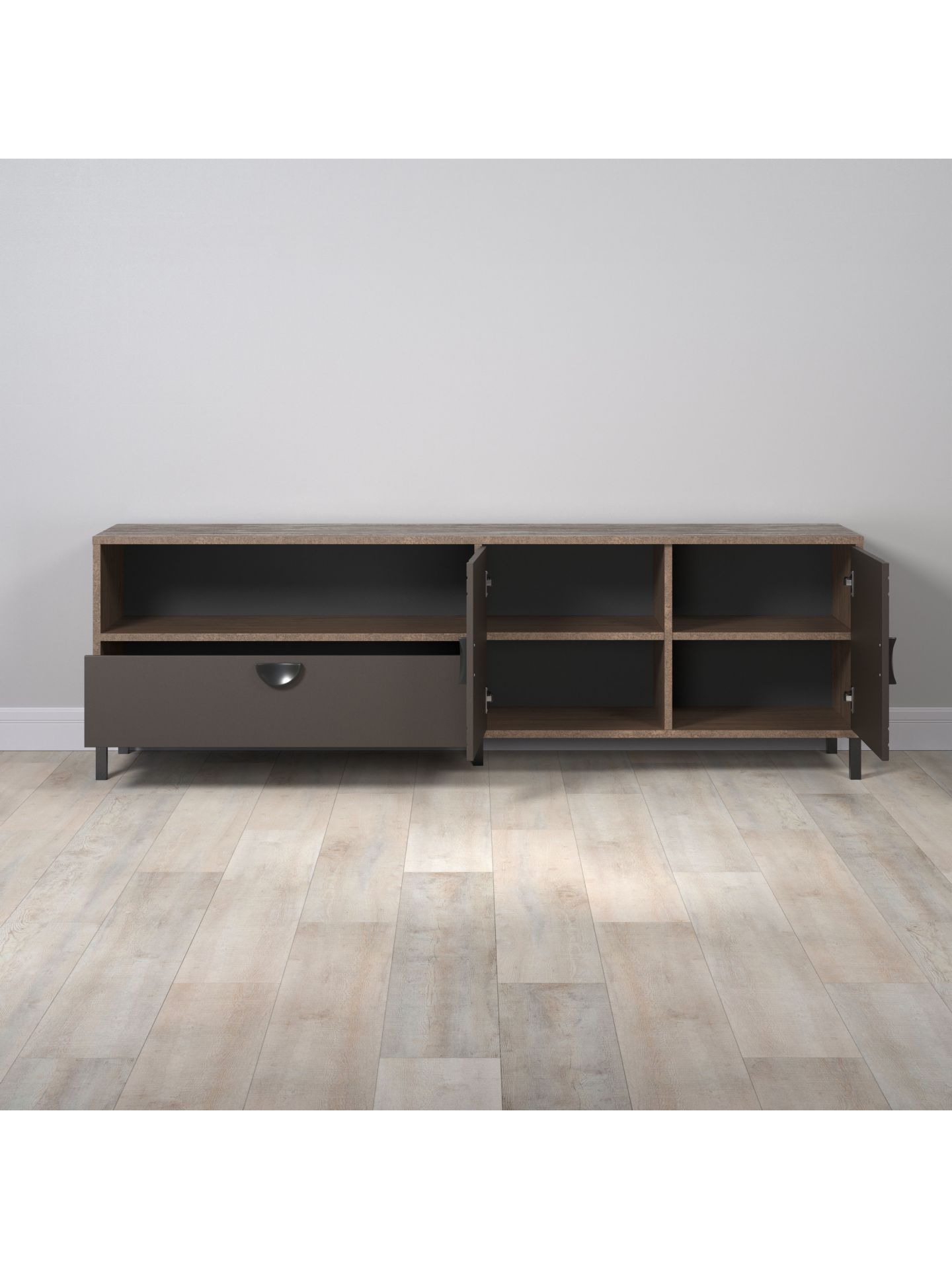 Ob TV-Lowboard, Sideboard, Highboard, Vitrine oder Couchtisch: Jedes Möbelstück der Serie Fusion überzeugt mit durchdachtem Stauraum, funktionalen Details und pflegeleichten Oberflächen. Offene Fächer setzen Dekoration, Bücher oder Technik gezielt in Szene, während geschlossene Bereiche für Ordnung sorgen. So bleibt das Wohnzimmer aufgeräumt, ohne an Wohnlichkeit zu verlieren. Soft-Close Türen für sanftes Schließen, schwarze Metallfüße und außergewöhnliche Türgriffe runden das Gesamtbild ab.