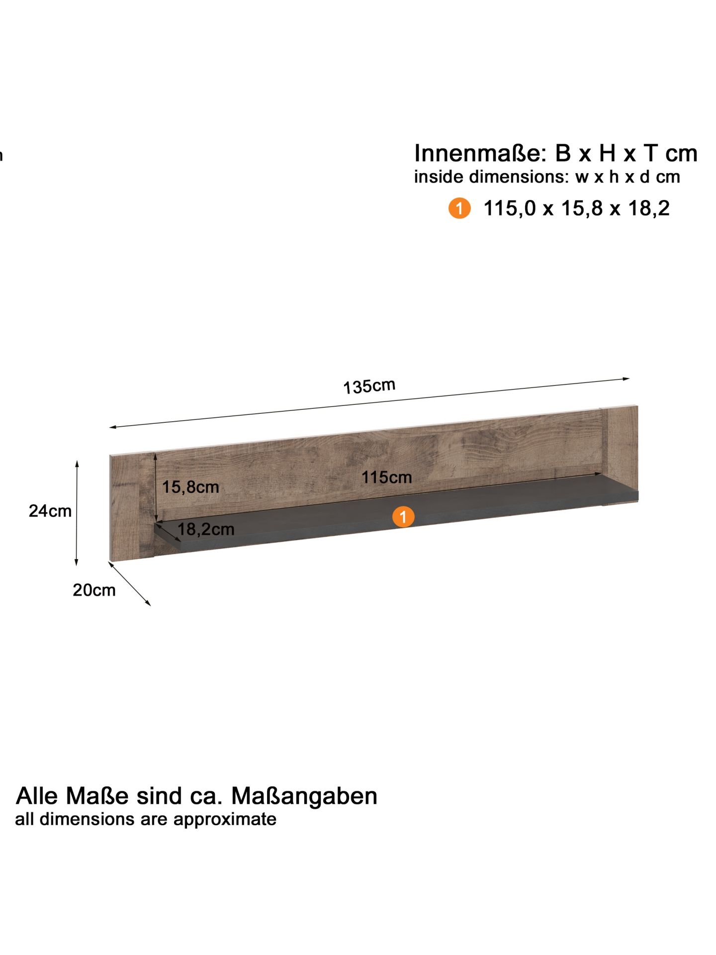 1 x: (173548348) Georgia Wohnen:Ko.Tabak Eiche NB,Ablage Matera NB,Wandboard