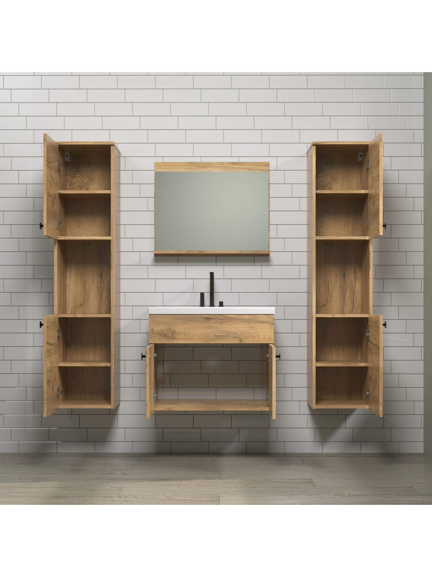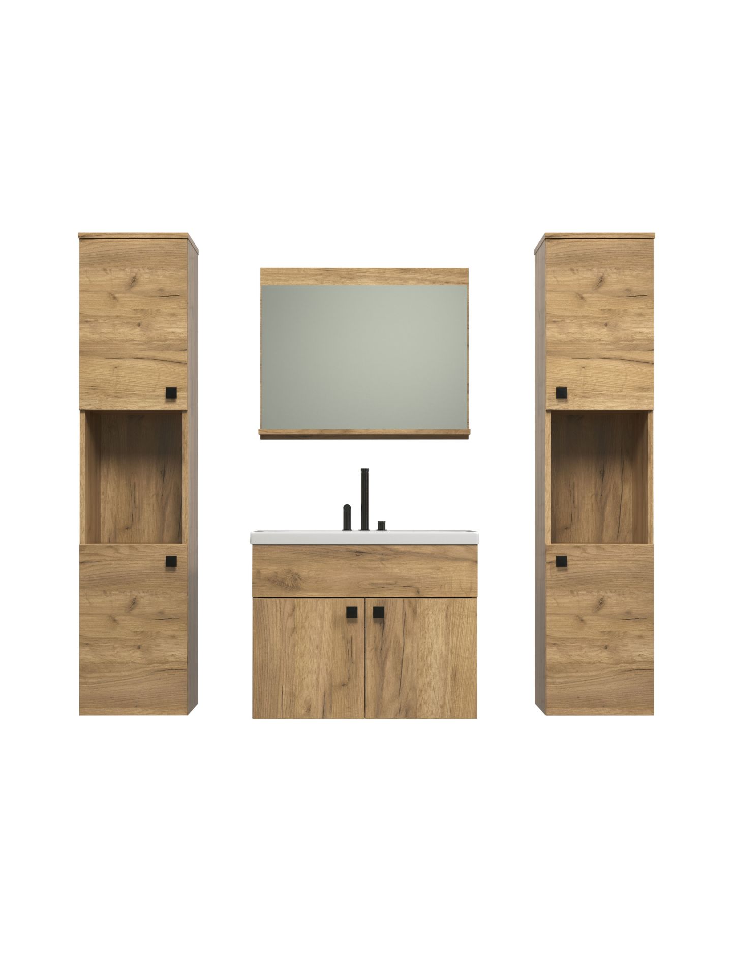 Haven BD:Ko.+Fr.Eiche Kraft Gold Melamin,Hänge-Badset inkl. Einsatzwaschbecken