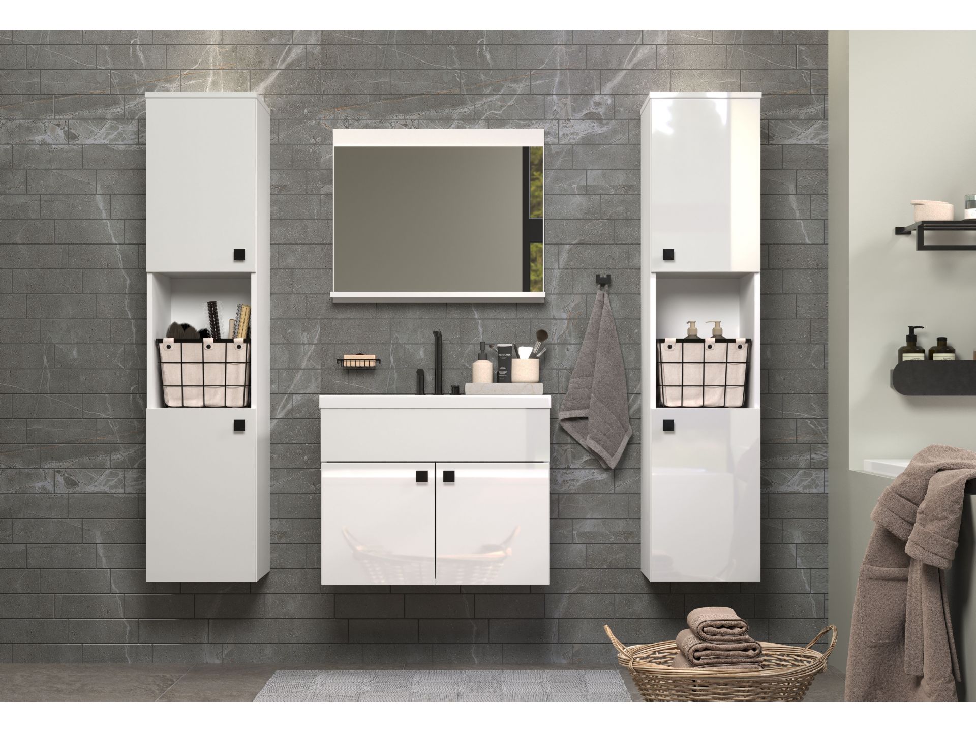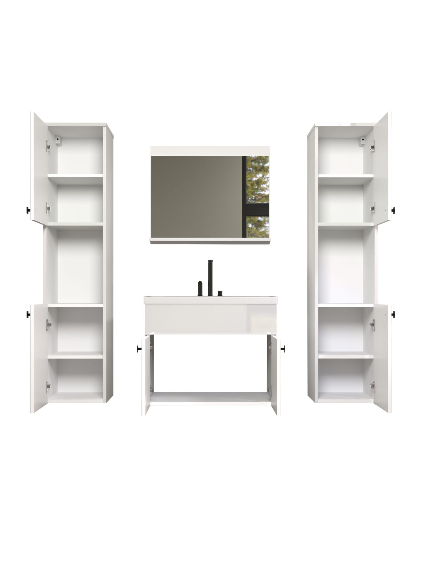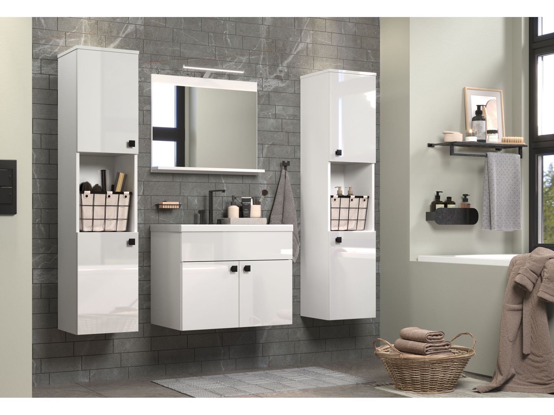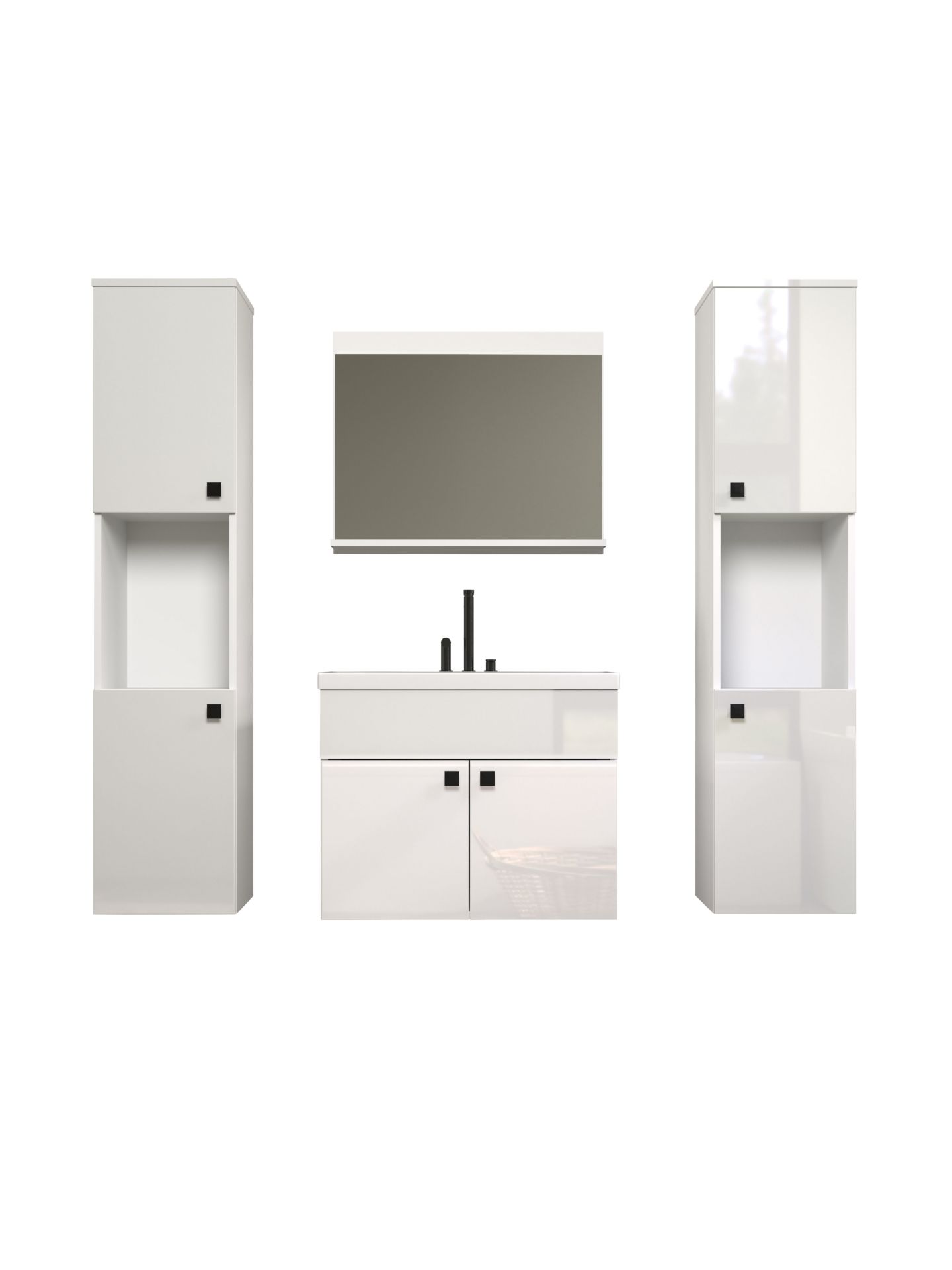 Haven BD:Ko.Weiß Melamin,Fr.Weiß Hochglanz Tiefzieh,Hänge-Badset inkl. Einsatzwaschbecken