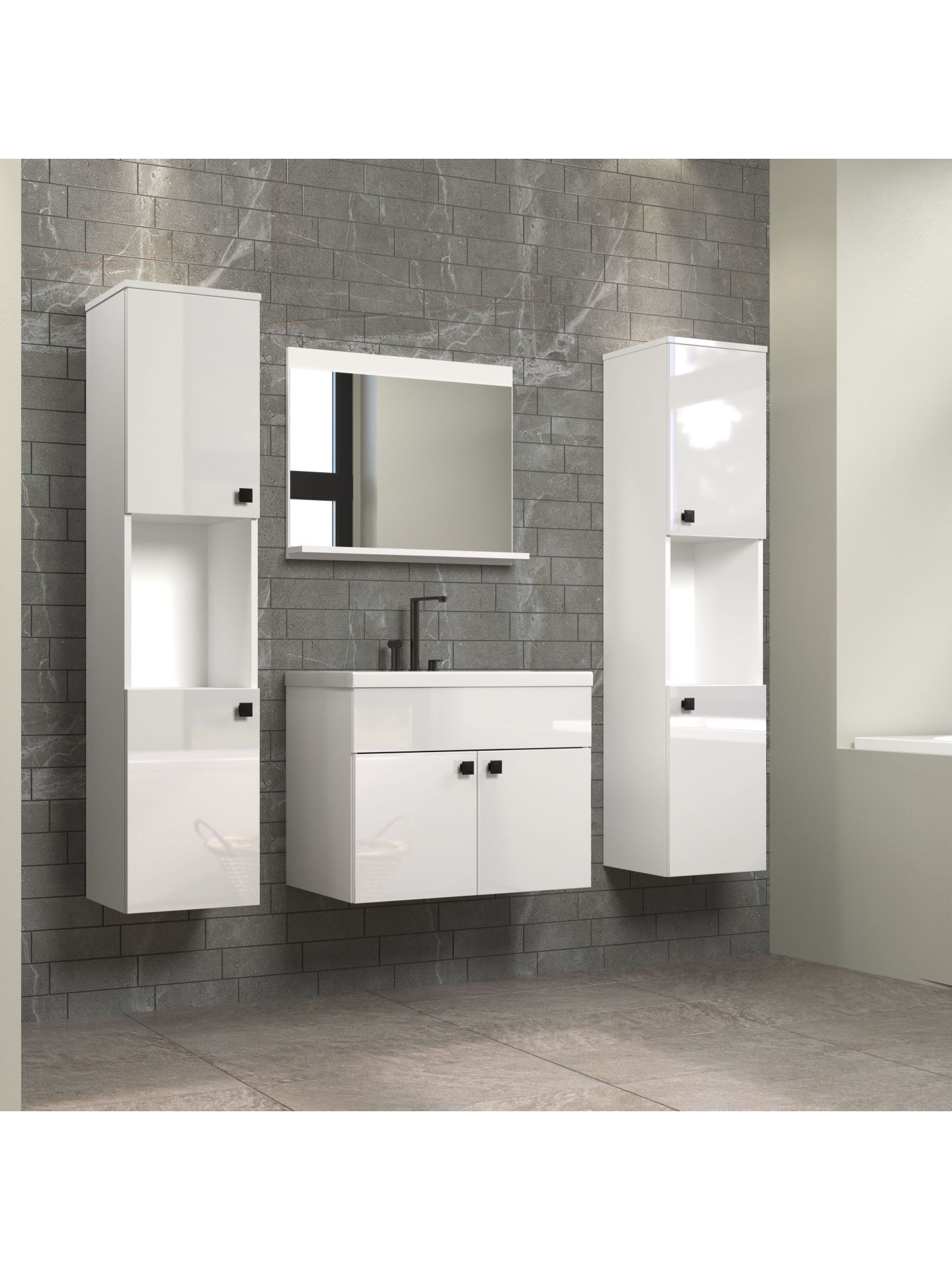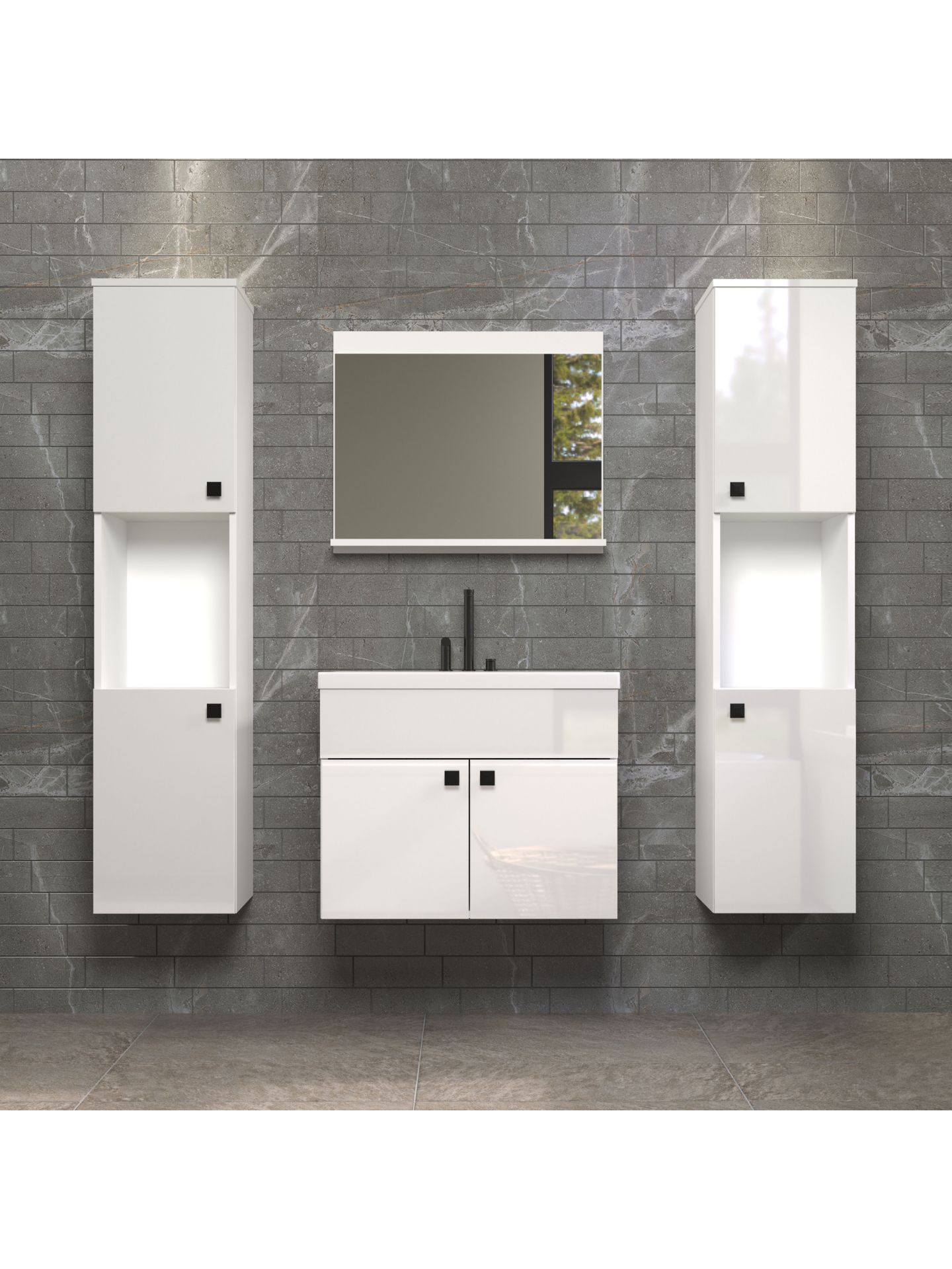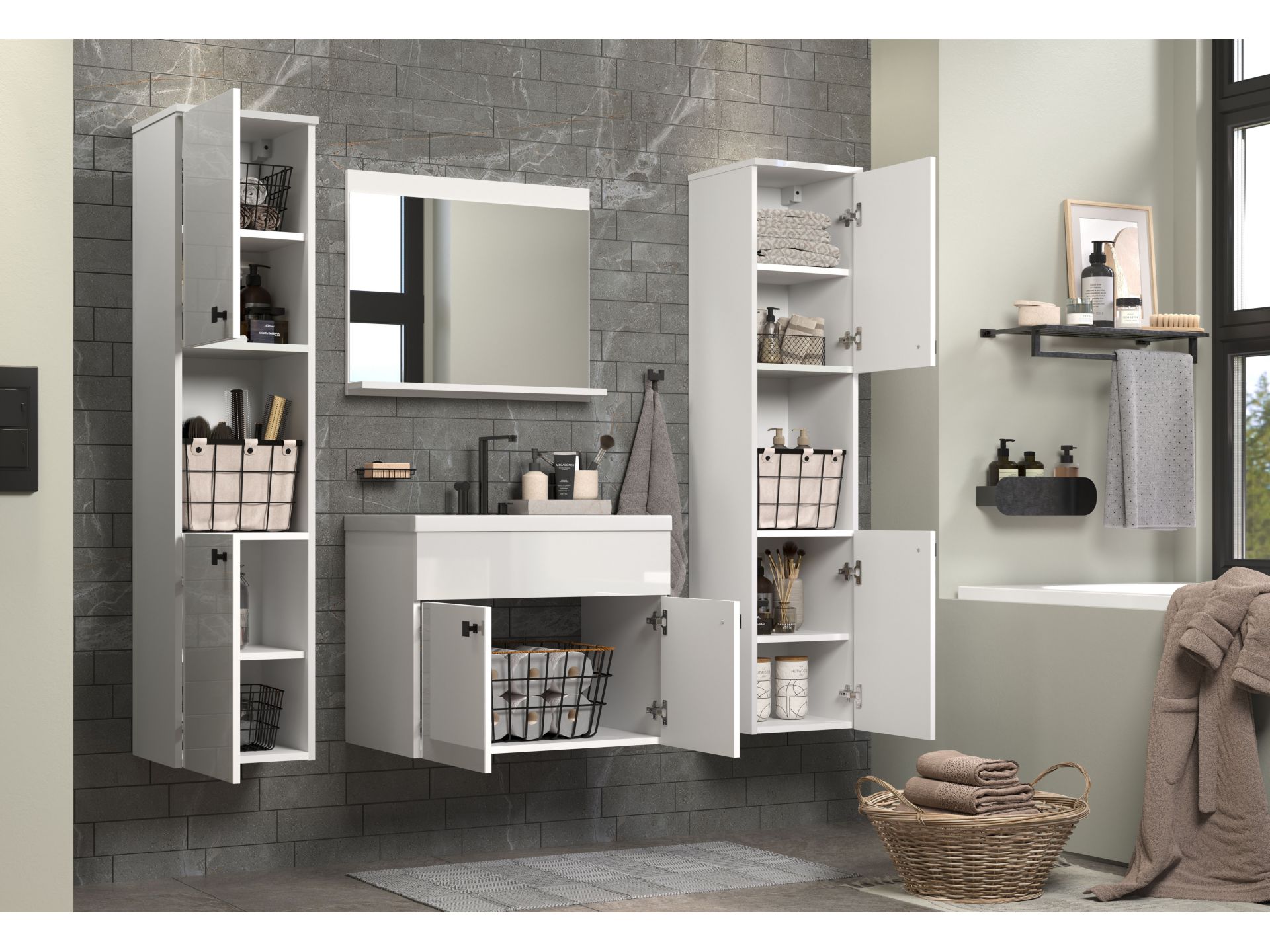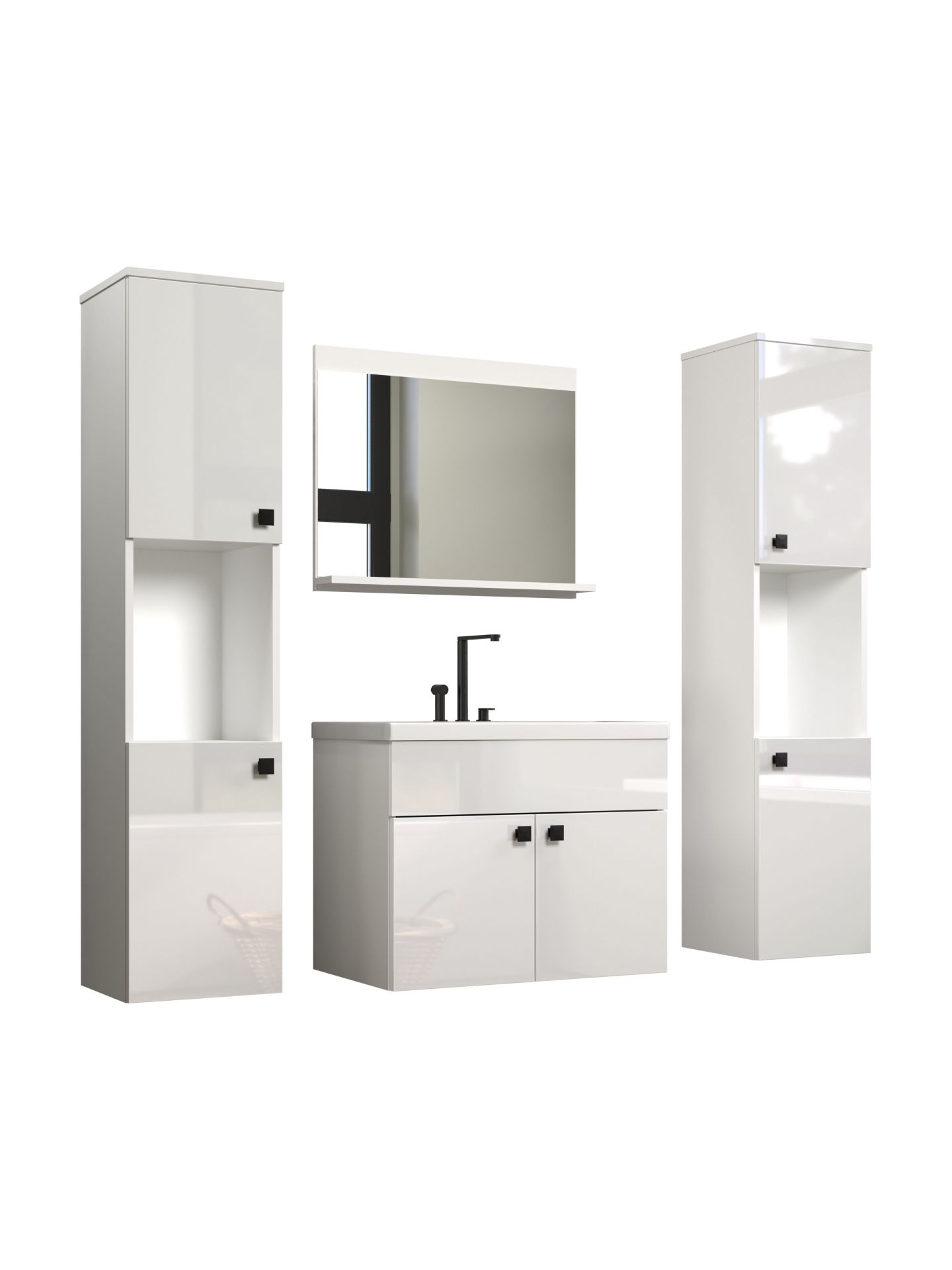Haven BD:Ko.Weiß Melamin,Fr.Weiß Hochglanz Tiefzieh,Hänge-Badset inkl. Einsatzwaschbecken