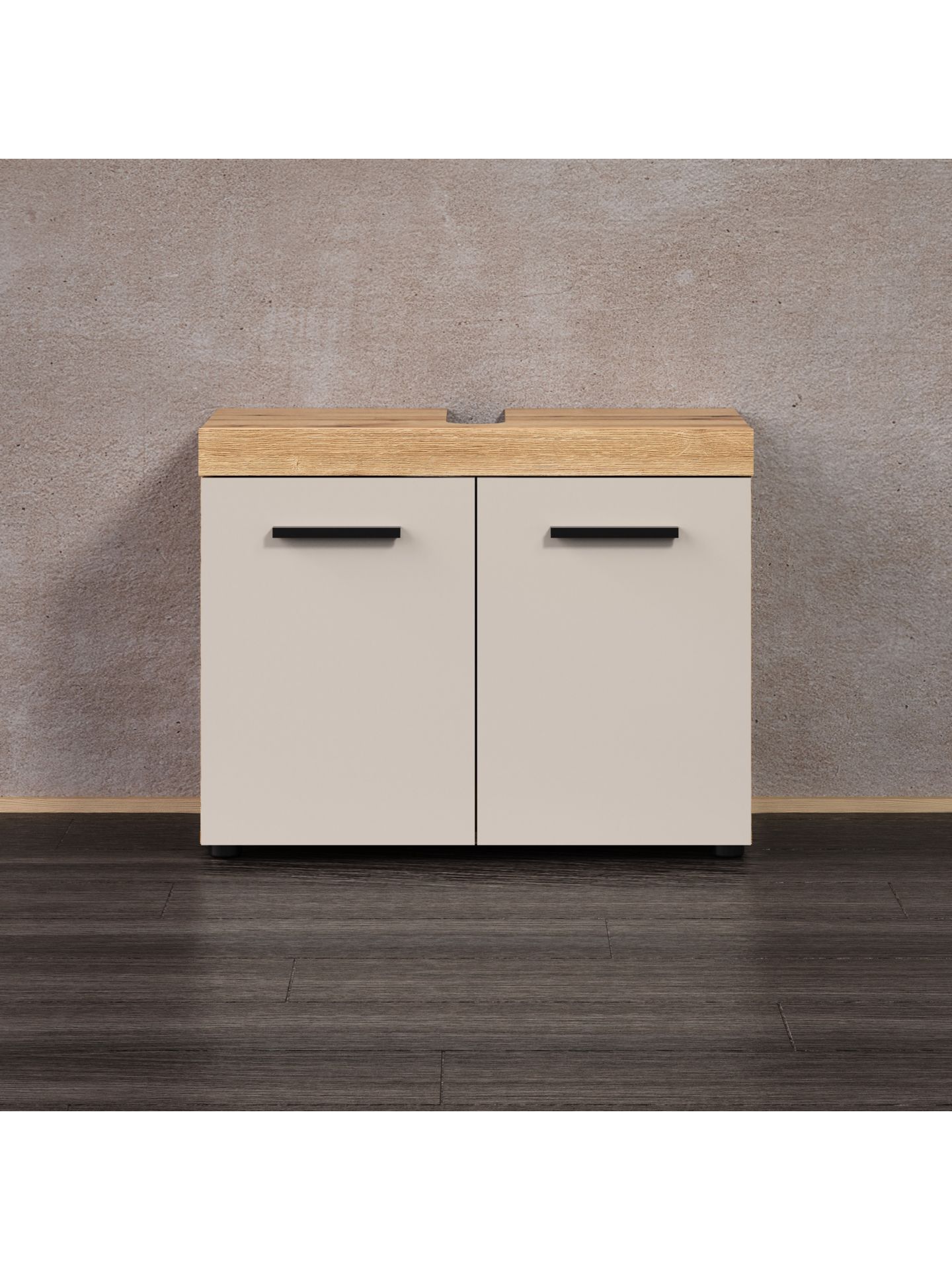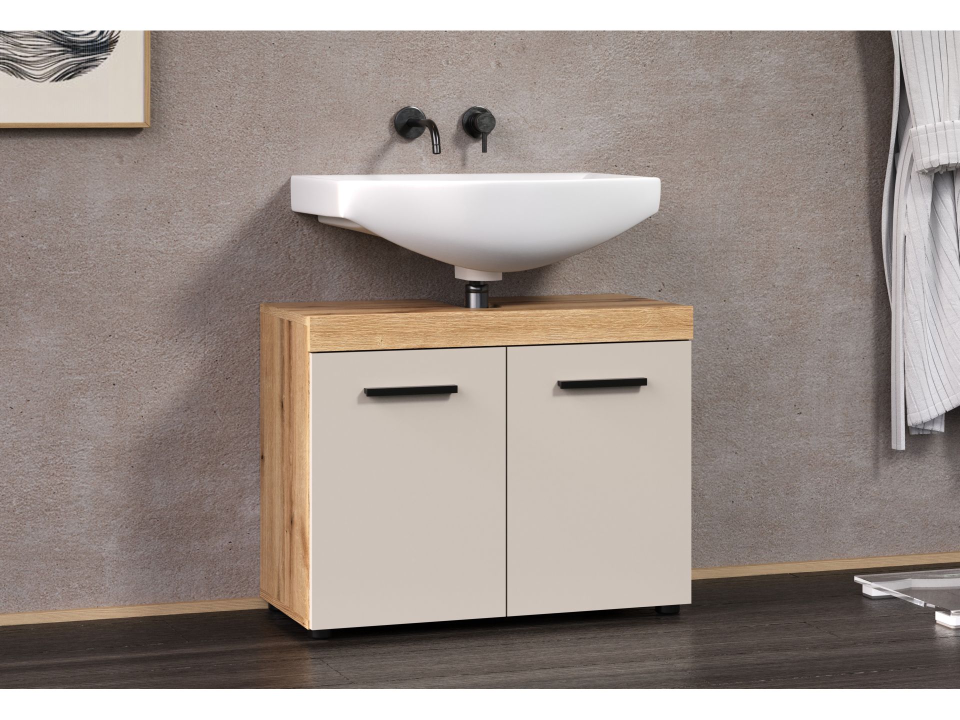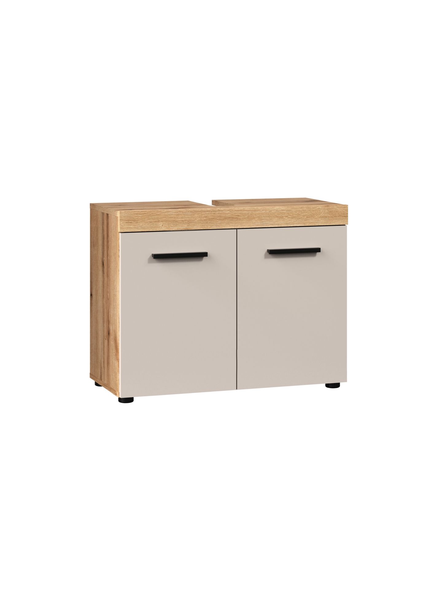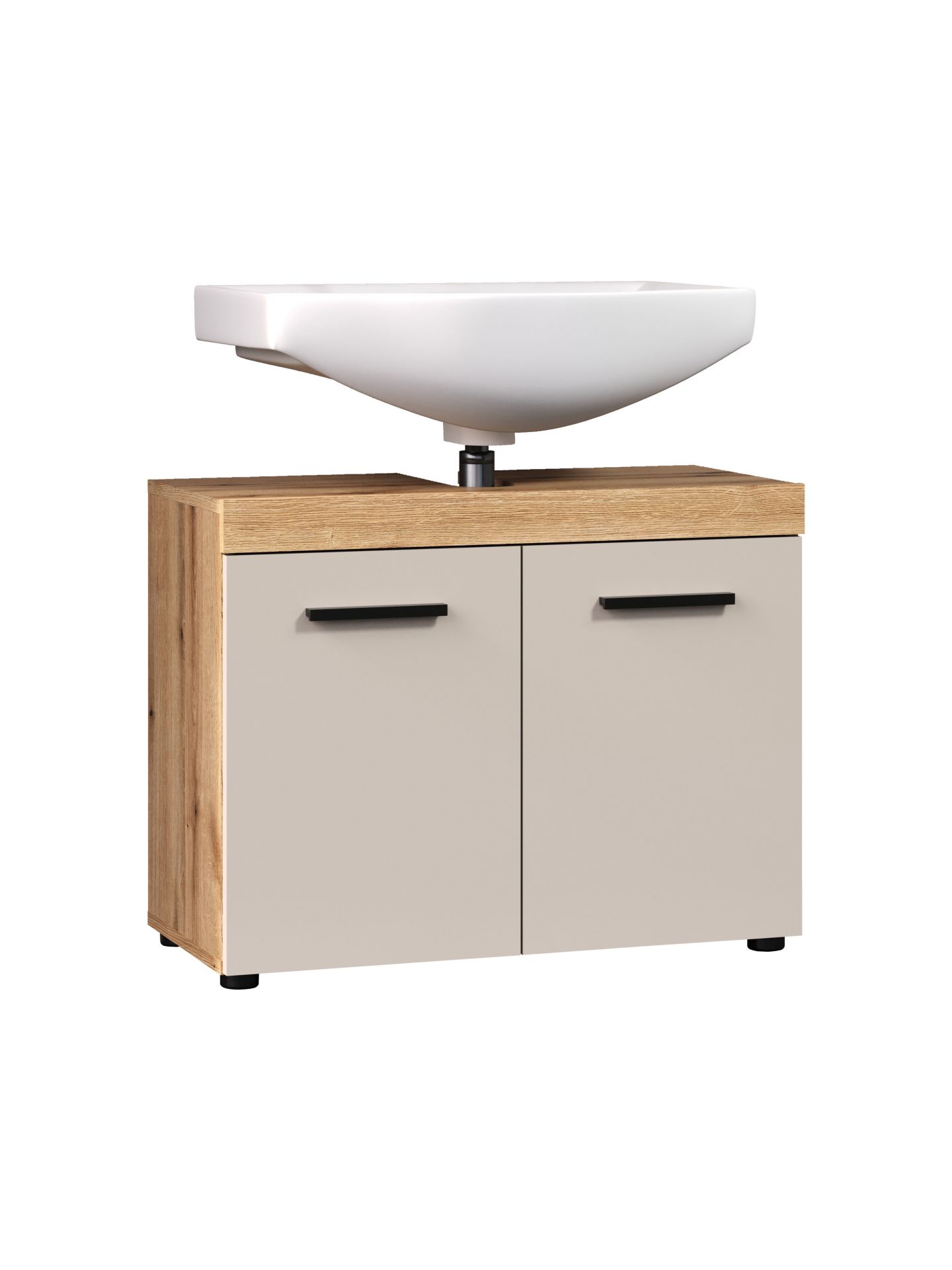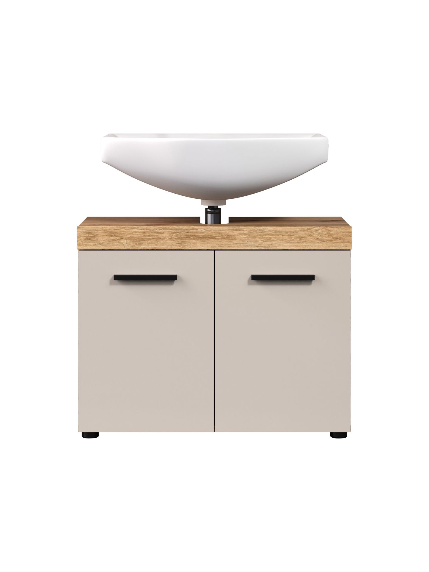 1 x: (250230130) Ivrea BD:Ko.+Fr.-Blende Evoke Oak Melamin,Fr.Kaschmir,Waschbeckenschrank