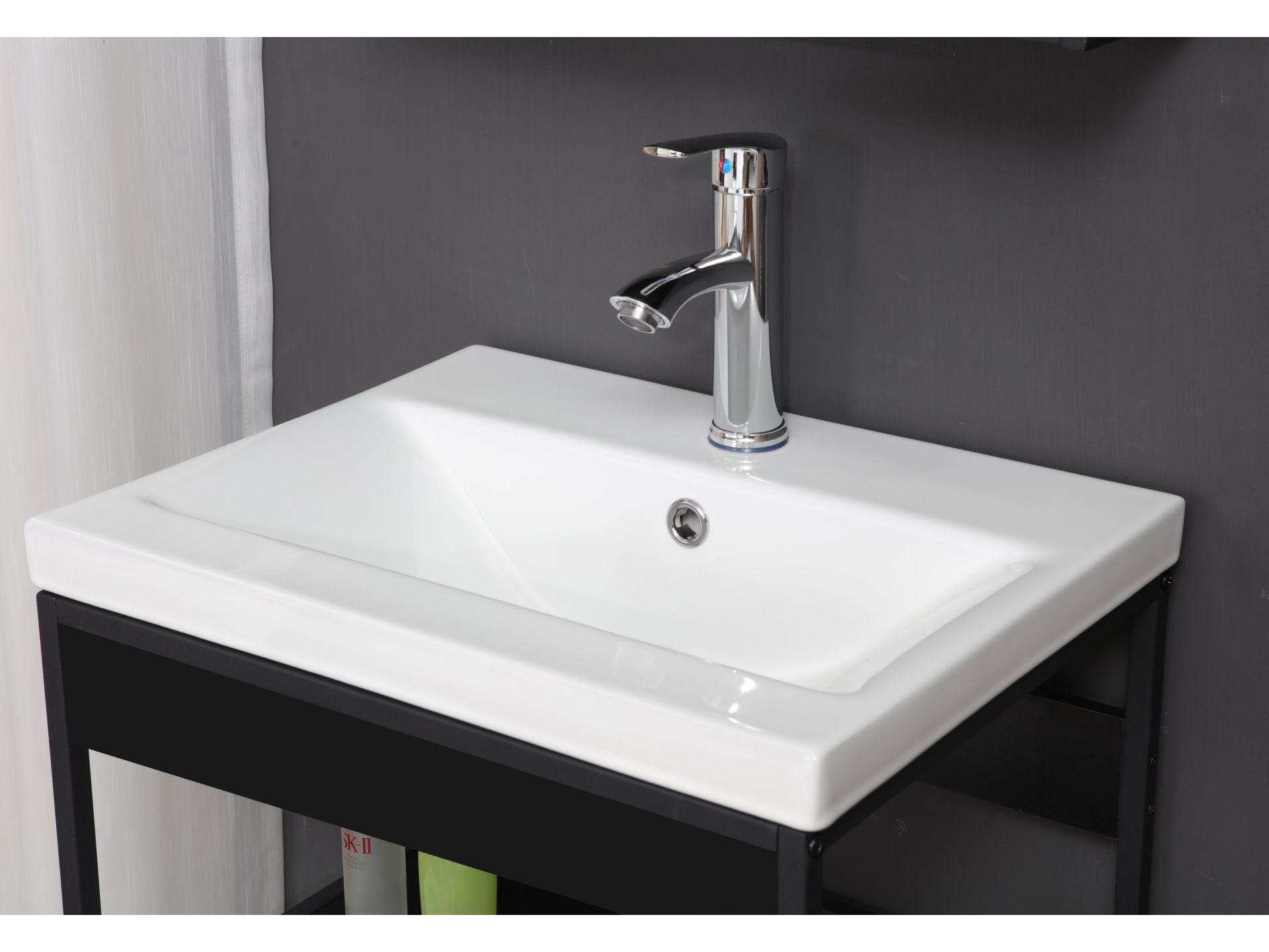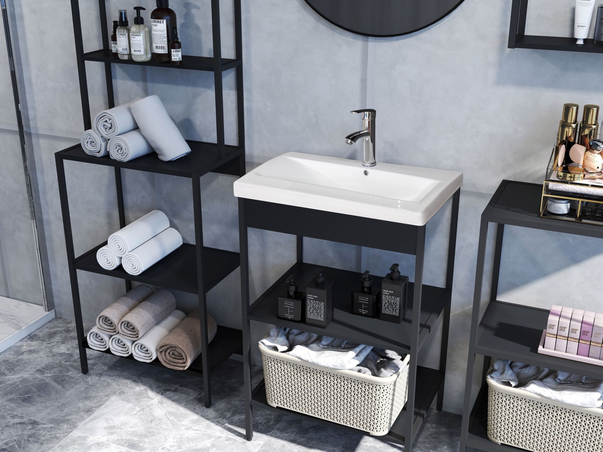 Lorin BD:Ko.Metallrahmen+Ablageboden Schwarz,Waschbeckenregal inkl.Waschbecken
