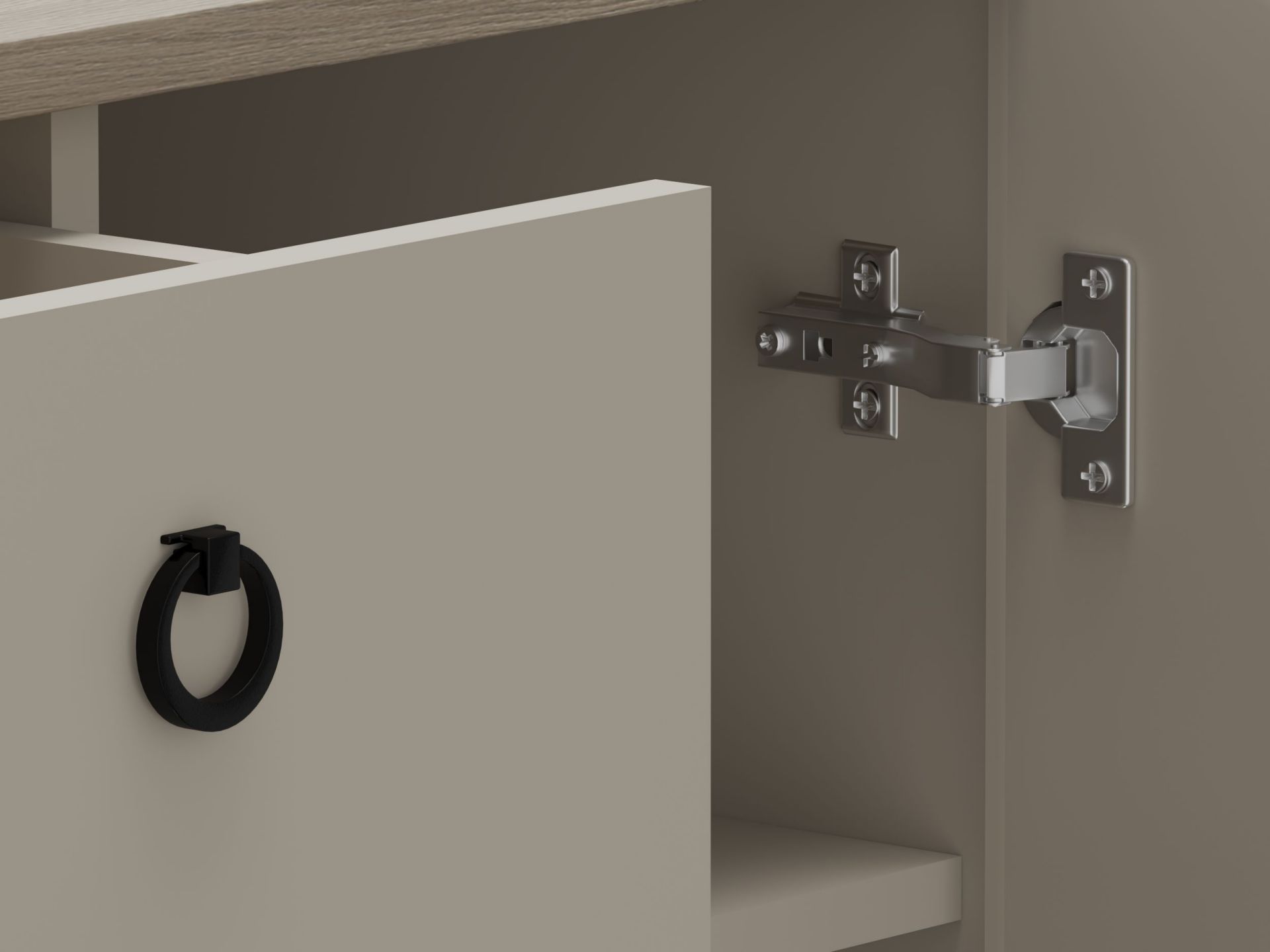 - Harmonisches Gesamtbild: Spiegel, matte Oberflächen und akzentuierte Griffe im Türklopferlook runden das Design ab und schaffen ein durchgängiges, elegantes Erscheinungsbild.