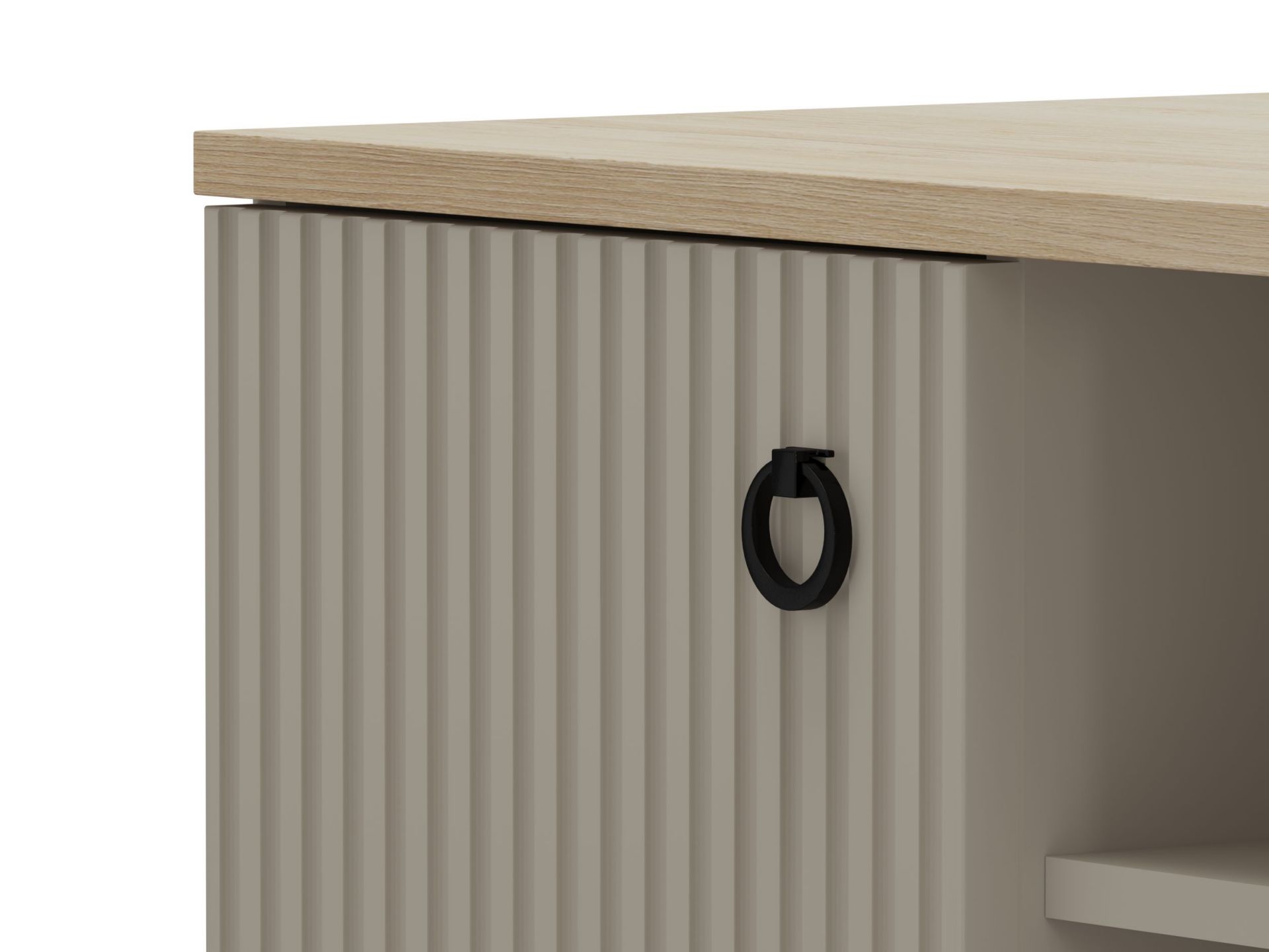 - Markante Rillenoptik: Die feine vertikale Fräsung auf den Fronten erzeugt eine elegante Textur und verleiht jedem Element eine besondere Tiefe - subtil, aber wirkungsvoll.