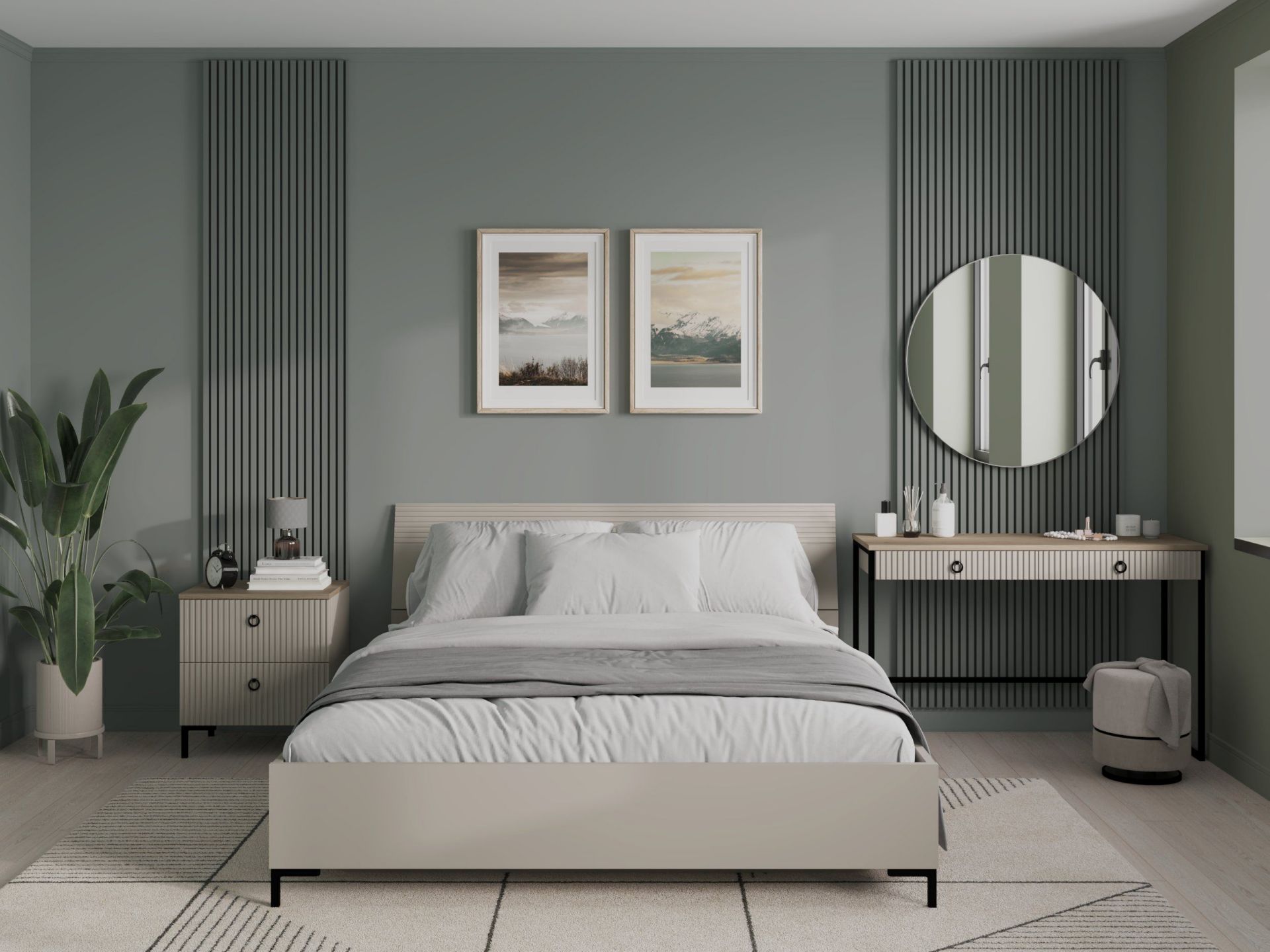 - Harmonisches Gesamtbild: Spiegel, matte Oberflächen und akzentuierte Griffe im Türklopferlook runden das Design ab und schaffen ein durchgängiges, elegantes Erscheinungsbild.