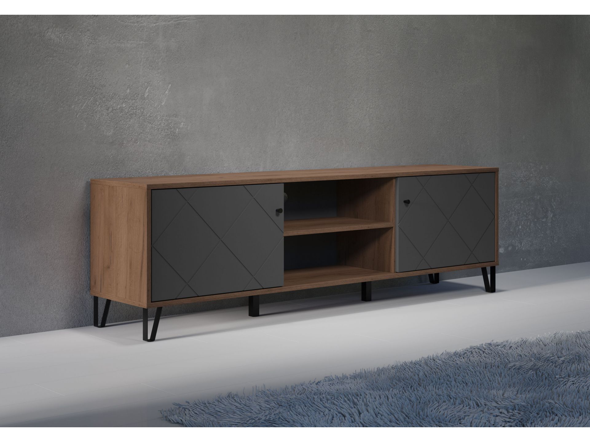 1 x: (2102321C4) Montez Wohnen:Ko.Eiche Kraft Melamin,Fr.Graphit Tiefzieh,TV-Unterteil
