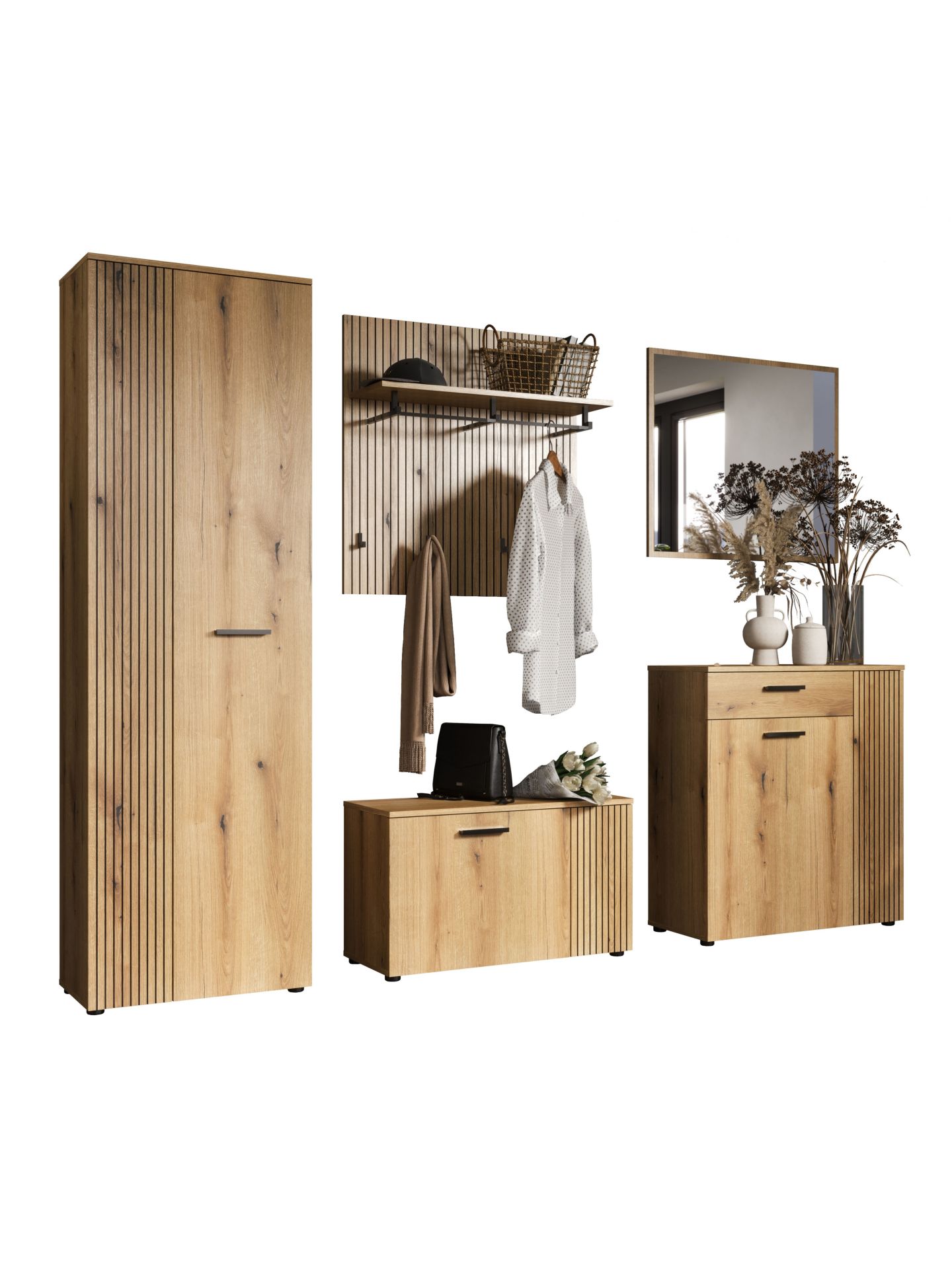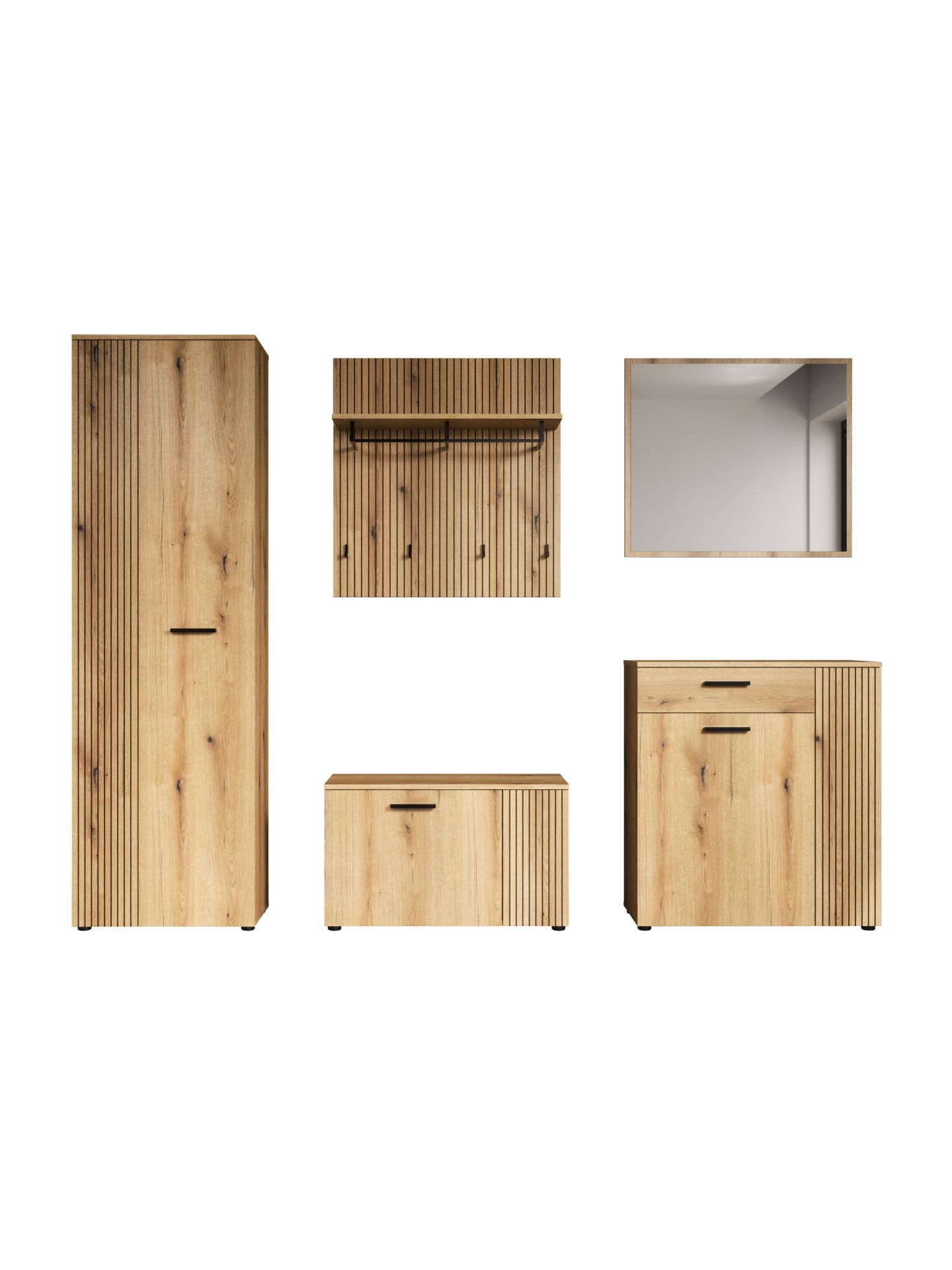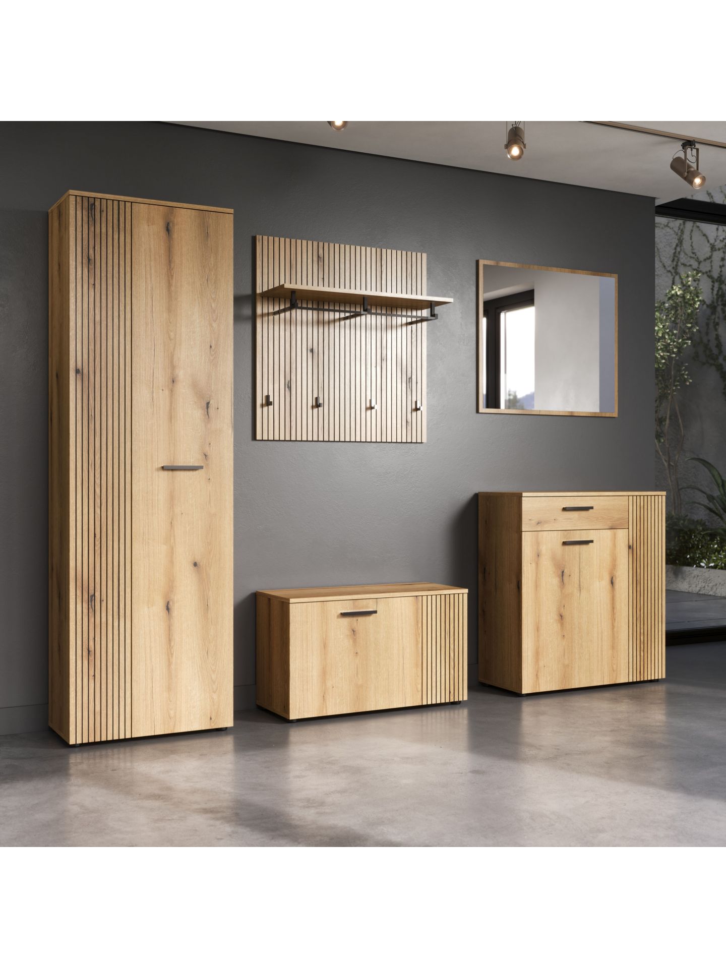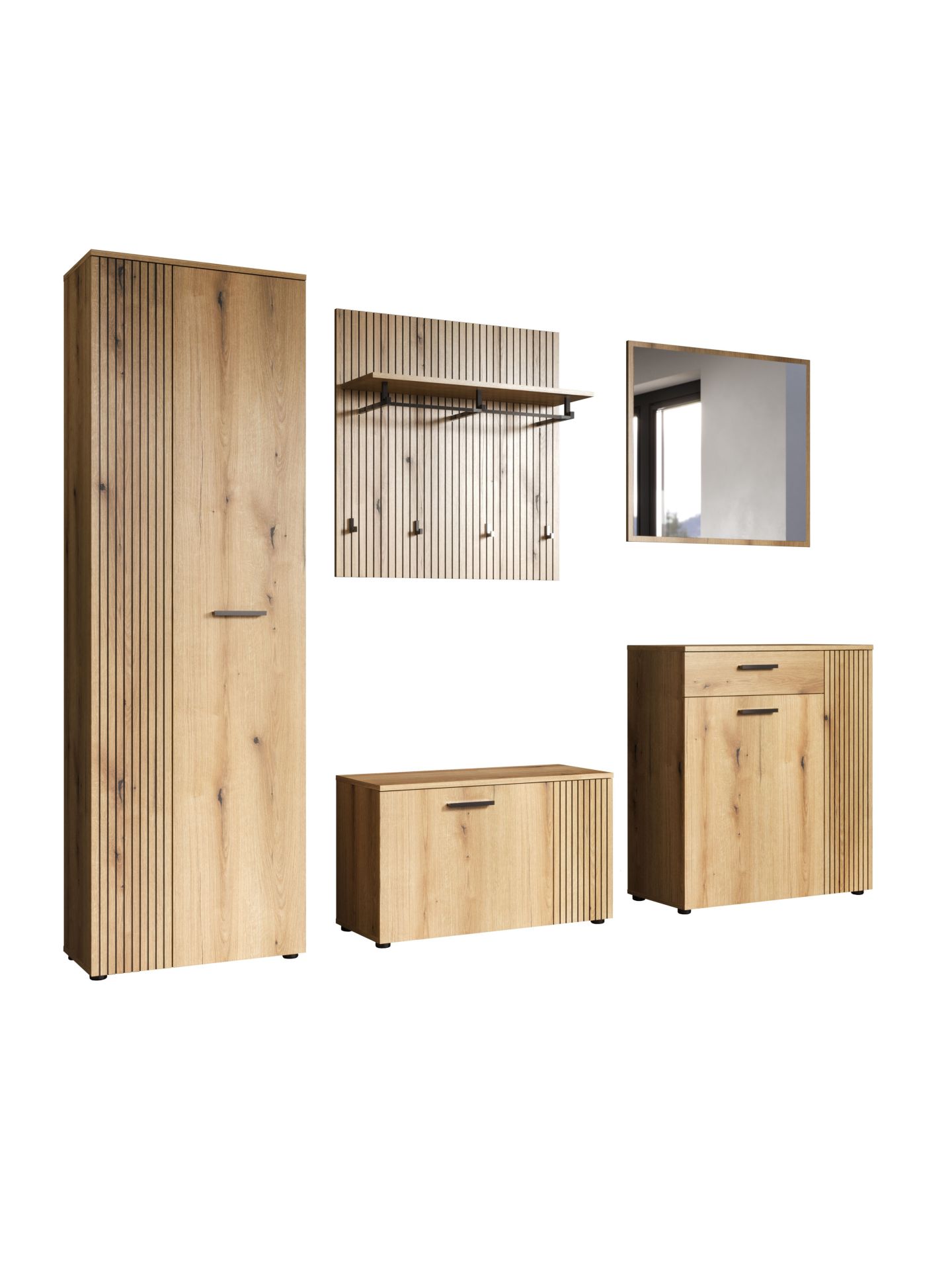 „PureBliss“ 5-tlg. Garderoben-Set in Evoke Eiche/Schwarze Rillen