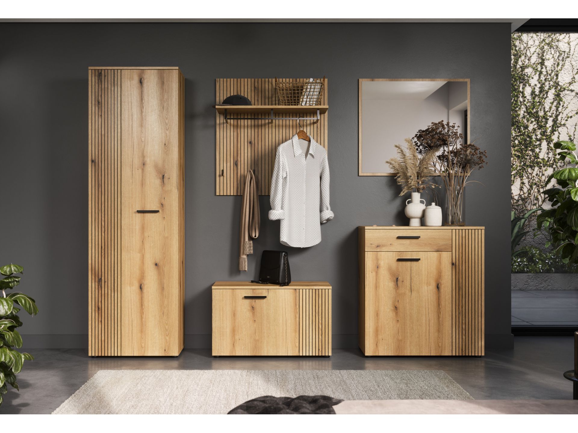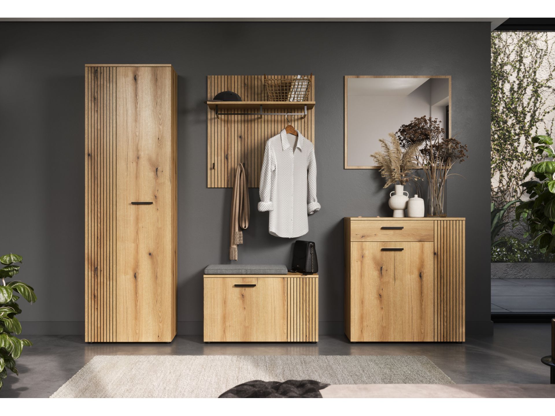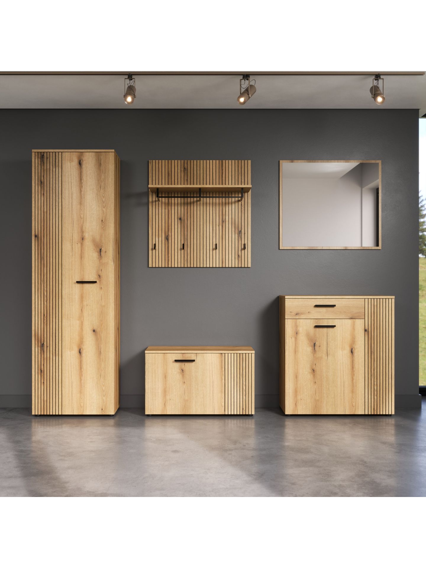 „PureBliss“ 5-tlg. Garderoben-Set in Evoke Eiche/Schwarze Rillen