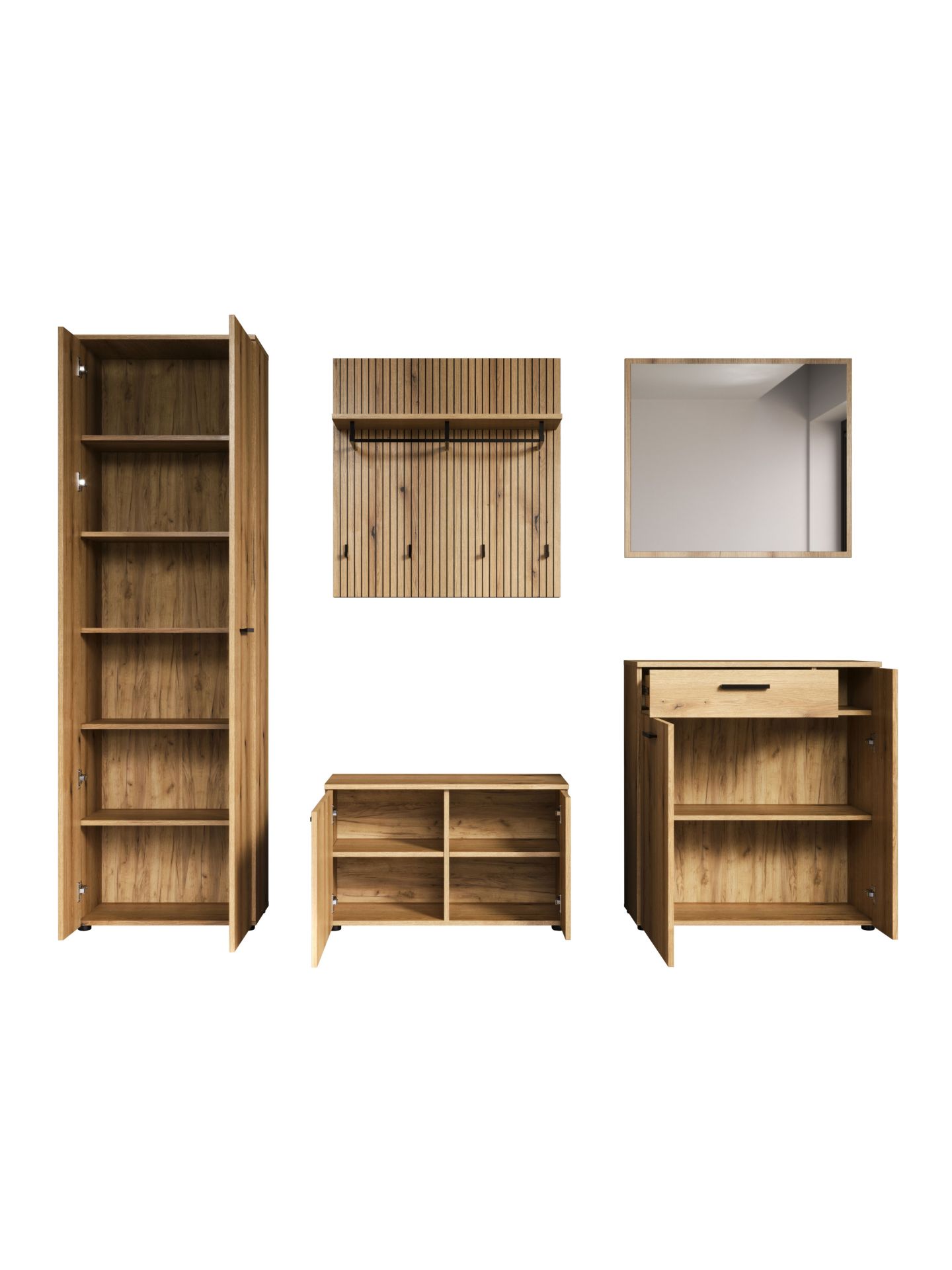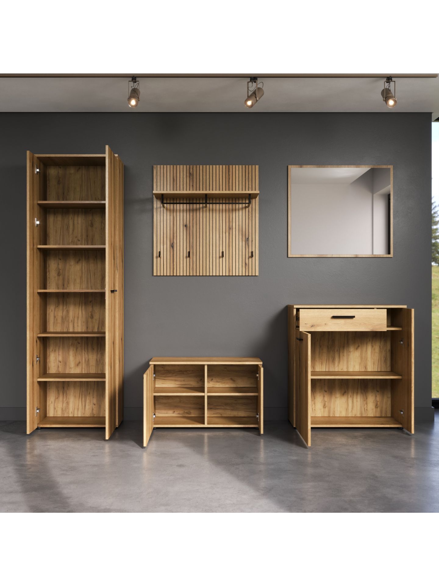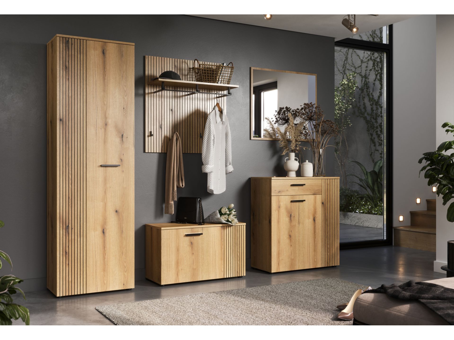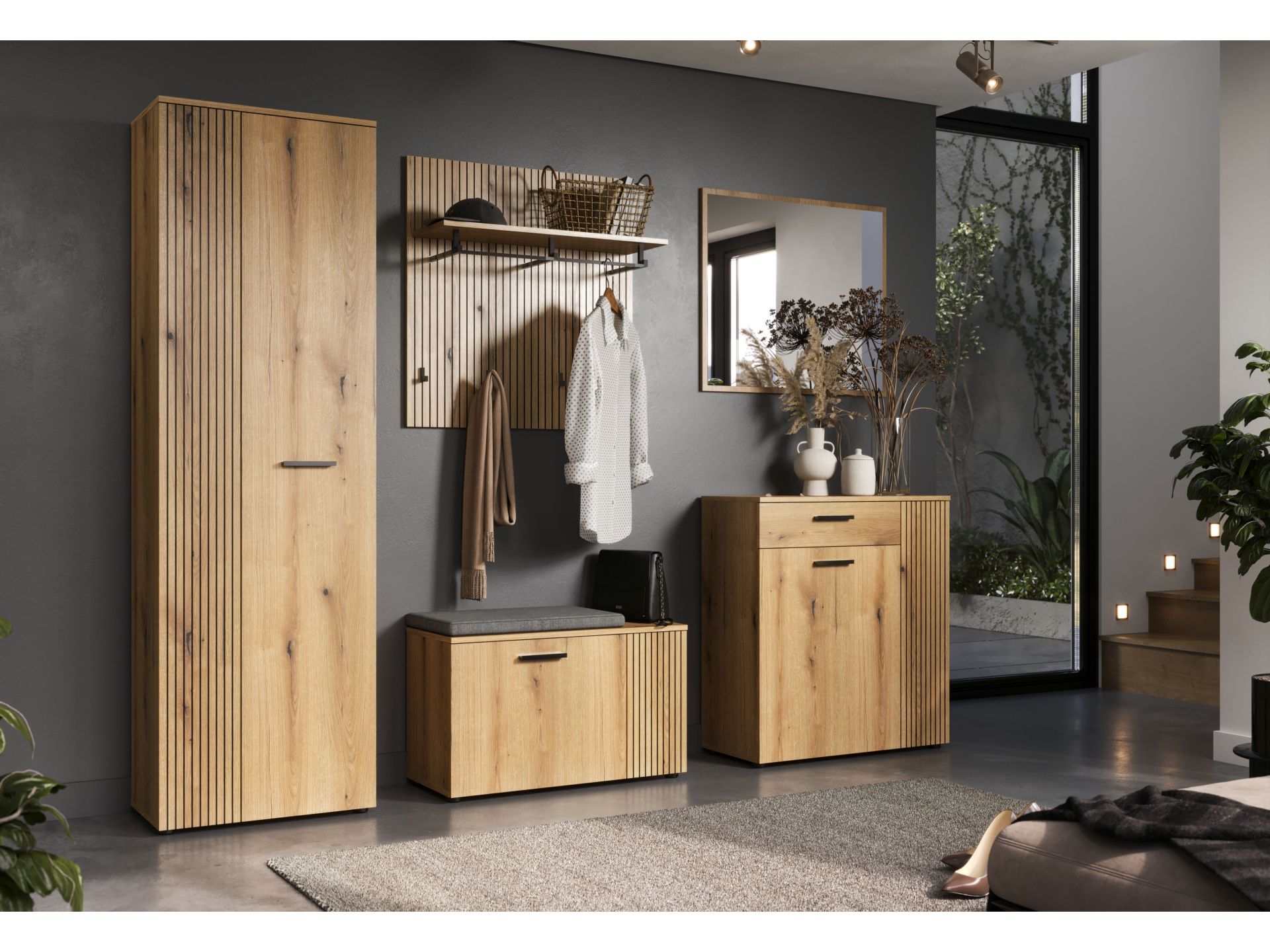 „PureBliss“ 5-tlg. Garderoben-Set in Evoke Eiche/Schwarze Rillen
