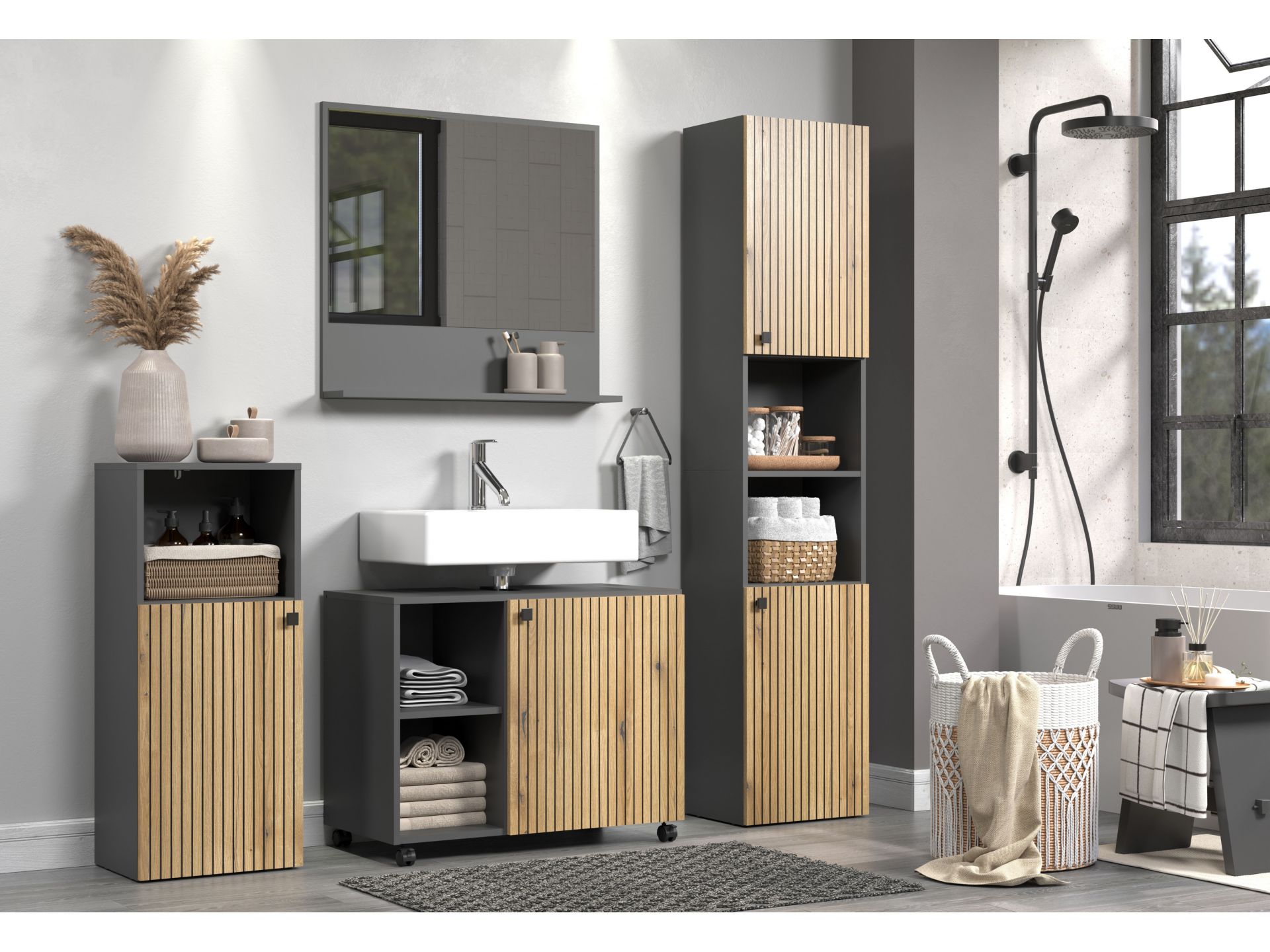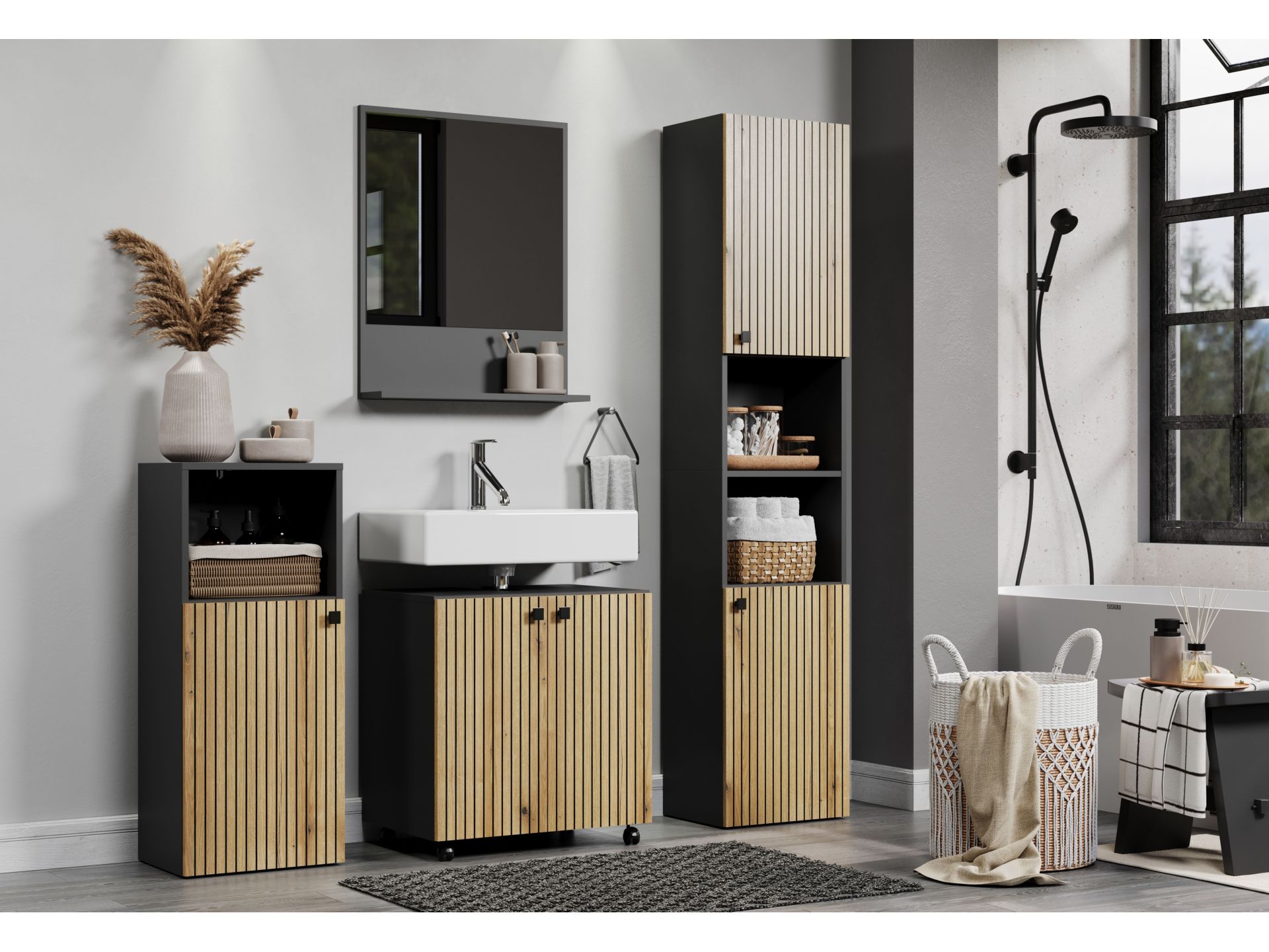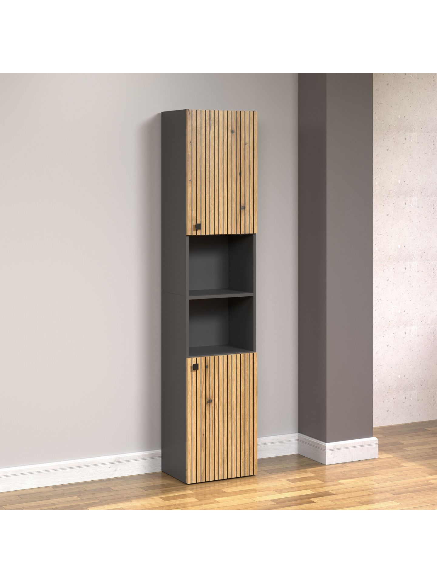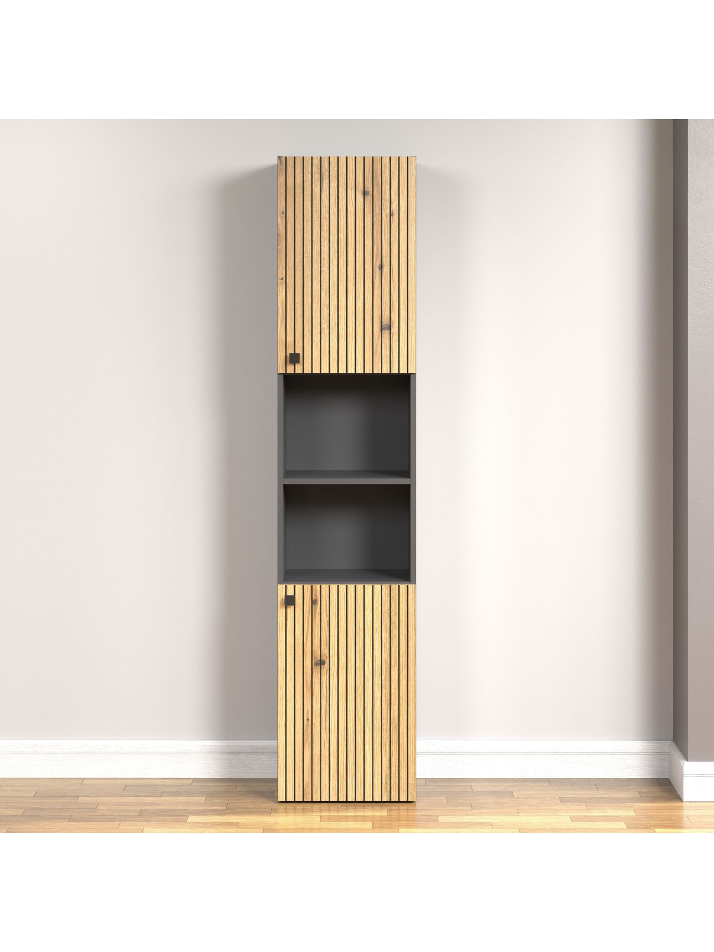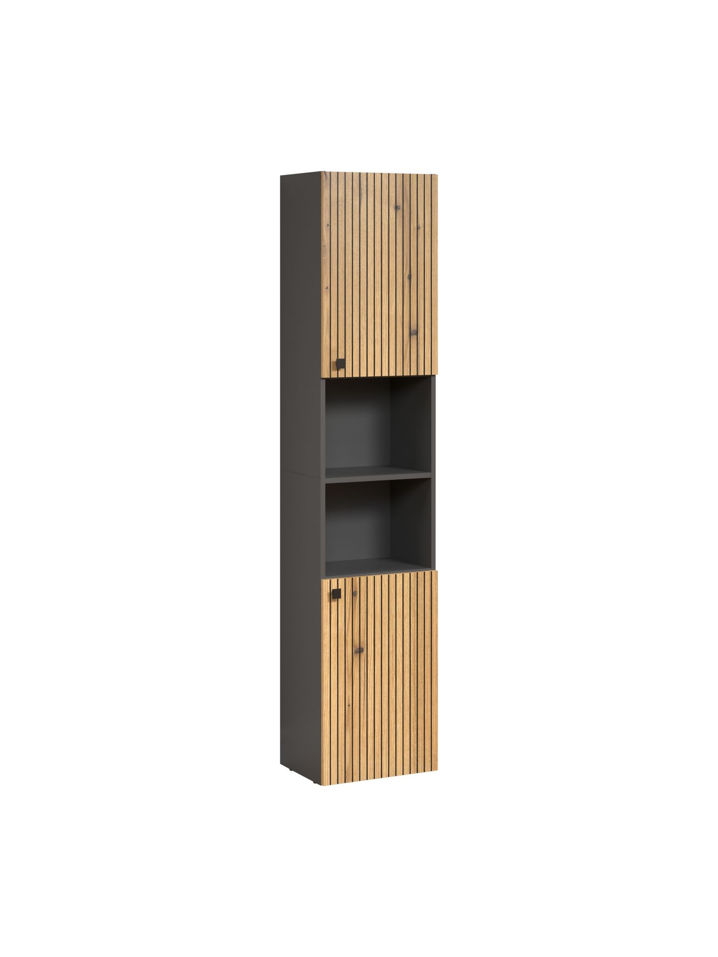 PureBliss Hochschrank Anthrazit Evoke Eiche Schwarze Rillen B/H/T: 40 / 186 / 31 cm