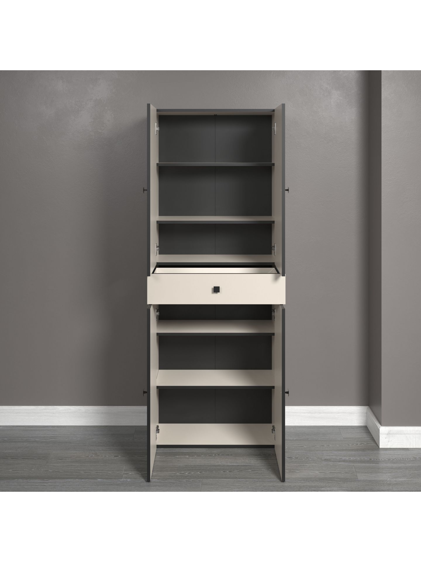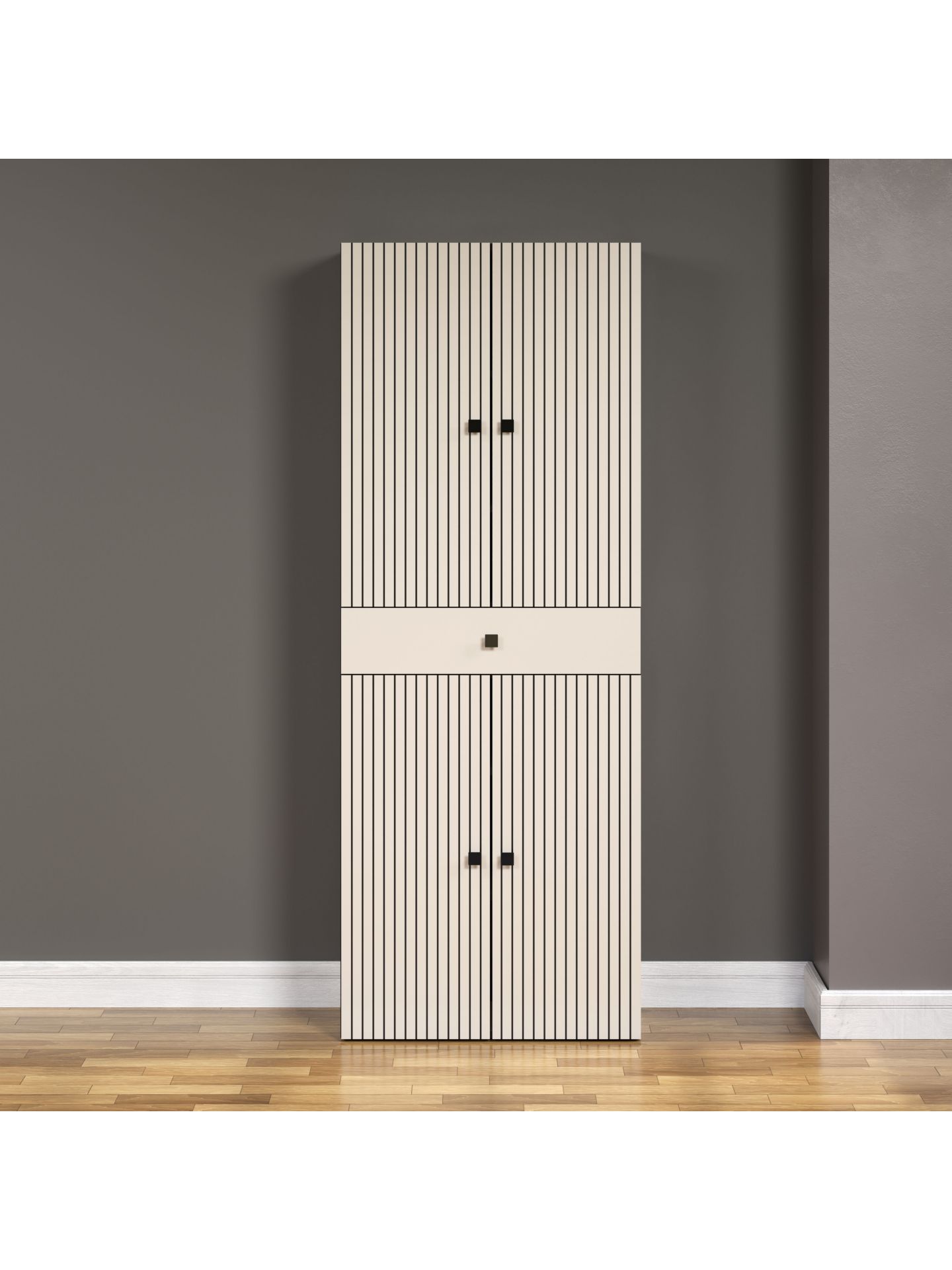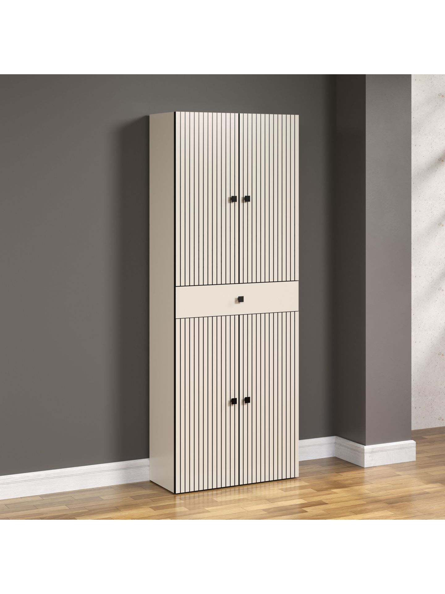 PureBliss Hochschrank Kashmir Hellgrau Rückwand Schwarz Dekor,Schwarze Rillen B/H/T: 70 / 186 / 31