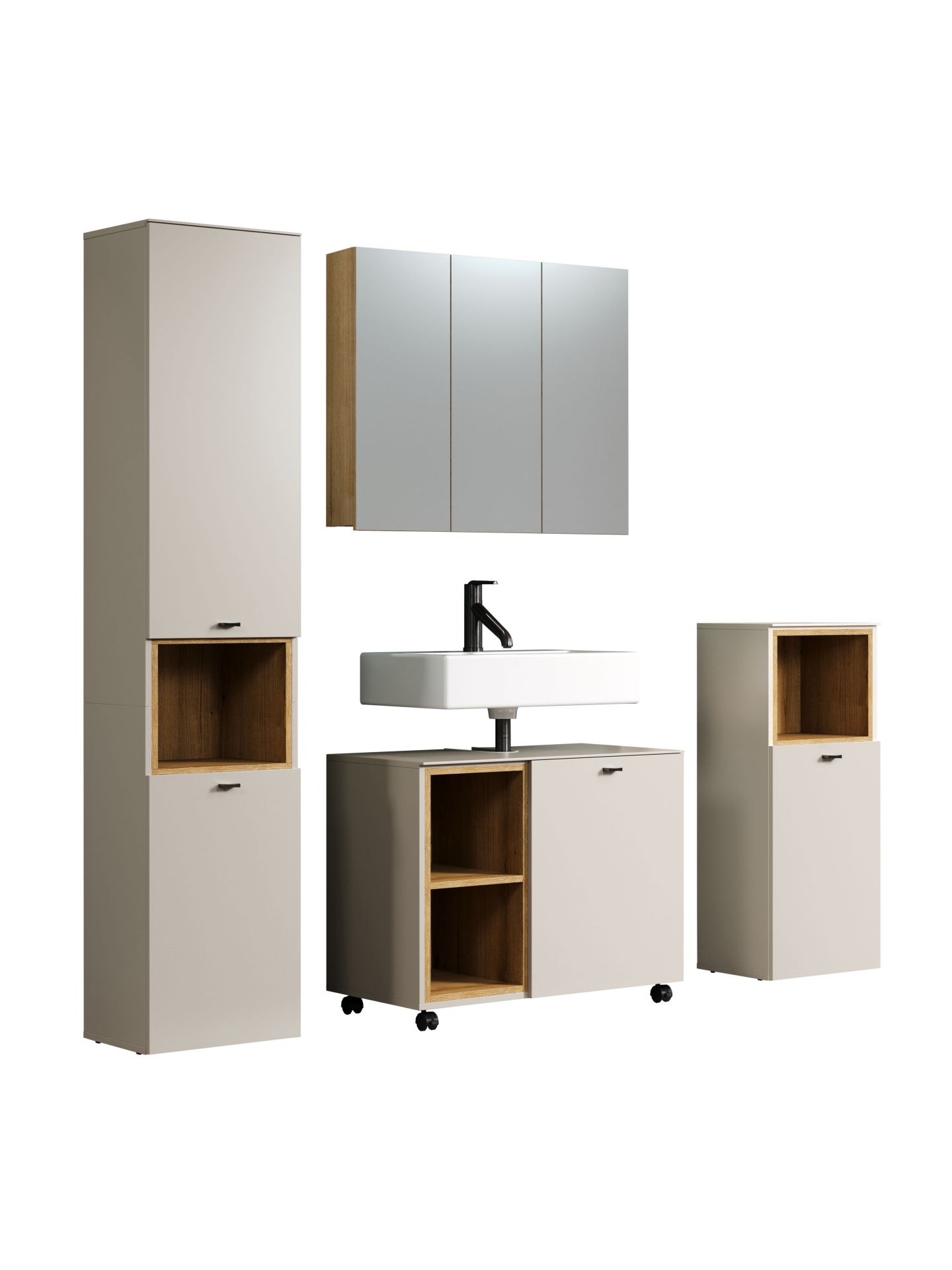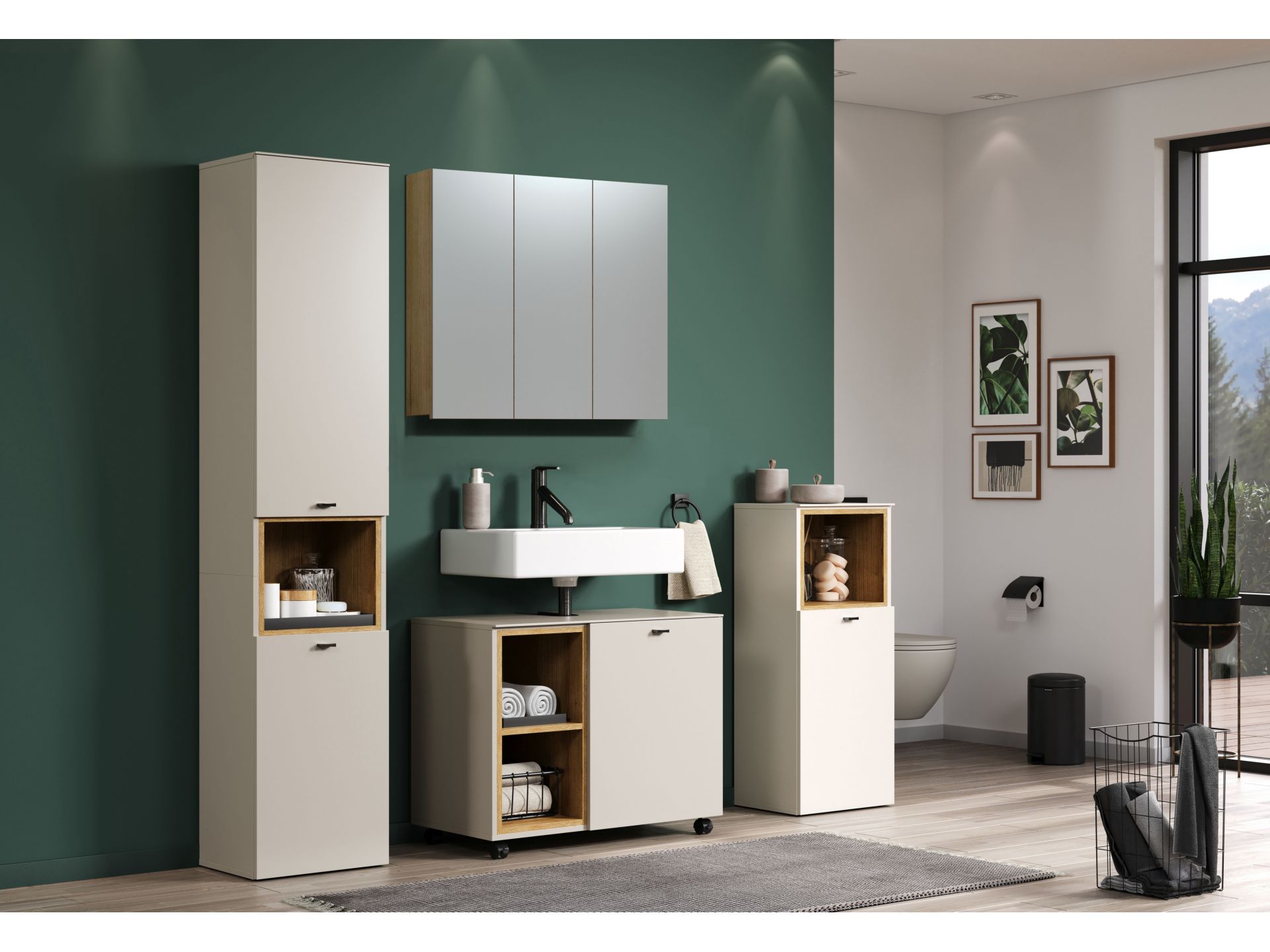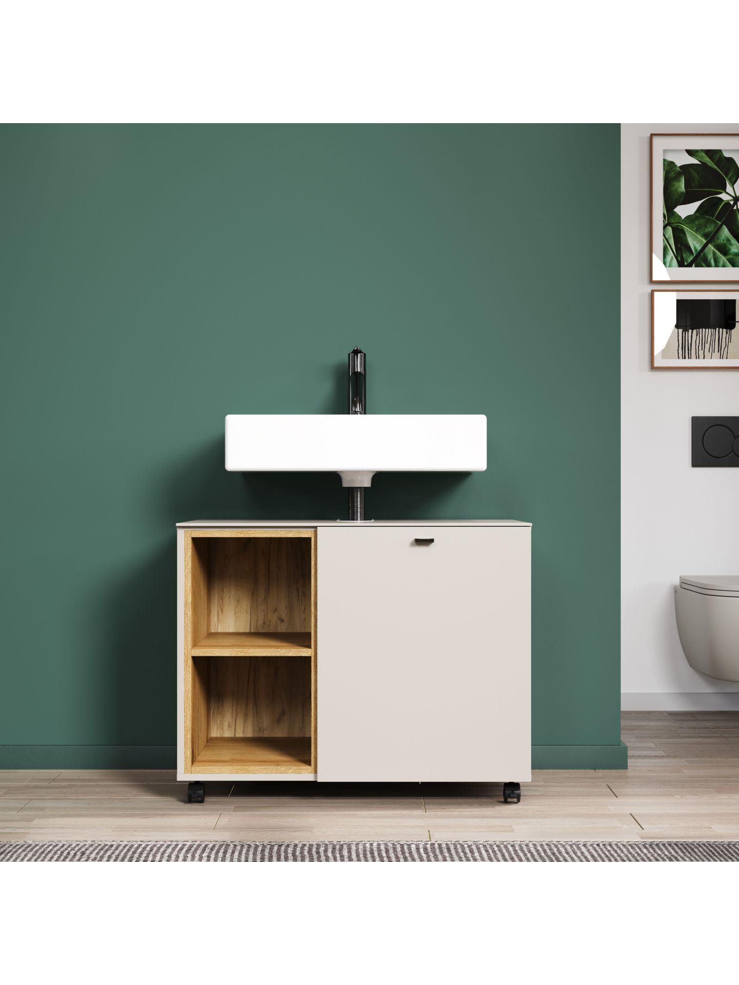 1 x: (243930143) Sao Paulo BD:Ko.+Fr.Kaschmir Melamin,Abs.Ko.Evoke Oak Nachbildung,Waschbeckenunterschrank auf Rollen