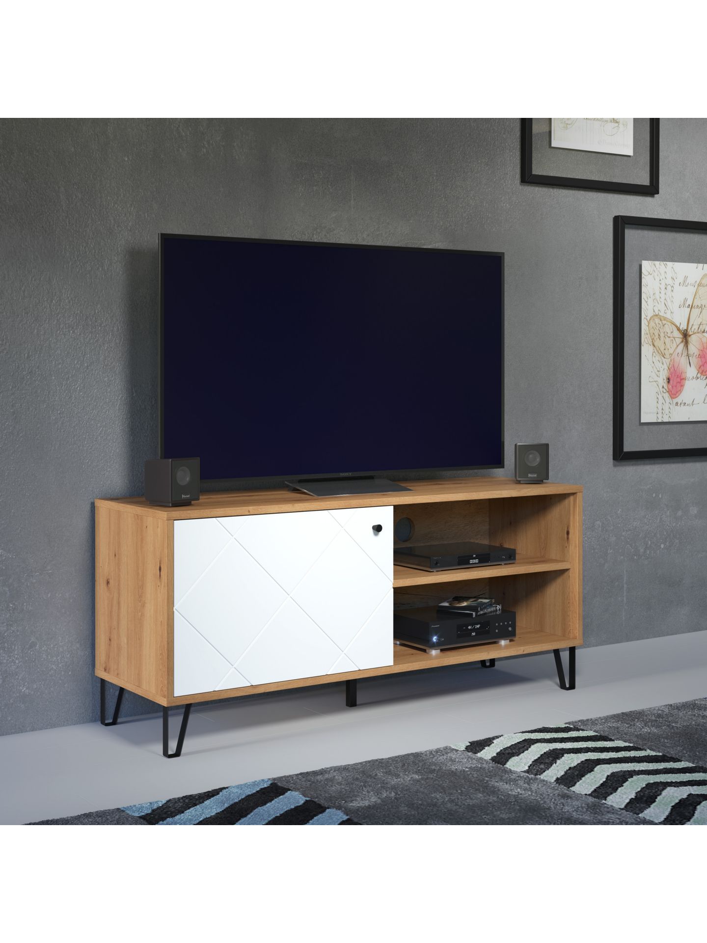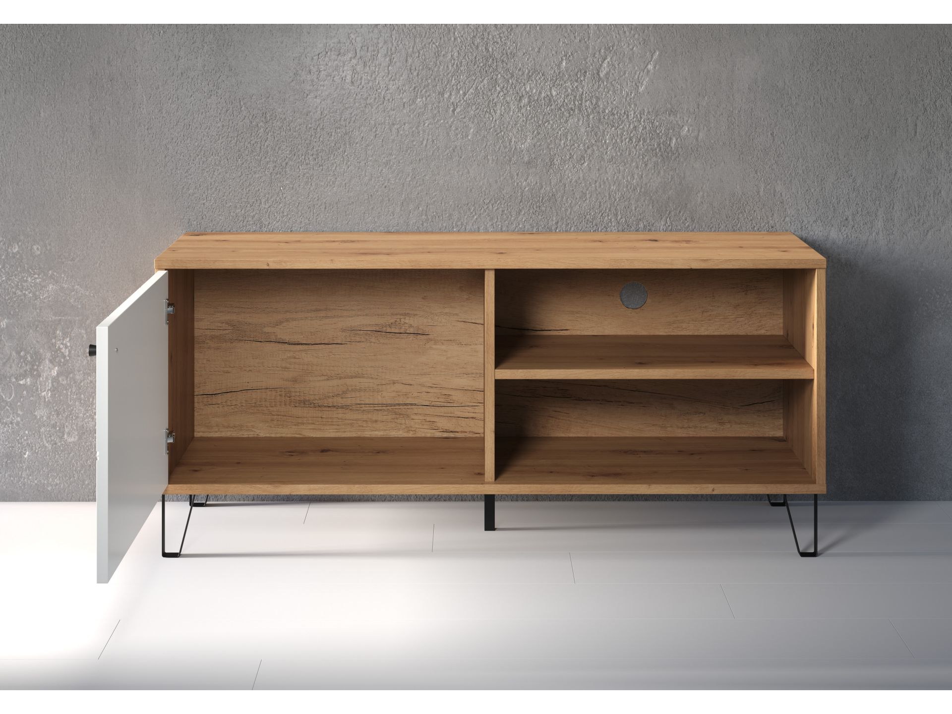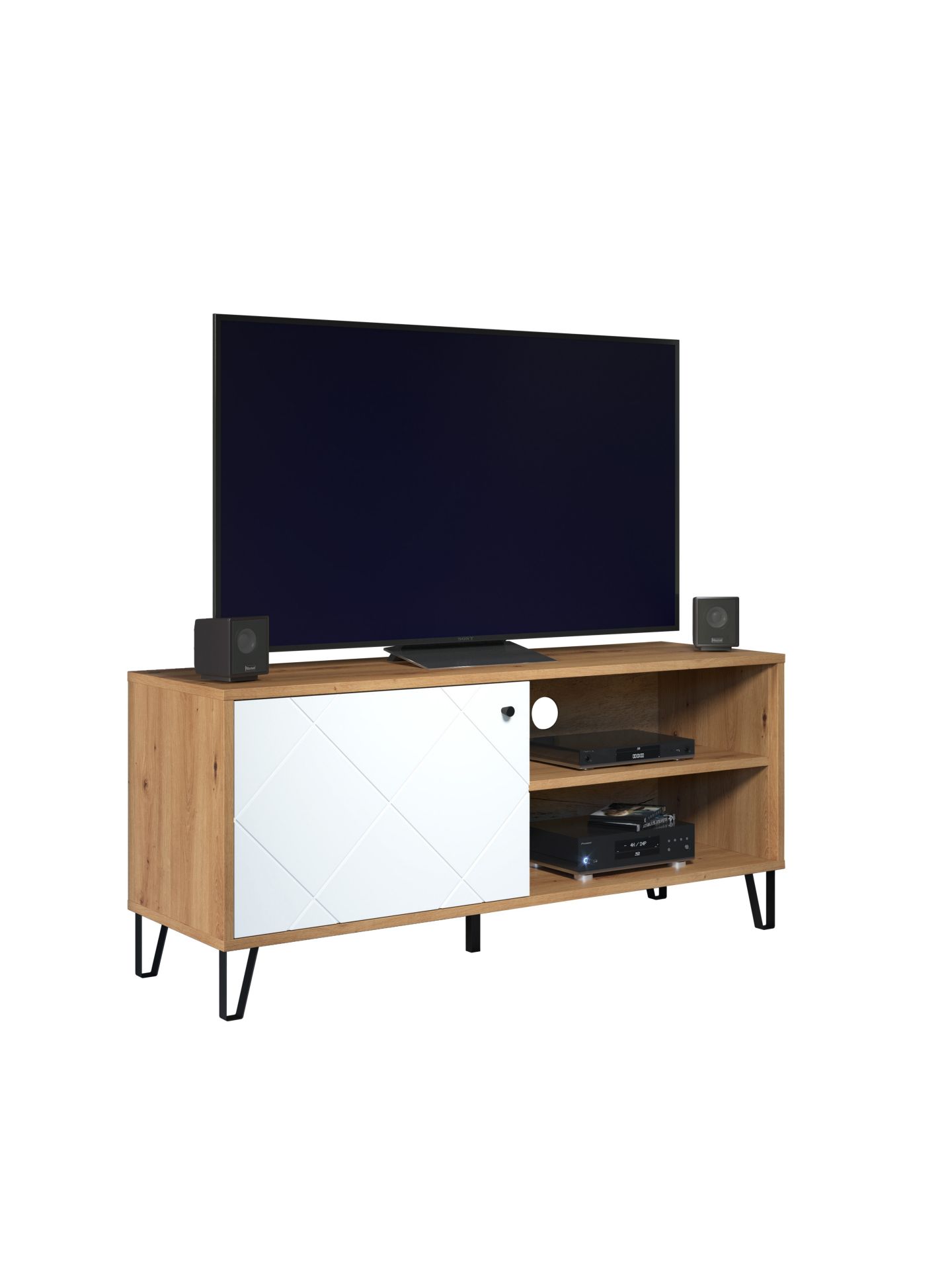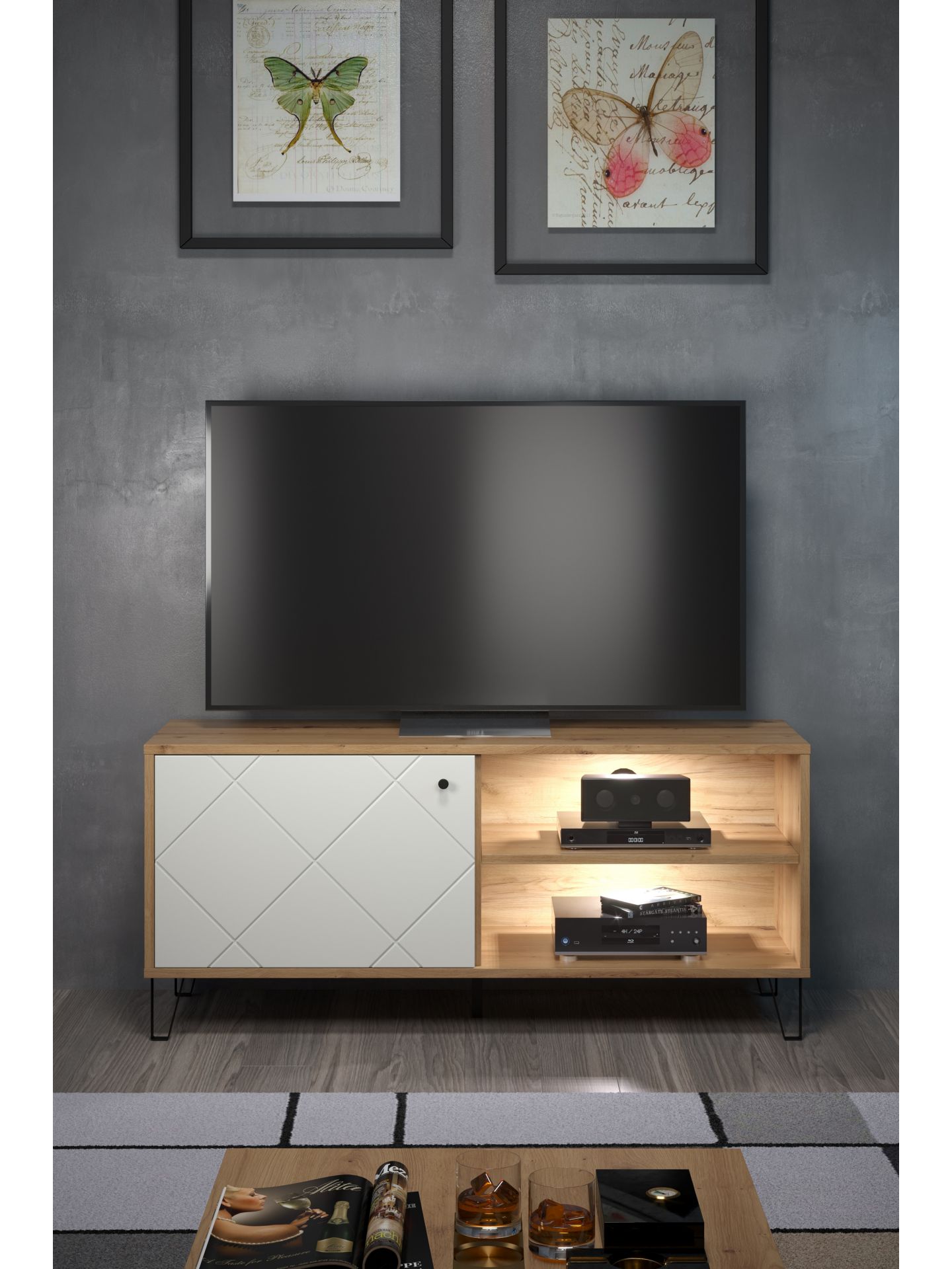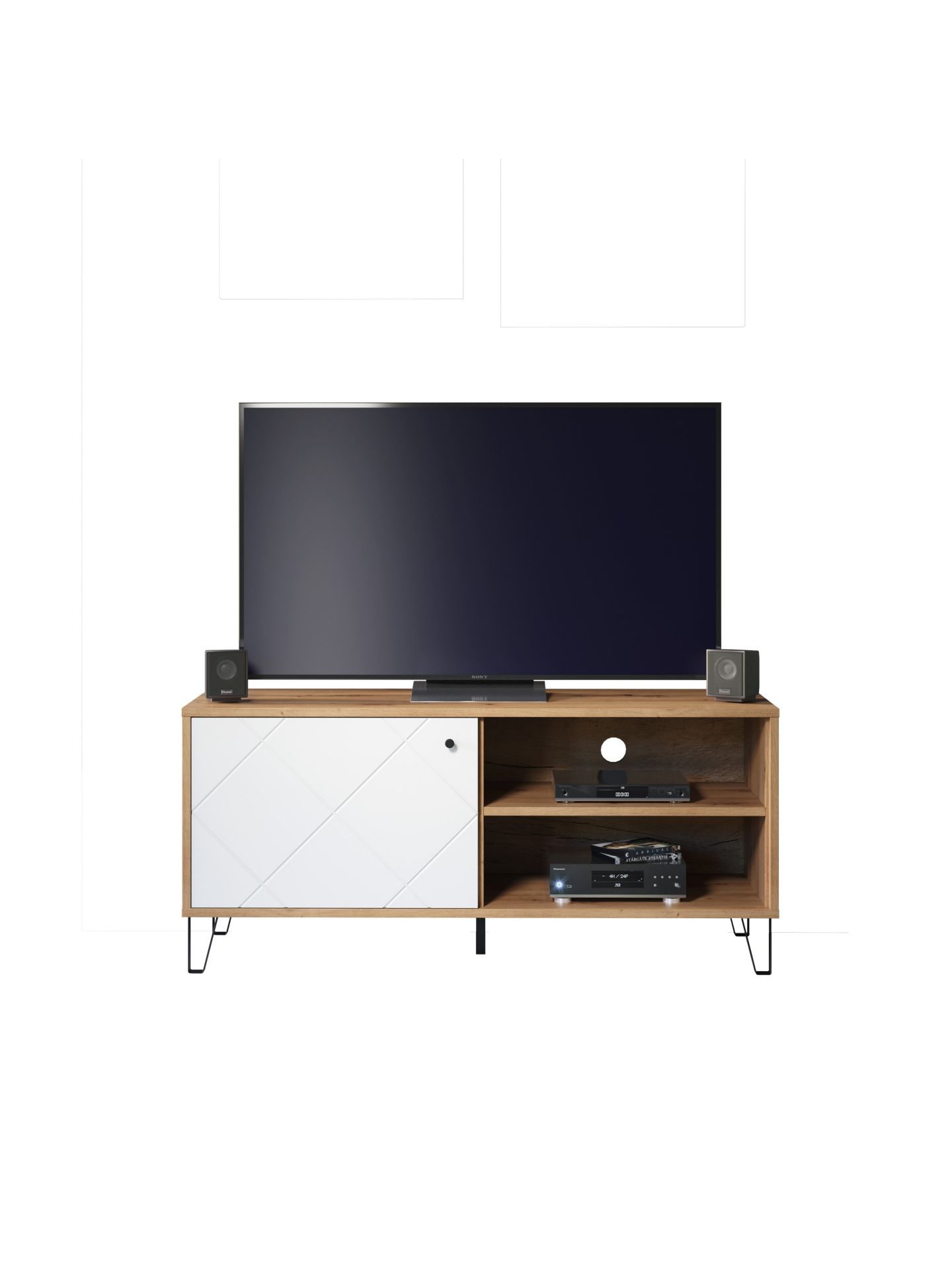 1 x: (210232007) Touch Wohnen:Ko.Artisan Eiche Melamin,Fr.Weiß Matt Tiefzieh,TV-Unterteil
