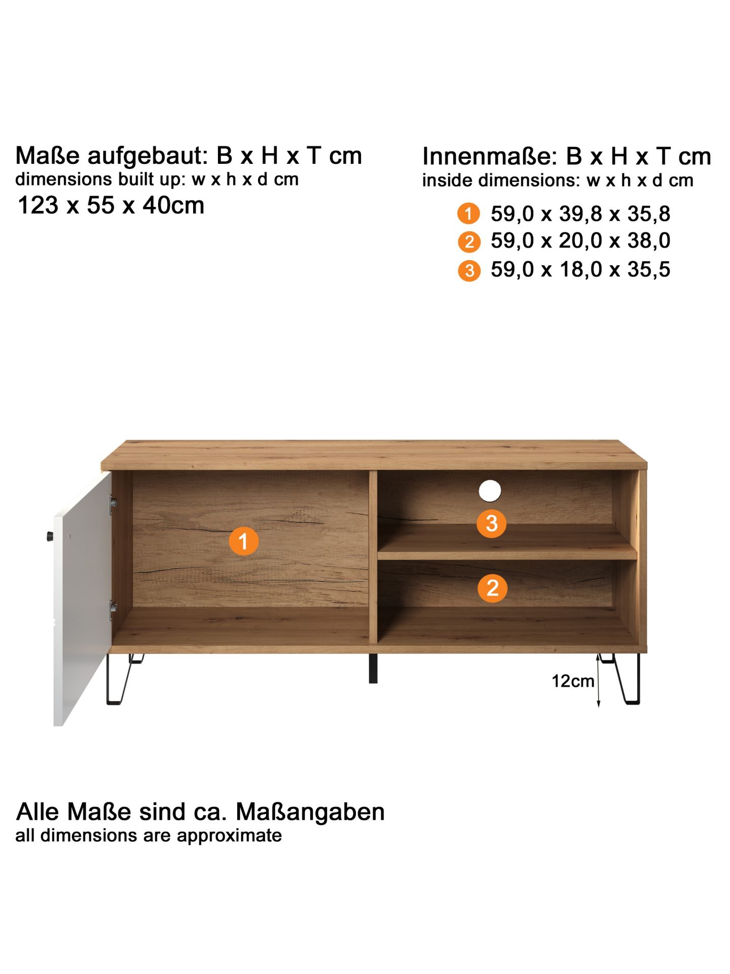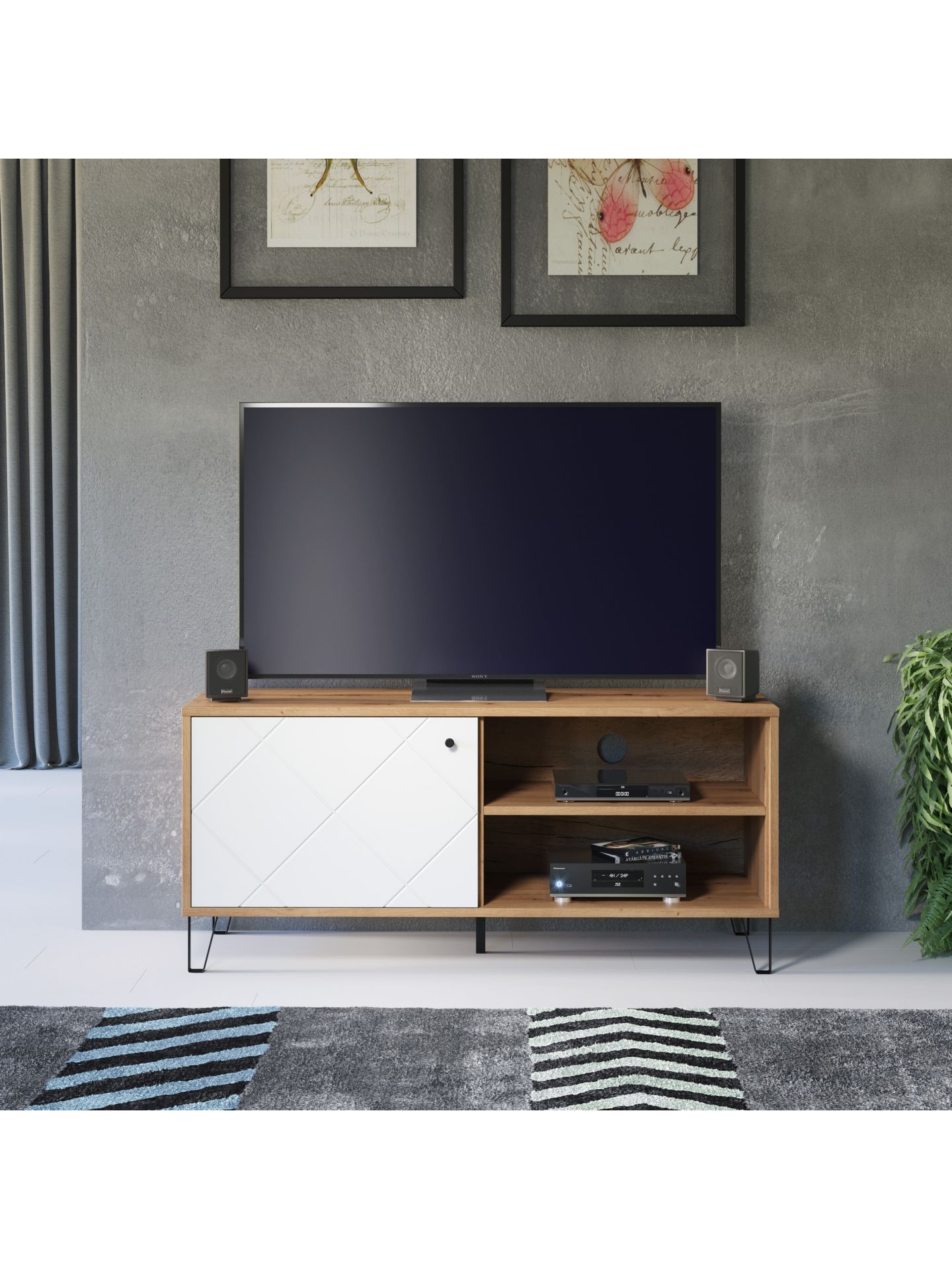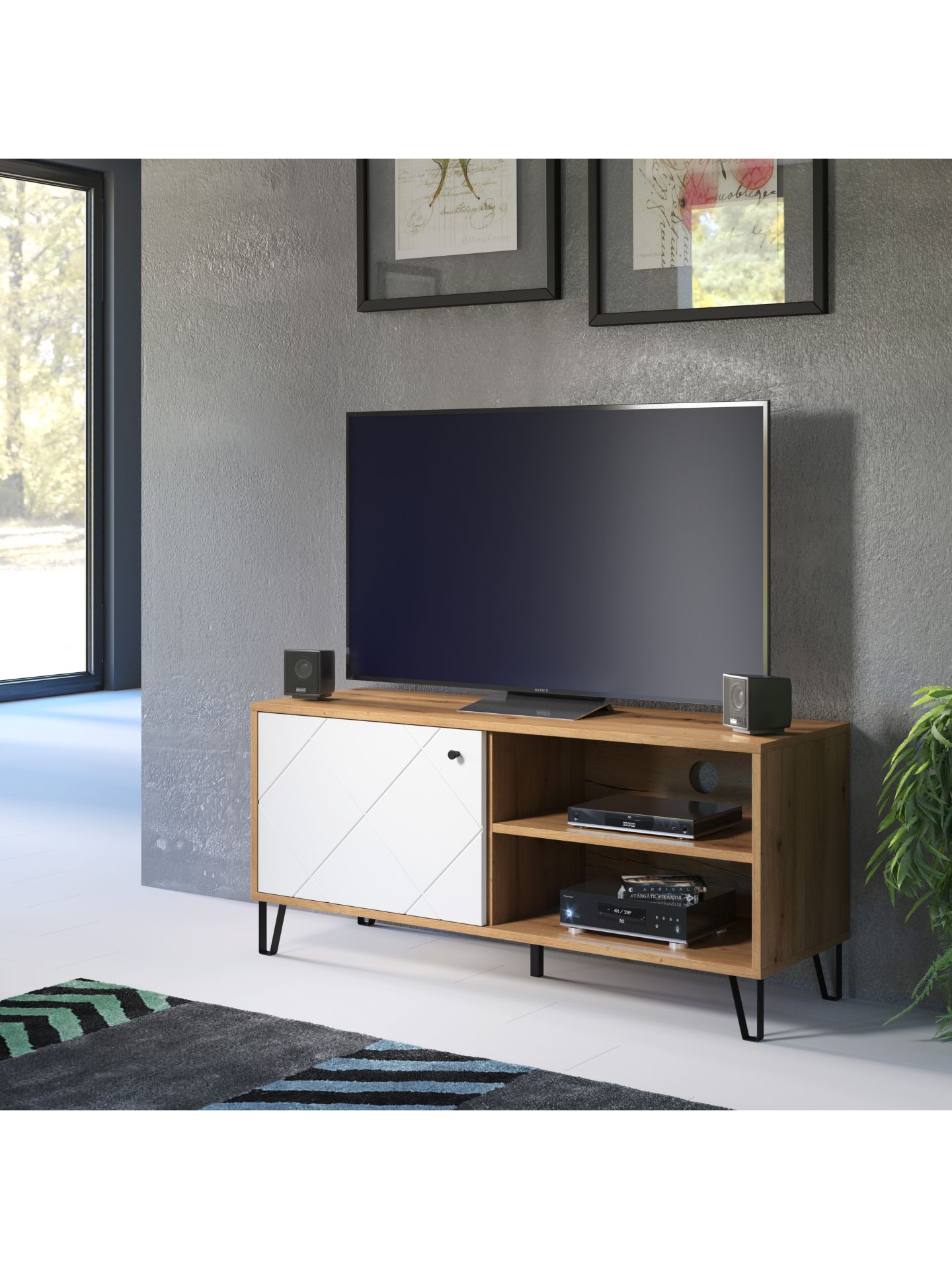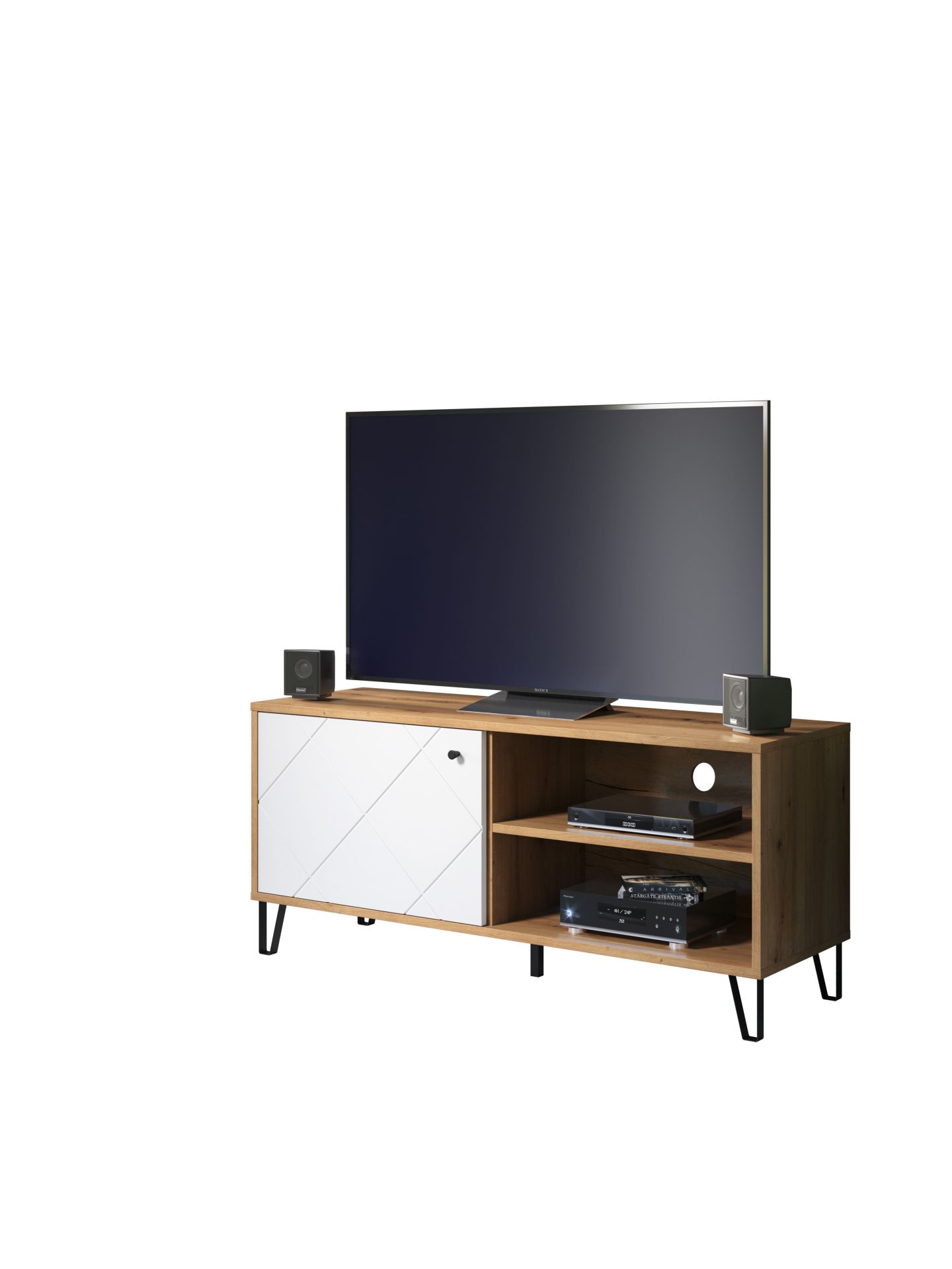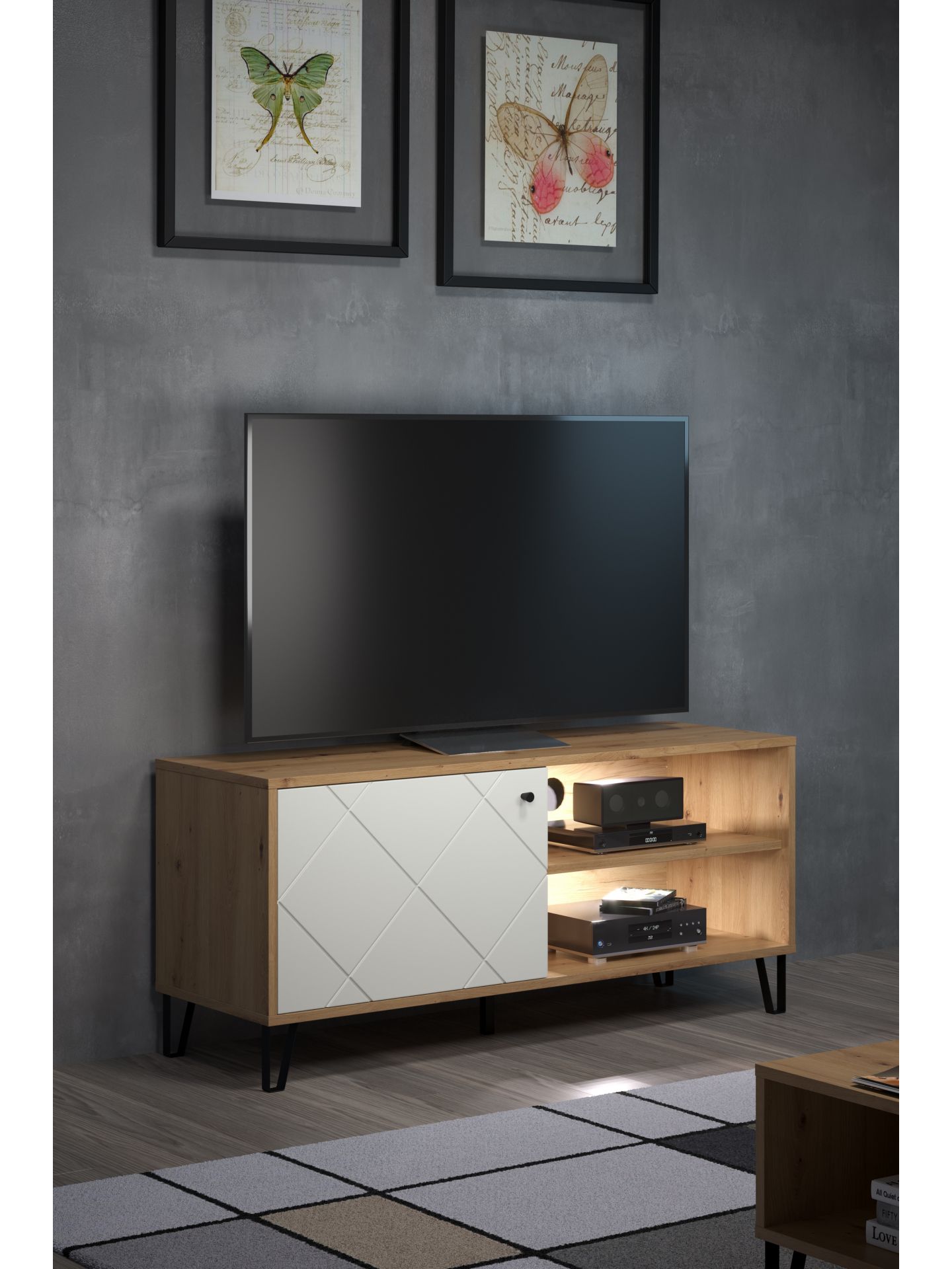 1 x: (210232007) Touch Wohnen:Ko.Artisan Eiche Melamin,Fr.Weiß Matt Tiefzieh,TV-Unterteil