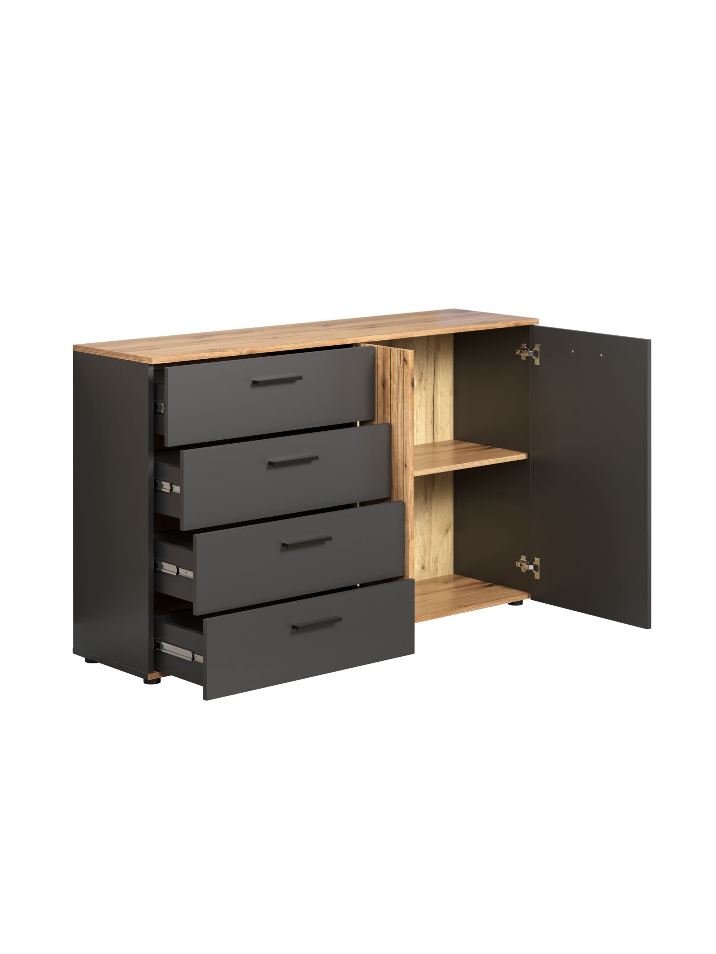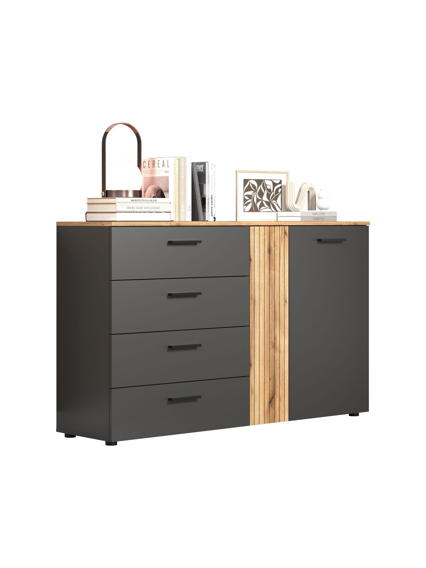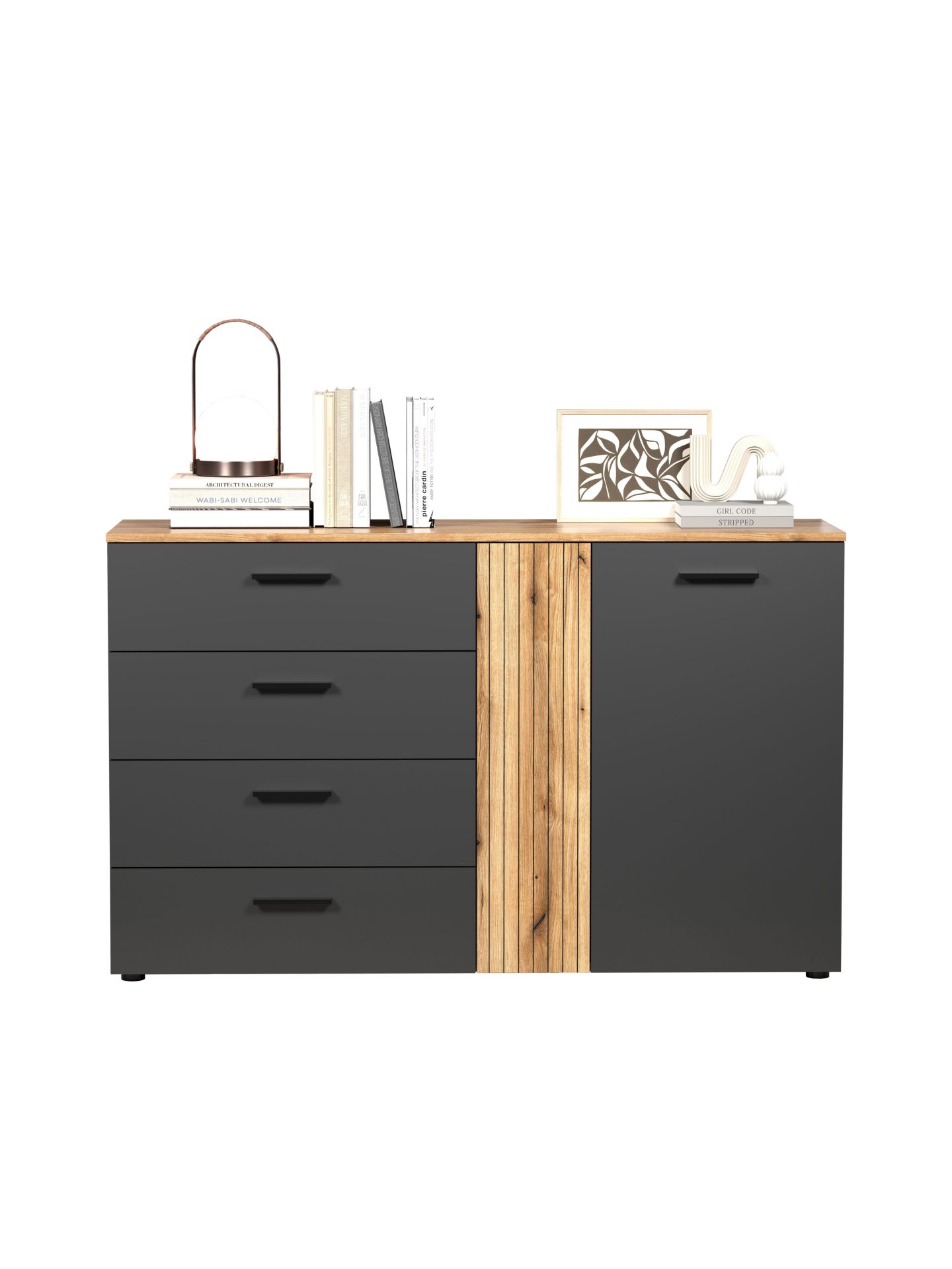 trendteam EstebanKO Kommode Anthrazit Melamin Coast Evoke Oak Melamin B/H/T: 139 / 86 / 38 cm