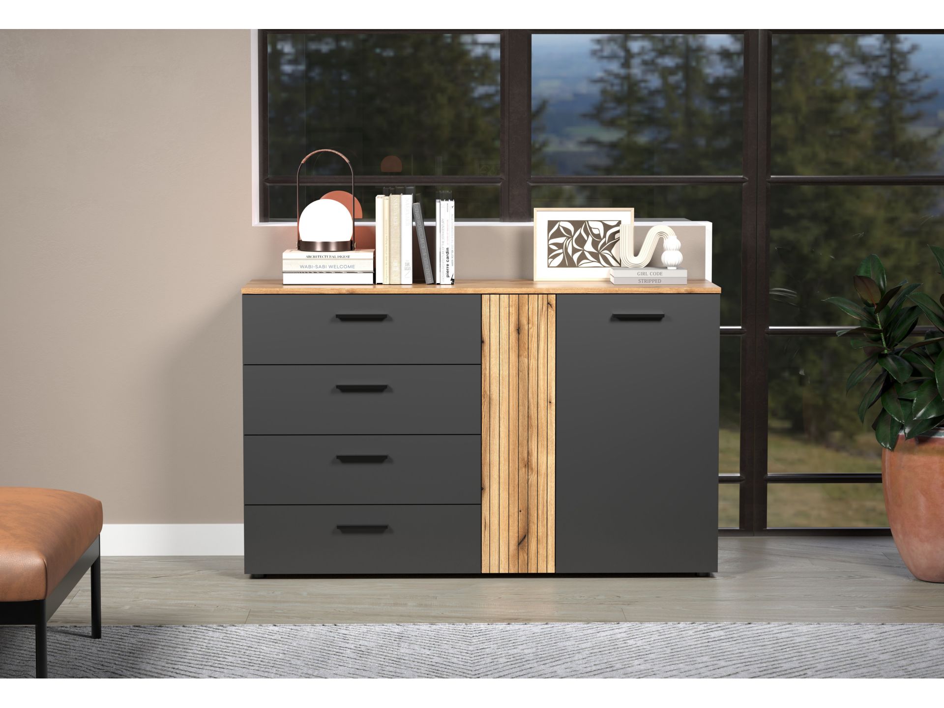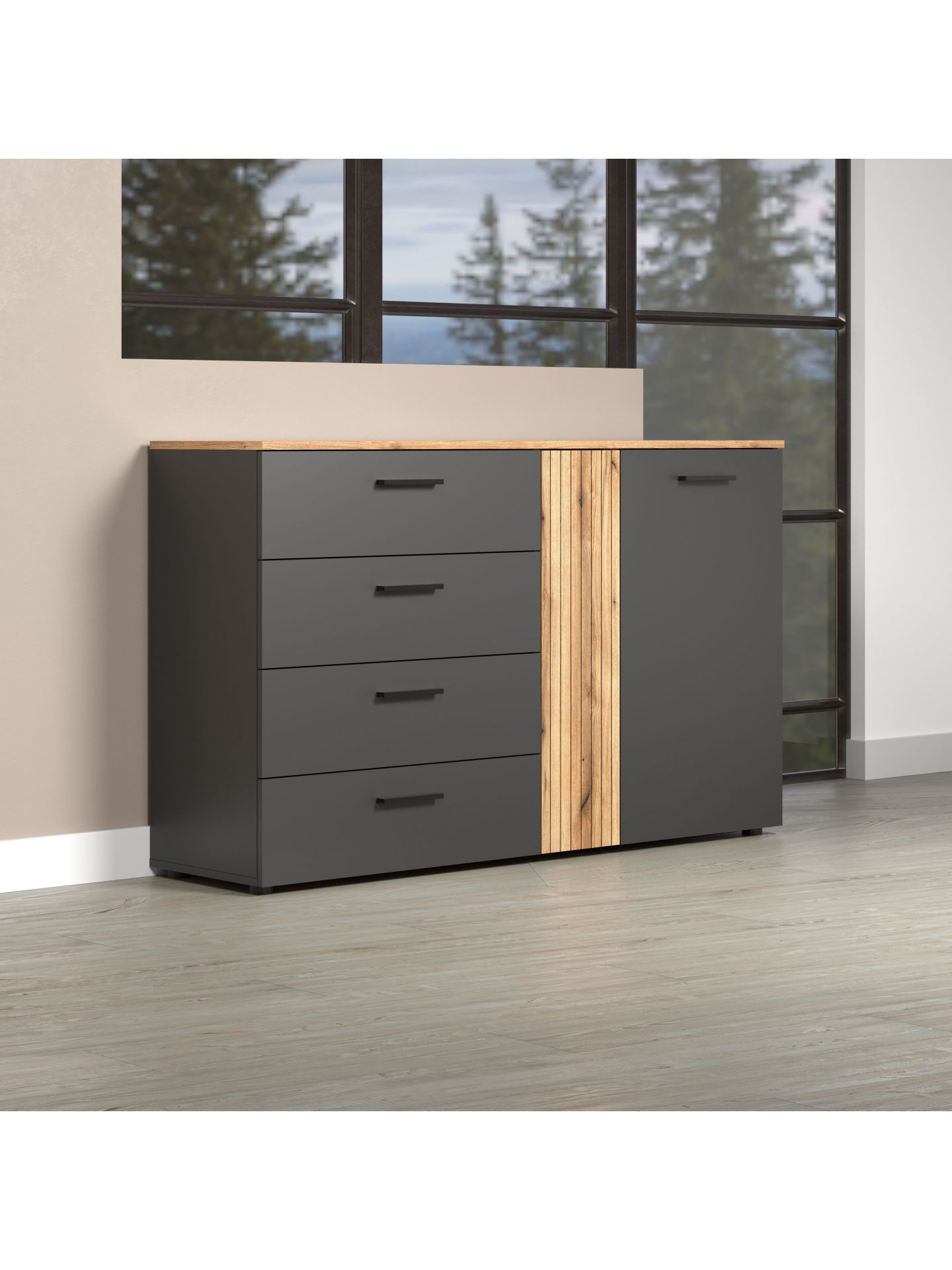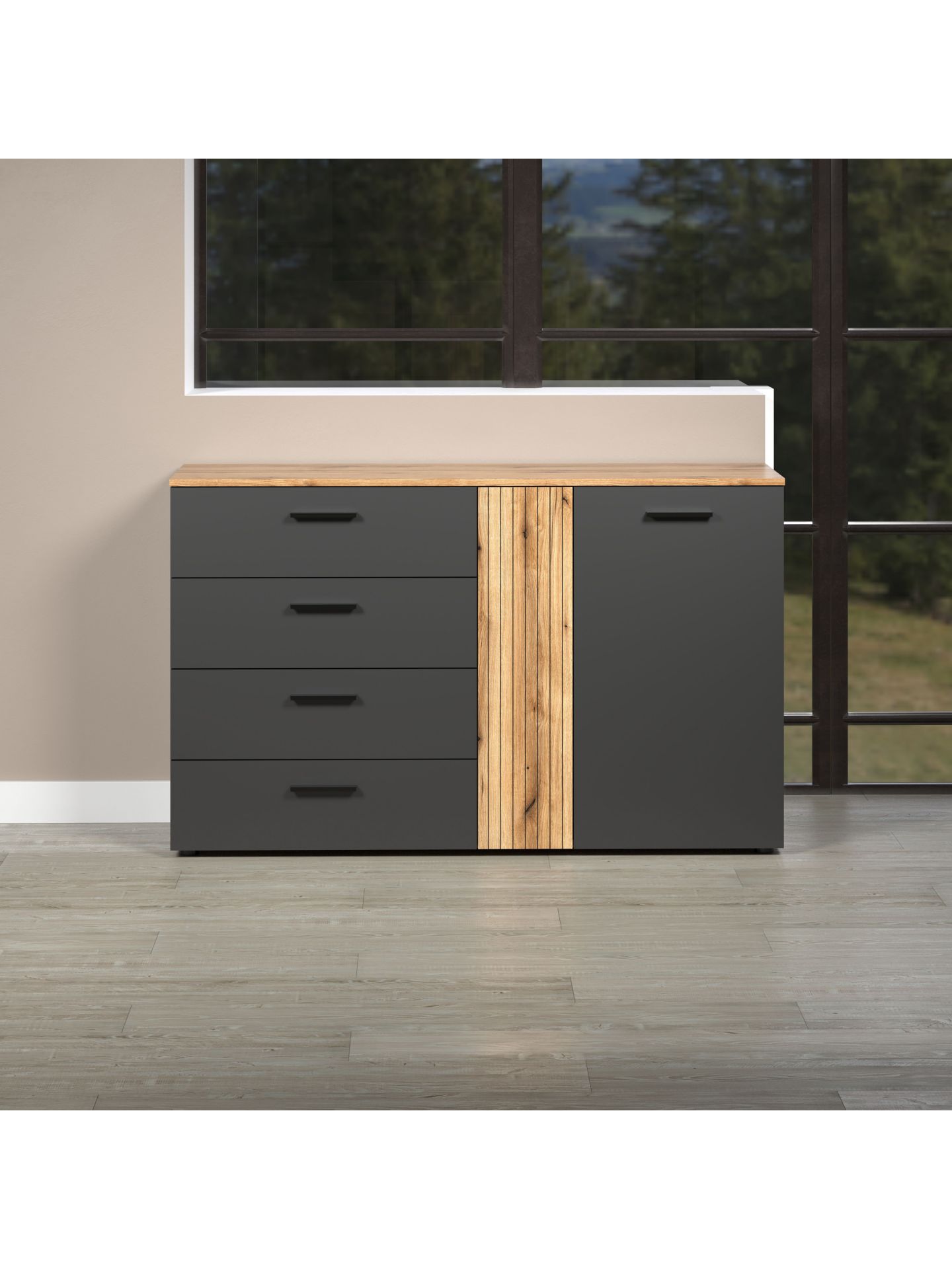 trendteam EstebanKO Kommode Anthrazit Melamin Coast Evoke Oak Melamin B/H/T: 139 / 86 / 38 cm