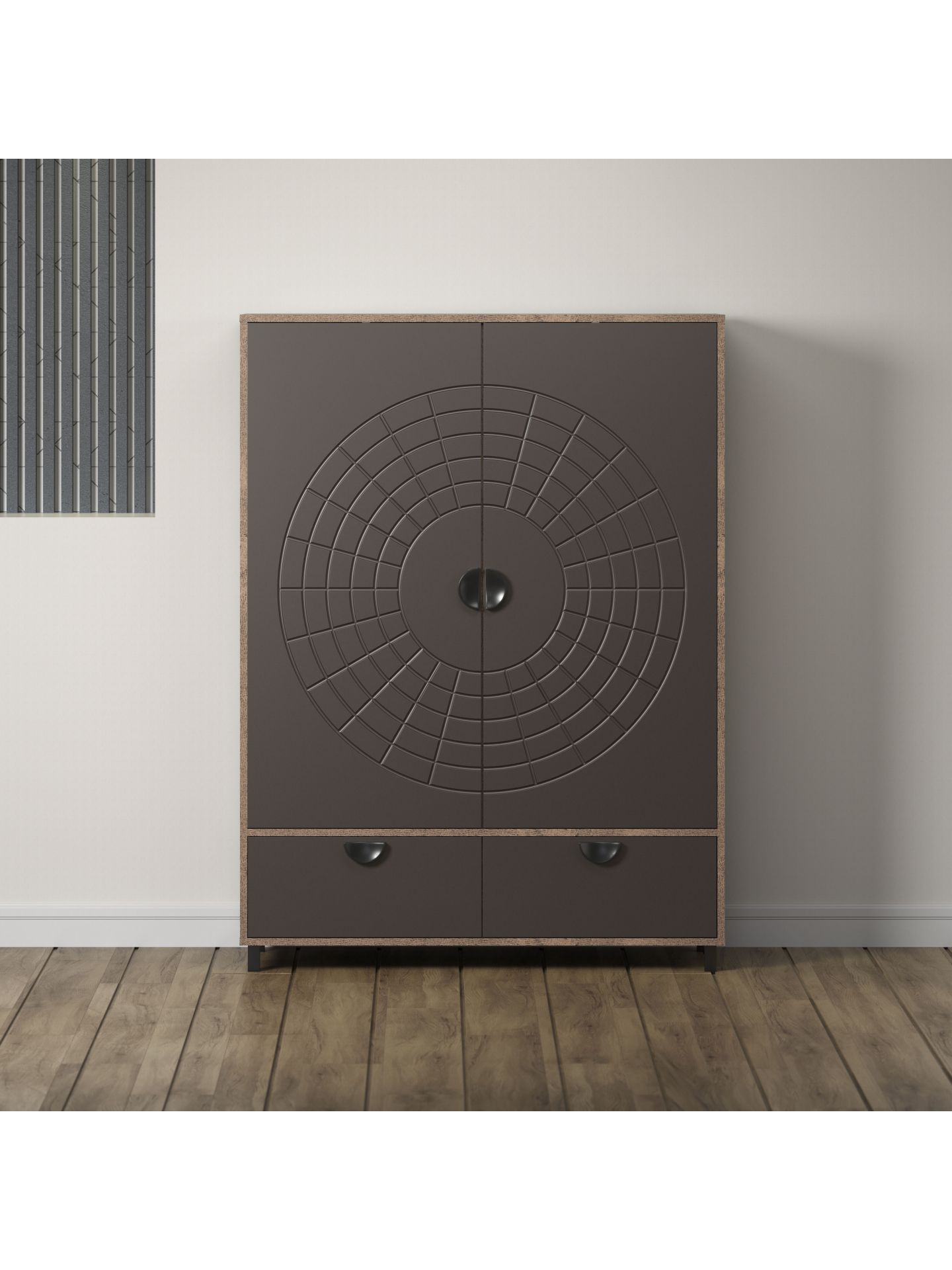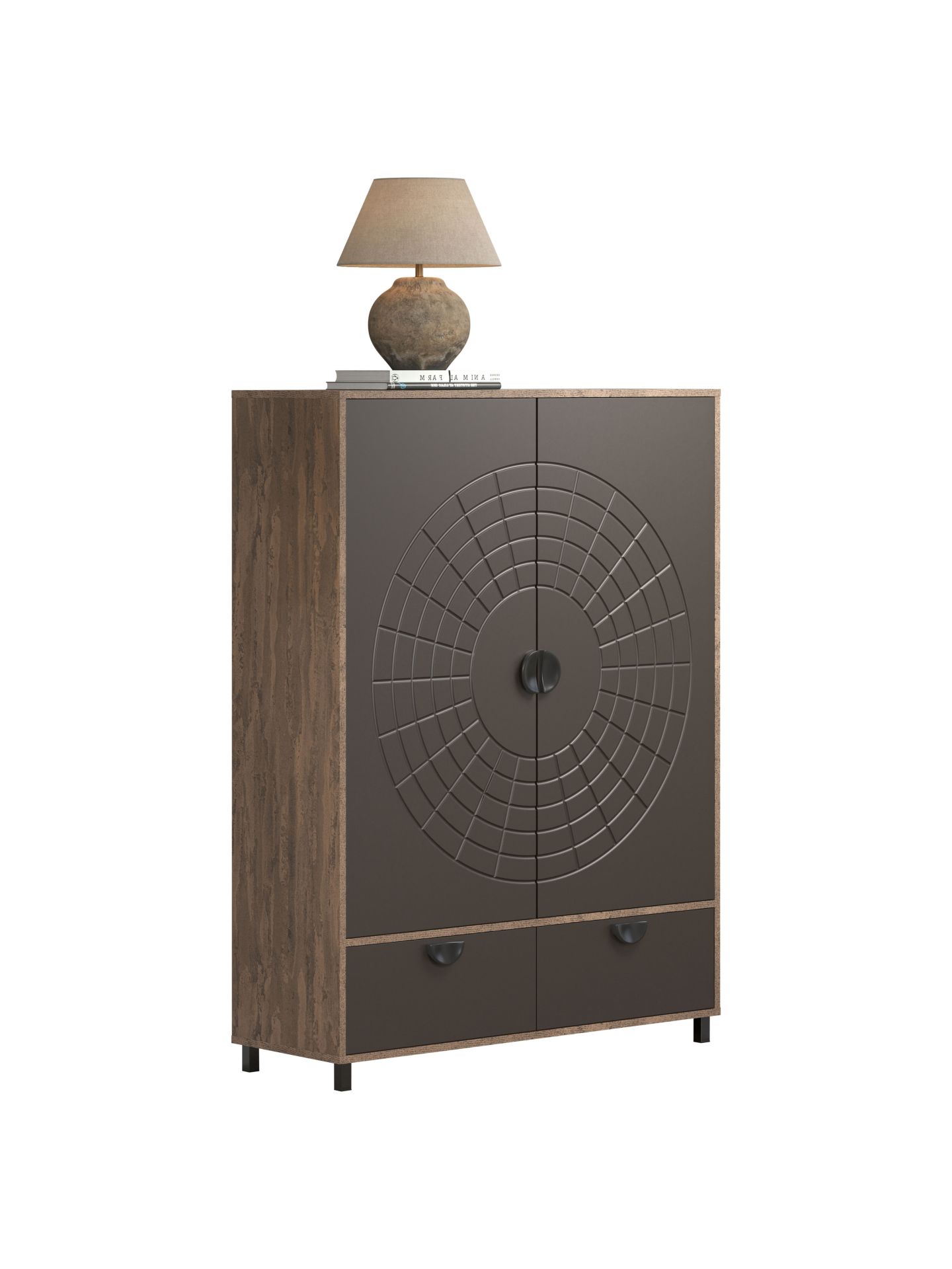 Die Wohnmöbelserie Fusion verbindet klare Formen mit einem markanten Design-Statement und wird so zum Blickfang in jedem modernen Wohnzimmer. Charakteristisches Highlight sind das hochwertig grafisch gefräste Kreismuster, das sich in allen Einzeltypen wiederfindet. In Kombination mit der warmen Holzoptik im Perlbronze Dekor und den ruhigen, dunklen Fronten in Rostoptik entsteht ein harmonischer Look: Von modern-minimalistisch bis urban gemütlich, die Serie Fusion ist ein optischer Hingucker in jedem Wohnzimmer.