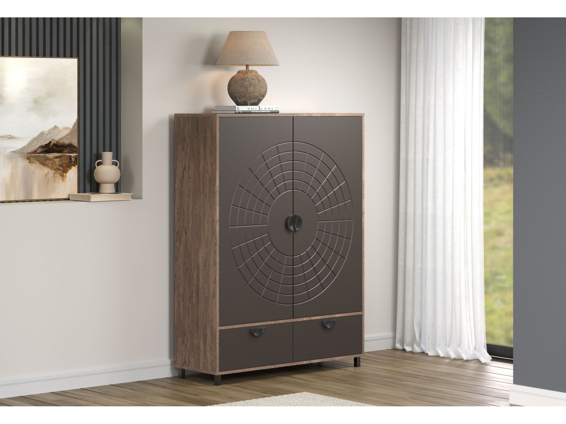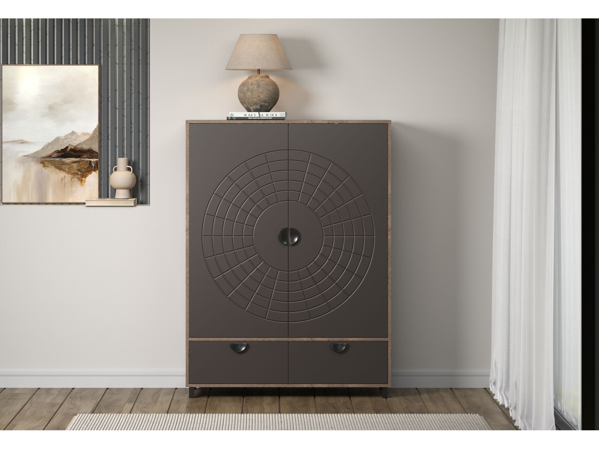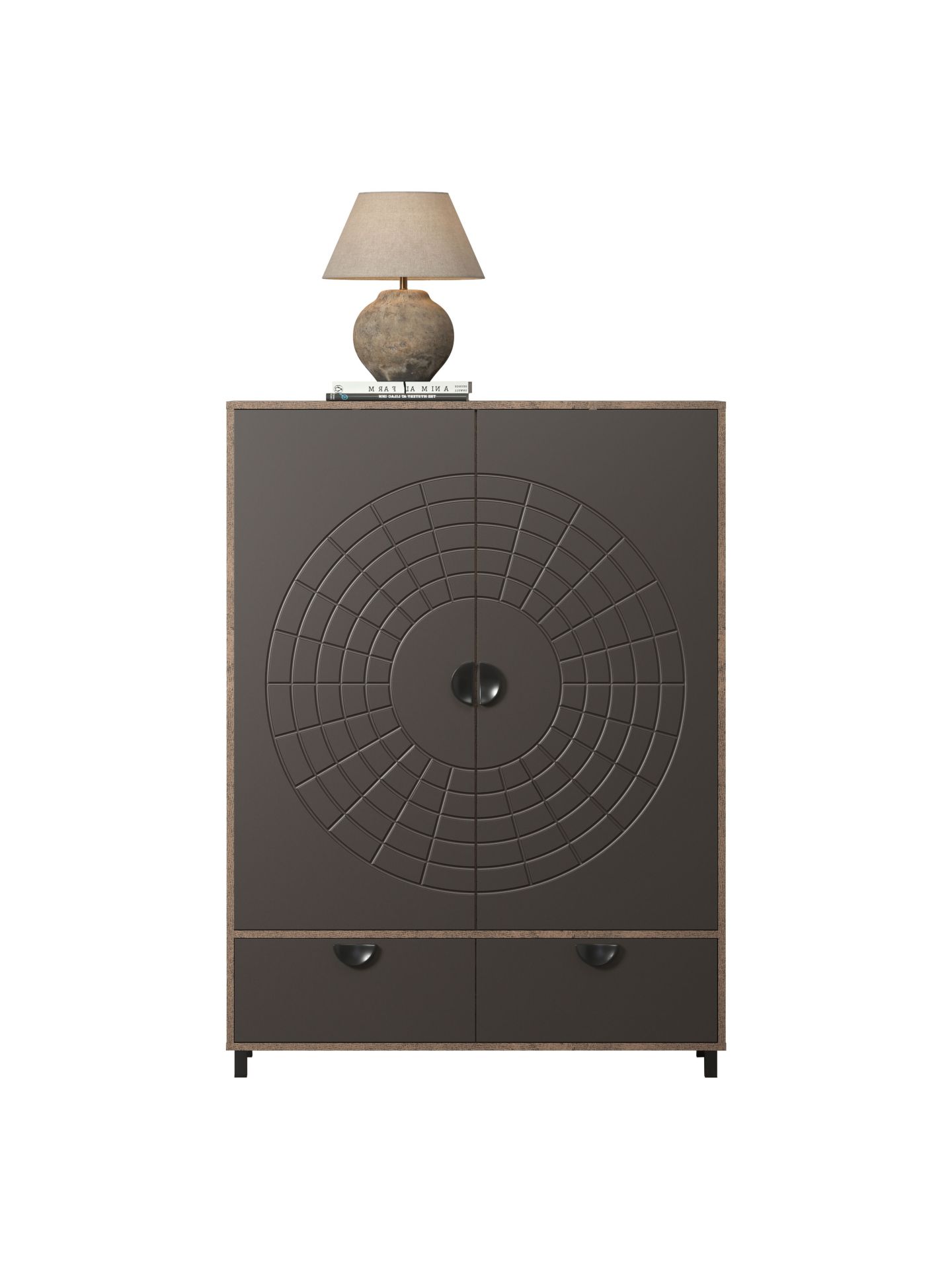 Mit Fusion entscheiden Sie sich für eine Wohnmöbelserie, die Design und Alltagstauglichkeit optimal verbindet. Das besondere Kreismuster auf den Fronten sorgt für einen hohen Wiedererkennungswert und macht jedes Element der Serie zu einem stilbewussten Statement. Ideal für alle, die ihr Wohnzimmer mit einem modernen Wohnprogramm gestalten möchten und Wert auf ein einheitliches, zeitloses Gesamtbild legen.