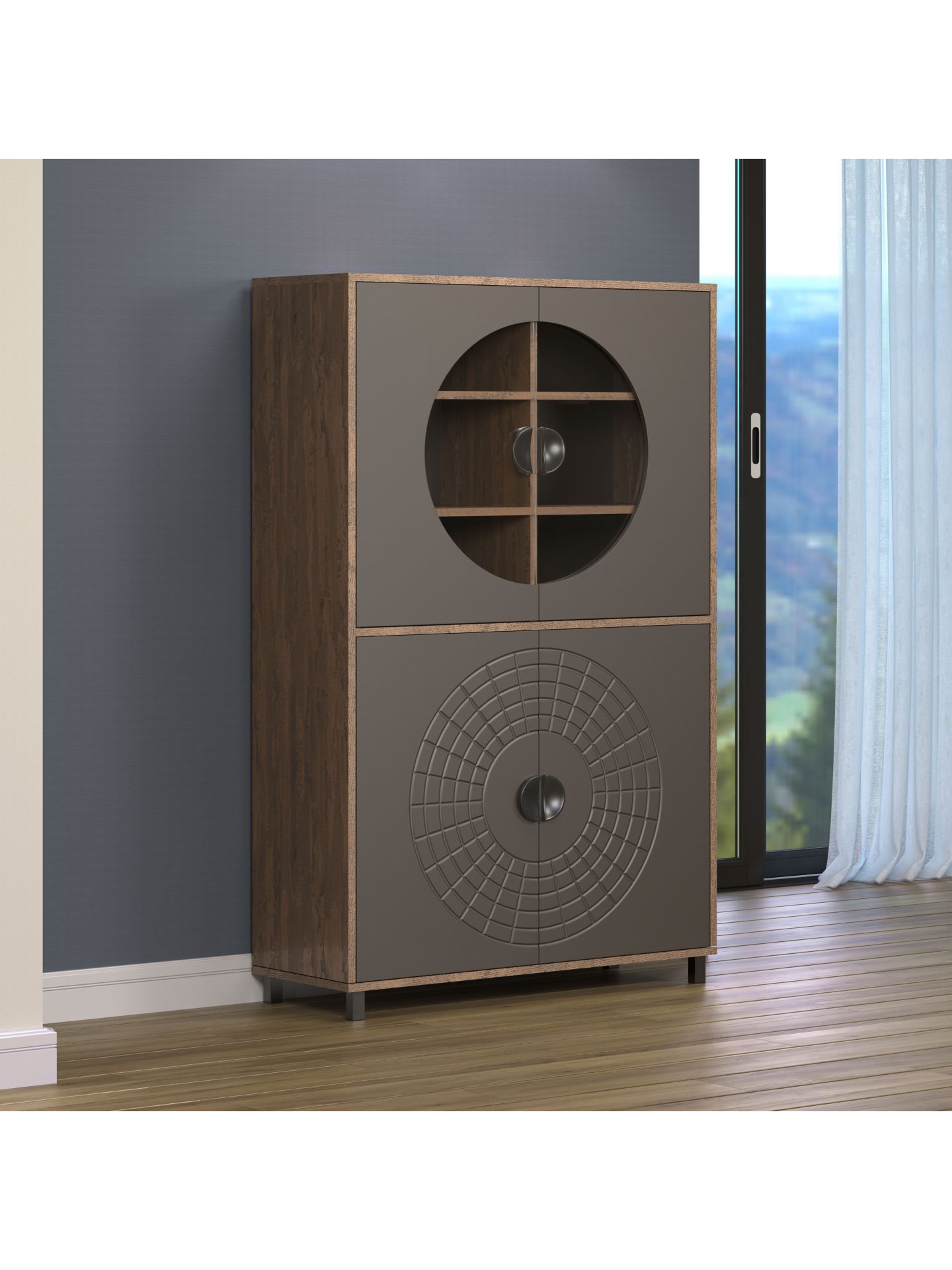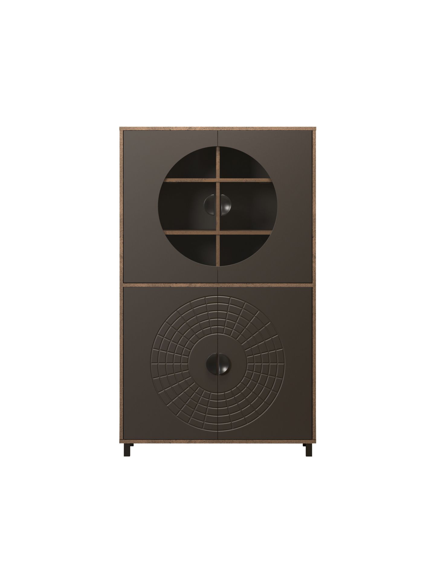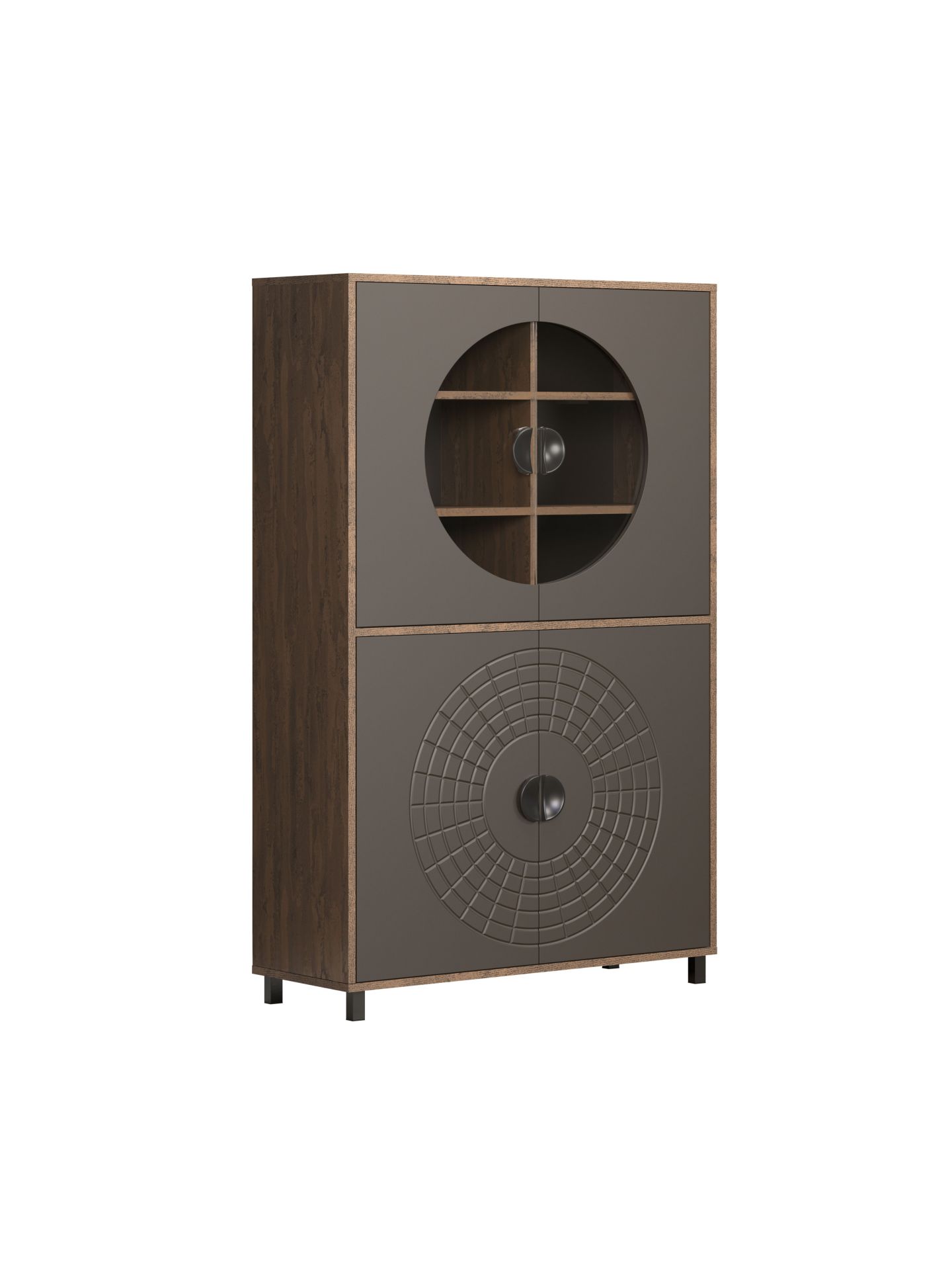 Mit Fusion entscheiden Sie sich für eine Wohnmöbelserie, die Design und Alltagstauglichkeit optimal verbindet. Das besondere Kreismuster auf den Fronten sorgt für einen hohen Wiedererkennungswert und macht jedes Element der Serie zu einem stilbewussten Statement. Ideal für alle, die ihr Wohnzimmer mit einem modernen Wohnprogramm gestalten möchten und Wert auf ein einheitliches, zeitloses Gesamtbild legen.