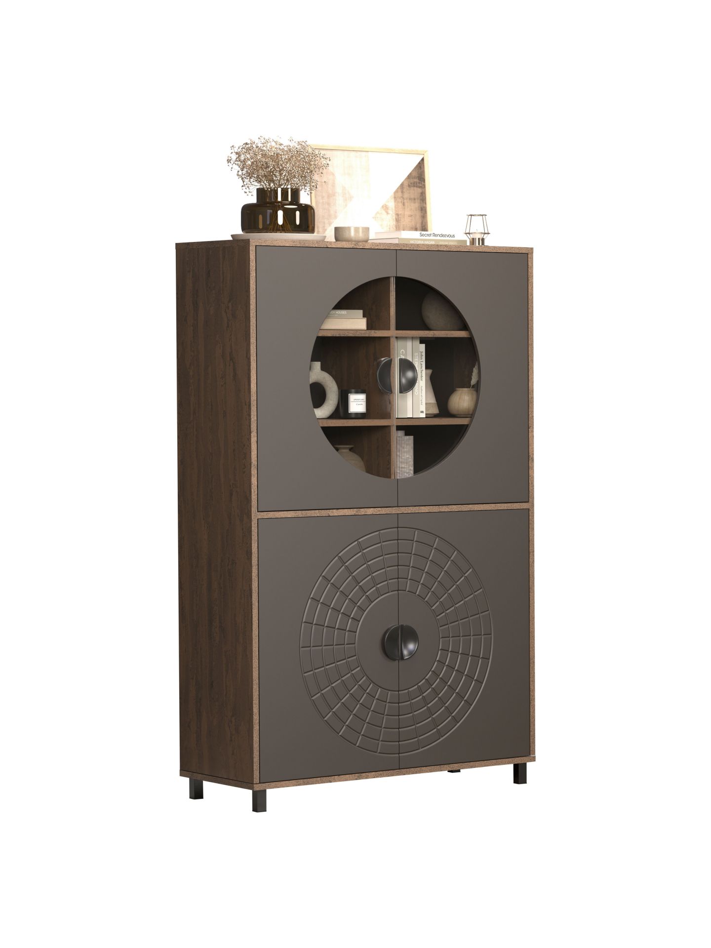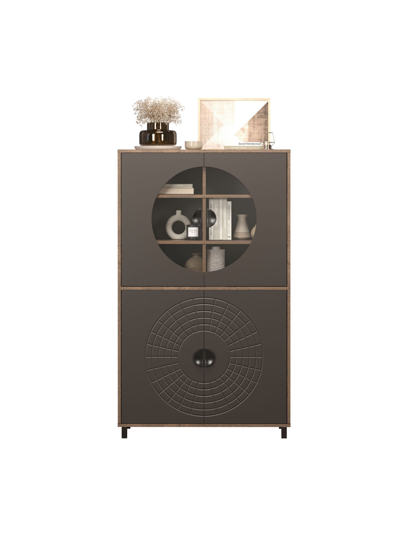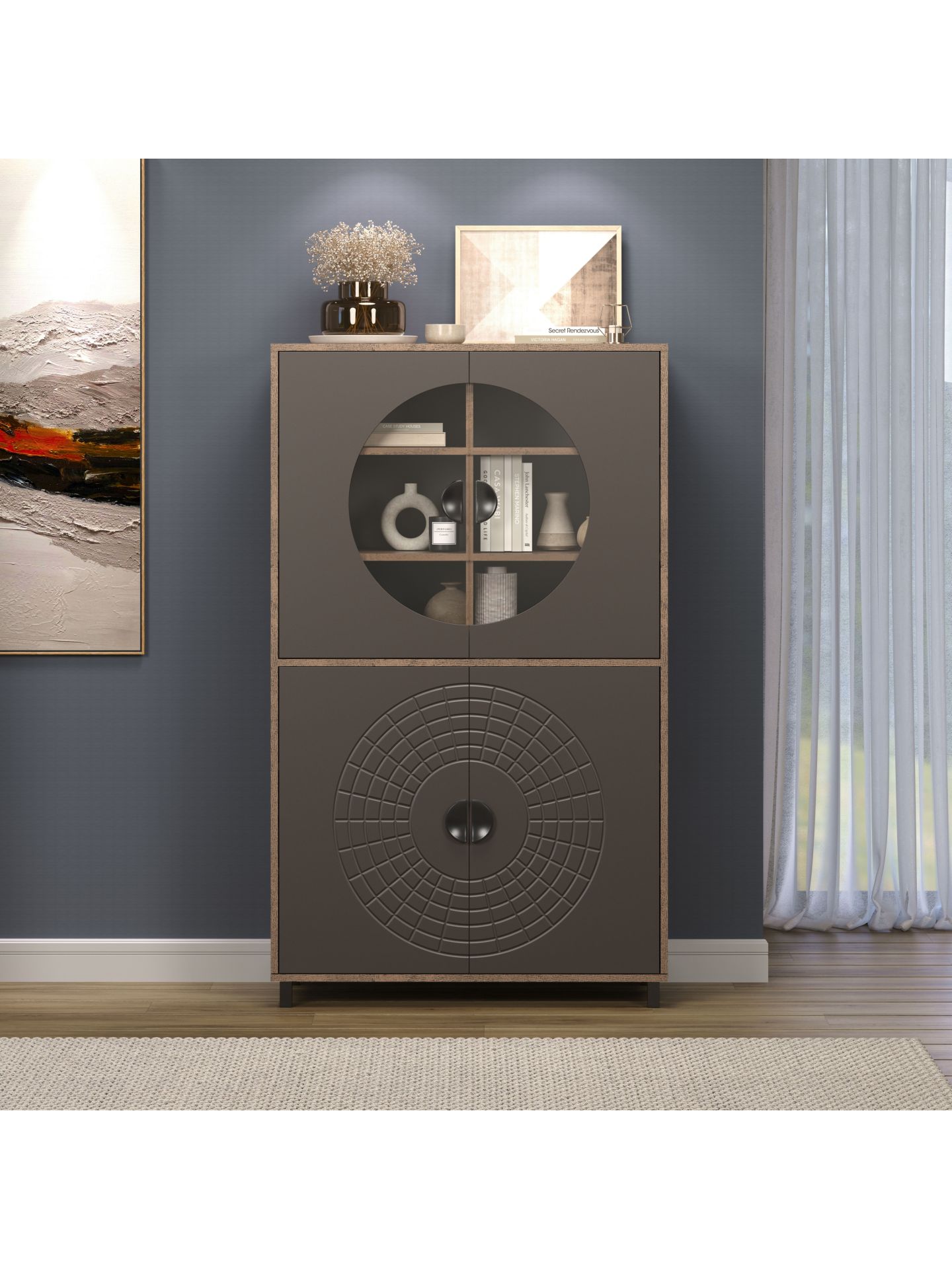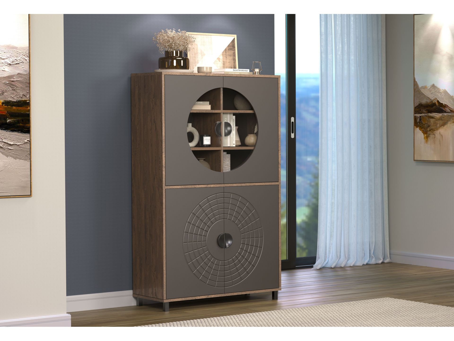 Mit Fusion entscheiden Sie sich für eine Wohnmöbelserie, die Design und Alltagstauglichkeit optimal verbindet. Das besondere Kreismuster auf den Fronten sorgt für einen hohen Wiedererkennungswert und macht jedes Element der Serie zu einem stilbewussten Statement. Ideal für alle, die ihr Wohnzimmer mit einem modernen Wohnprogramm gestalten möchten und Wert auf ein einheitliches, zeitloses Gesamtbild legen.