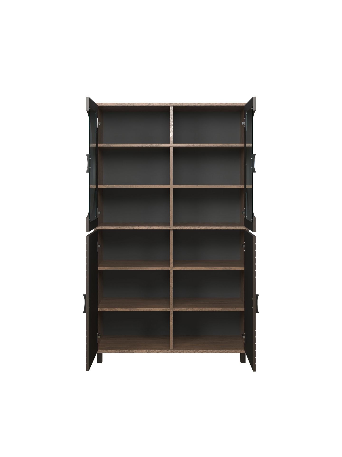Ob TV-Lowboard, Sideboard, Highboard, Vitrine oder Couchtisch: Jedes Möbelstück der Serie Fusion überzeugt mit durchdachtem Stauraum, funktionalen Details und pflegeleichten Oberflächen. Offene Fächer setzen Dekoration, Bücher oder Technik gezielt in Szene, während geschlossene Bereiche für Ordnung sorgen. So bleibt das Wohnzimmer aufgeräumt, ohne an Wohnlichkeit zu verlieren. Soft-Close Türen für sanftes Schließen, schwarze Metallfüße und außergewöhnliche Türgriffe runden das Gesamtbild ab.