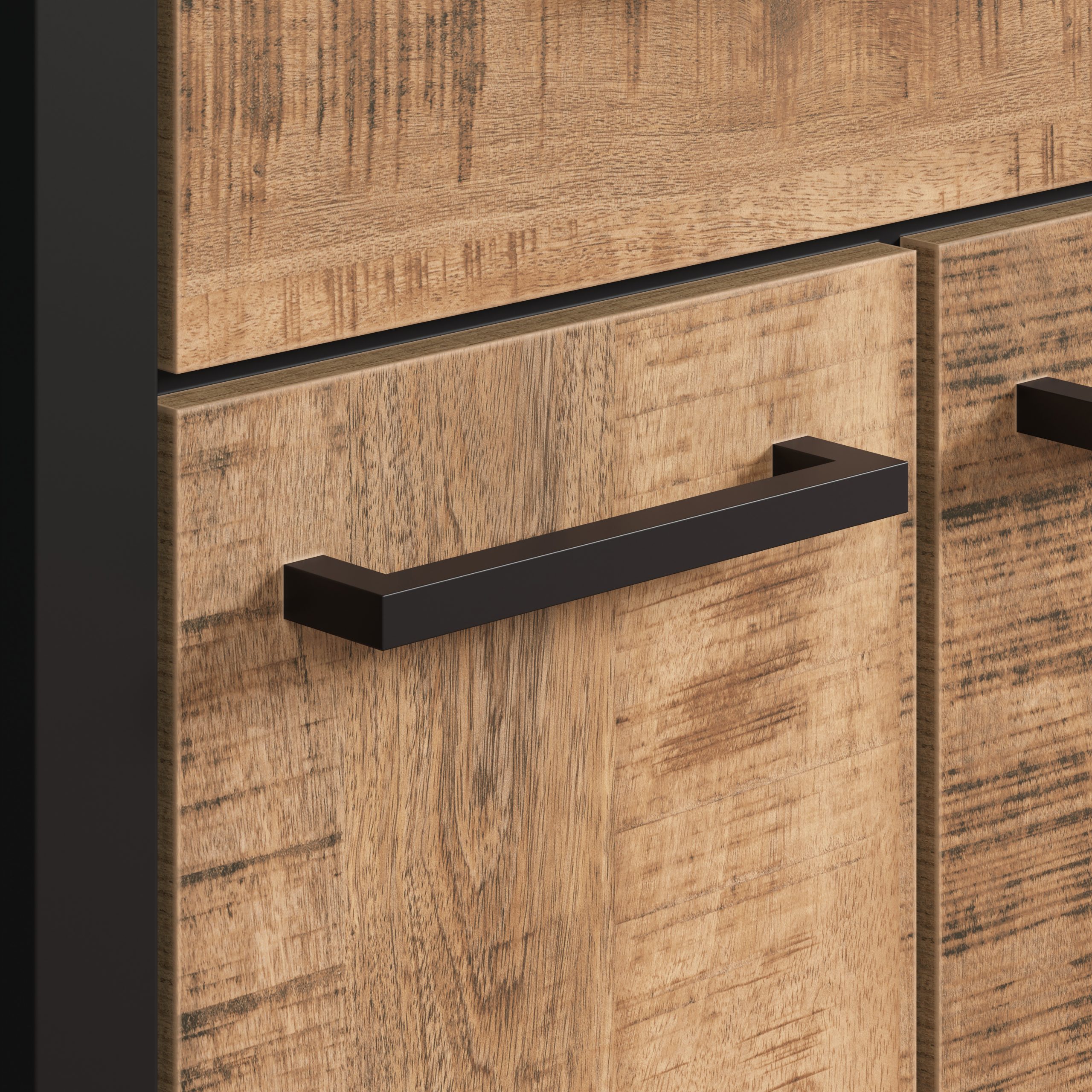 Attraktives Dekor in Mango Holzoptik in Kombination mit Metallgriffen schafft behagliche Wohnlichkeit