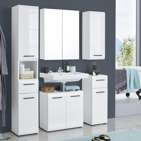 Minimalistisch und clean, sind die Möbel im modernen Wohnstil besonders für kleinere Badezimmer geeignet. Der durchdachte Stauraum für den alltäglichen Badezimmerbedarf und der funktionale Spiegelschrank lassen dennoch keine Wünsche offen. Die Möbel sind mit chromglänzenden Griffen versehen und können zum Teil mit diverser Beleuchtung ausgestattet werden, die die Gesamtoptik der Möbel abrundet und ideale Lichtverhältnisse schafft.